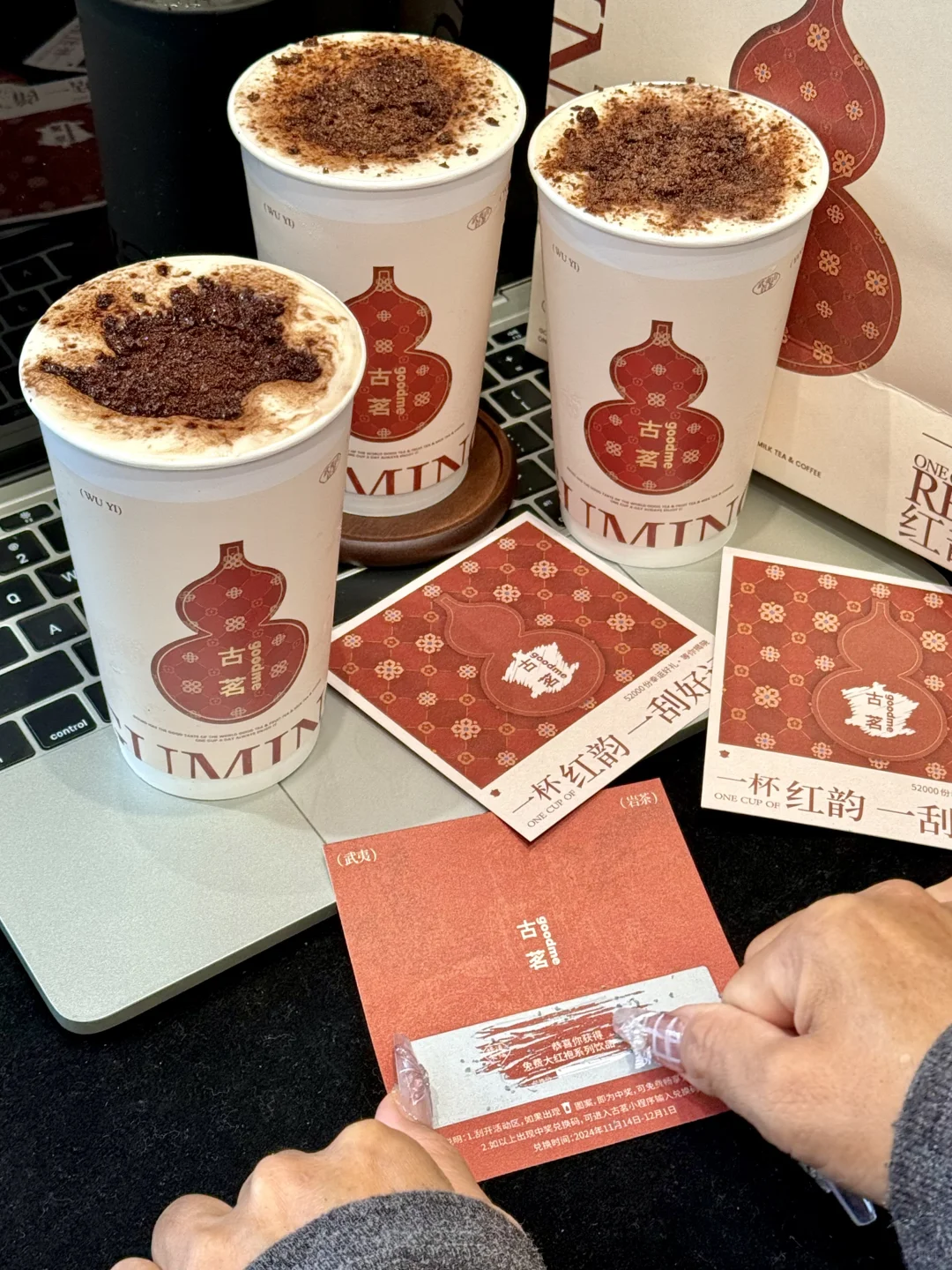 古茗太会整活了...新品咸奶茶还能刮杯红韵!