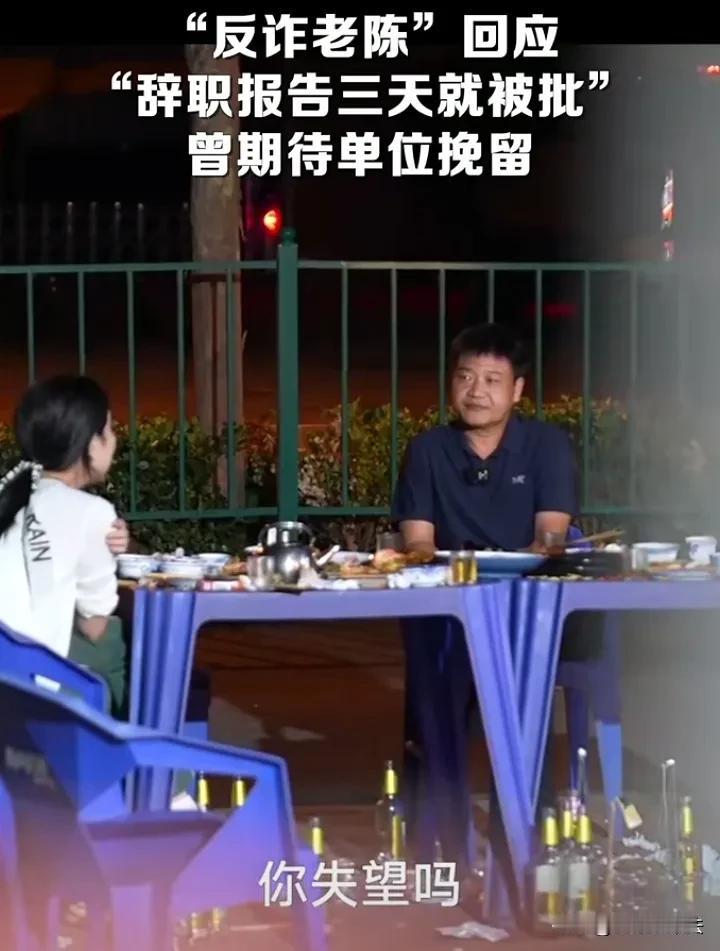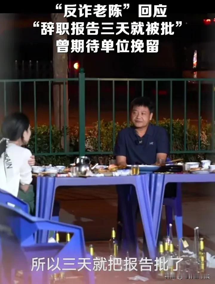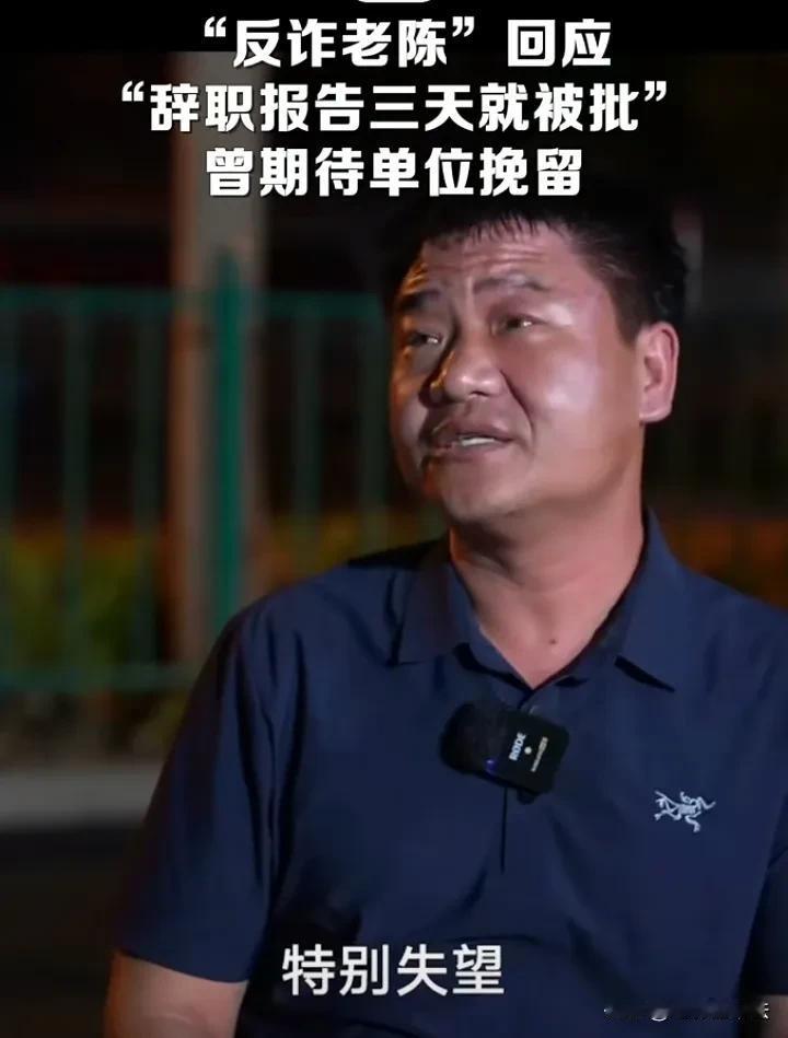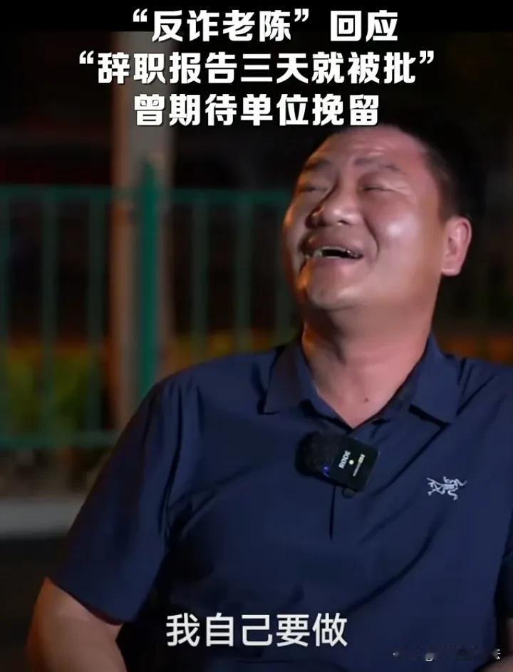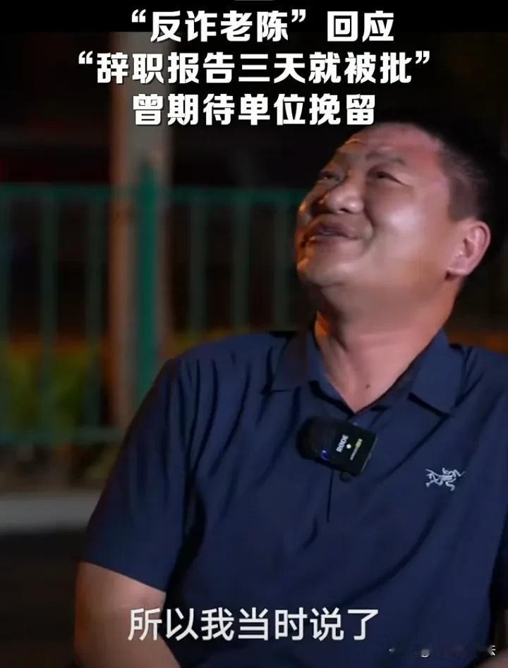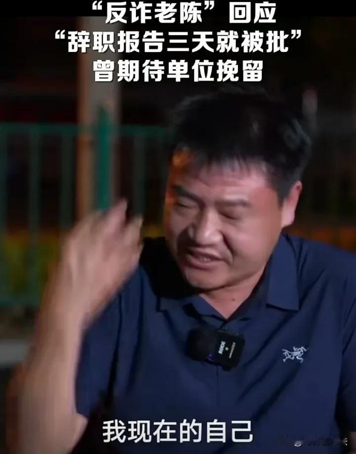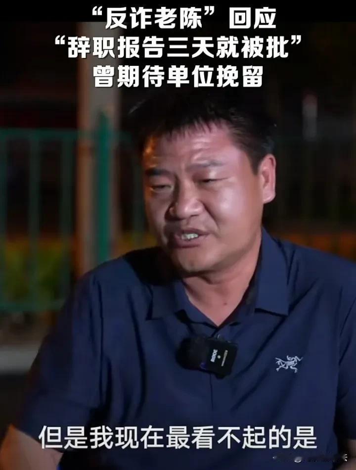 反诈老陈最让人反感的地方,不是他对金钱的渴望,也不是辞职后花样百出的各种奇葩炒作,而是他既要又要的心态。 11月15日,反诈老陈又一次冲上热搜,原因是他接受采访时对外界透露,他对当初自己提交辞职报告单位3天就批准了非常失望,他说其实自己当初并不想辞职,他内心渴望的是单位的挽留。他说没想到单位很快就批准了自己的辞职报告,所以自己才决定自己做。 言下之意就是,交了辞职报告但不想辞职,自己只是希望用辞职报告引起单位对自己的重视,但没想到单位不识趣没体会自己的意图,居然直接批准了。 老陈还透露,现在自己最看不起的就是自己,现在自己还经常做梦,梦里自己是个协警,一心希望转正。 有网友认为他是因为辞职后悔了,但也有网友认为,“老陈这种人,一点都不后悔主播,他之所以这么说,是因为他太知道网友喜欢听什么,是因为他太知道怎么炒作了。” 交了辞职报告但不想辞职,这个言论怎么有似曾相识的感觉? 你对反诈老陈这番言论怎么看?