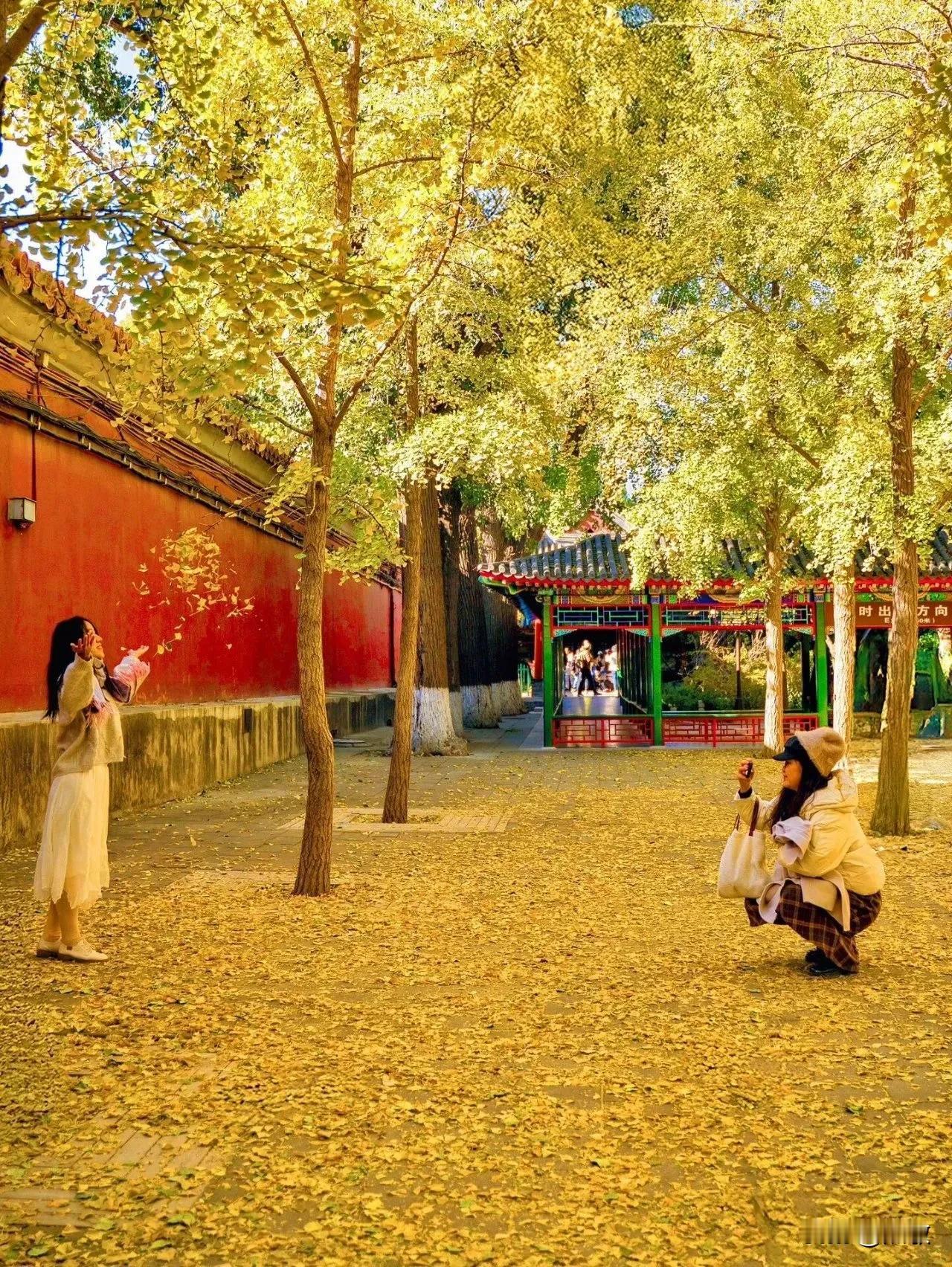 北京的初冬真是美的神奇!满世界是银杏树和枫叶片,那金黄的色彩斑斓,吸引着人们走出