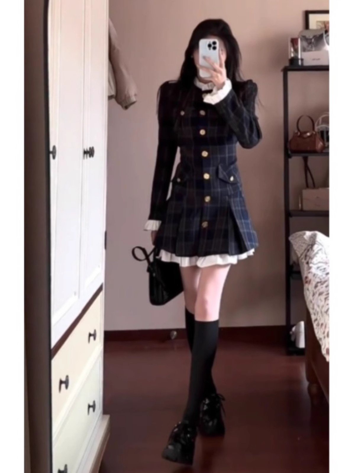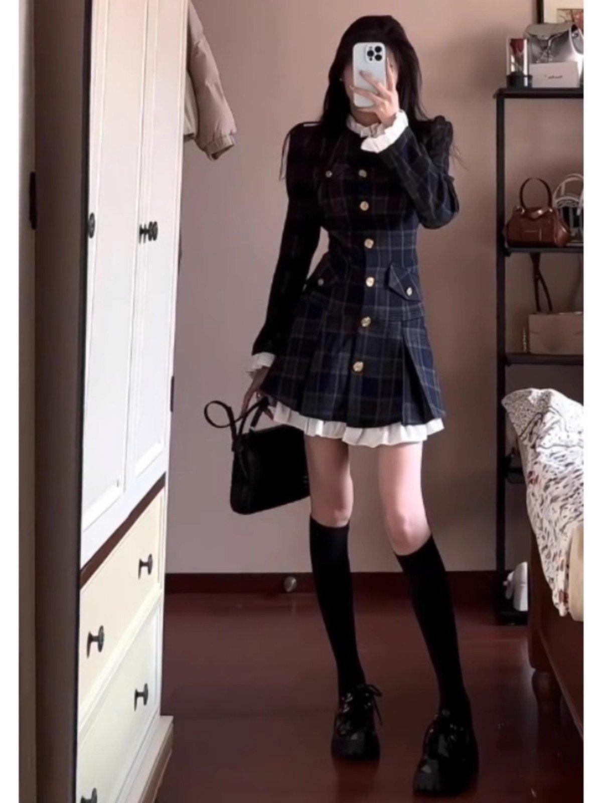 学院风格子连衣裙女秋季穿搭2024新款