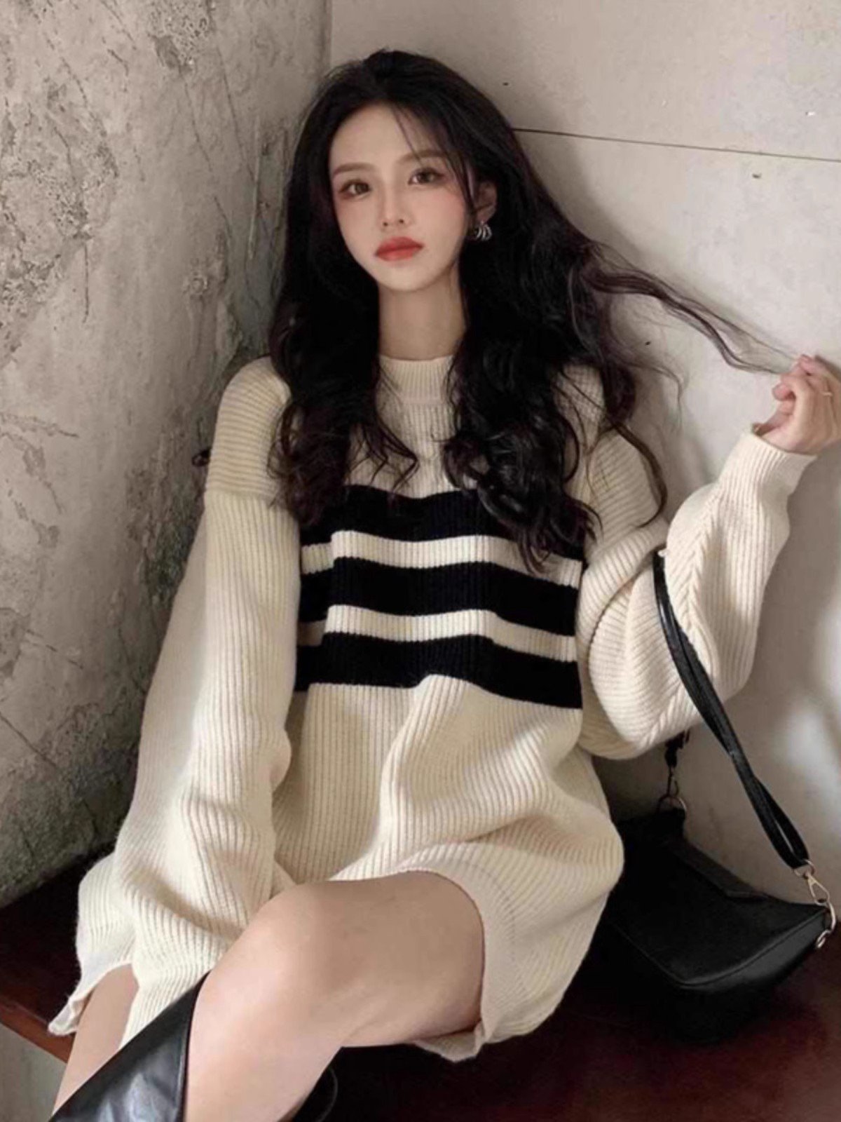 法式内搭黑色长袖针织连衣裙女早秋2024
