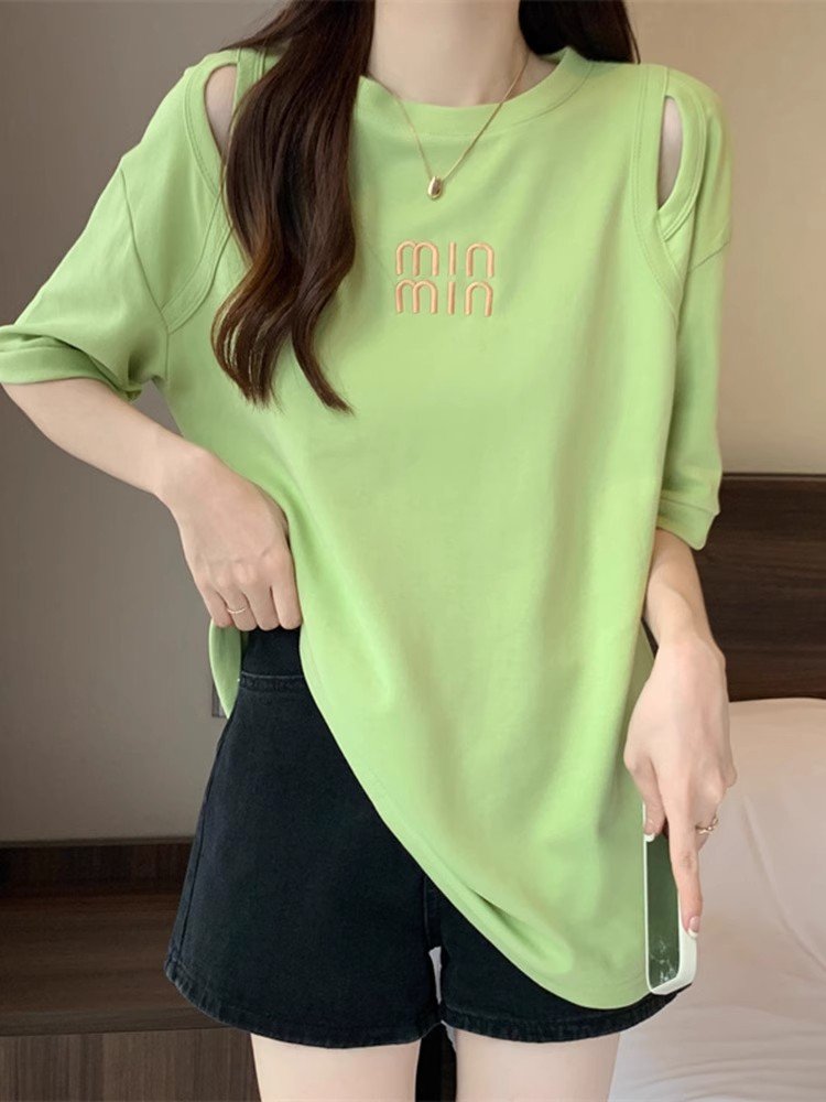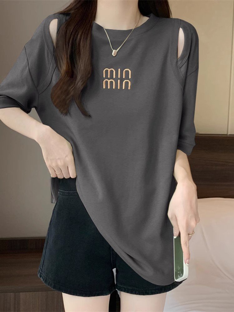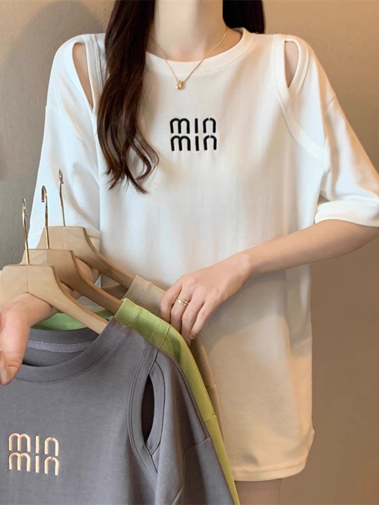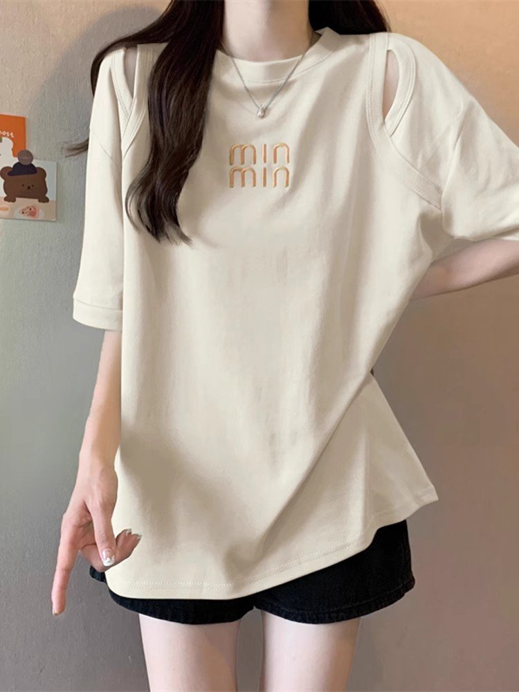 大码白色中长款短袖T恤女夏季款下衣失踪