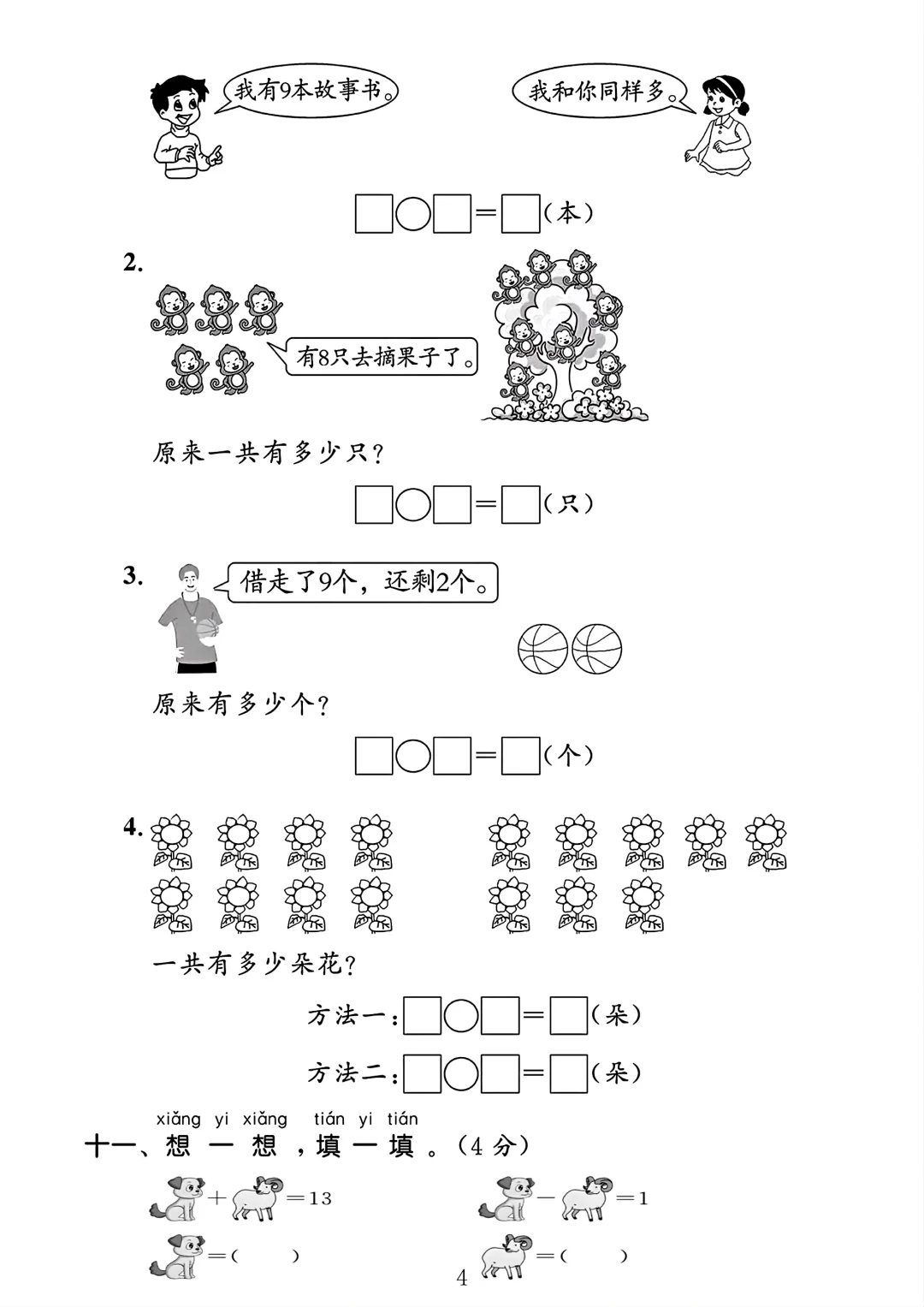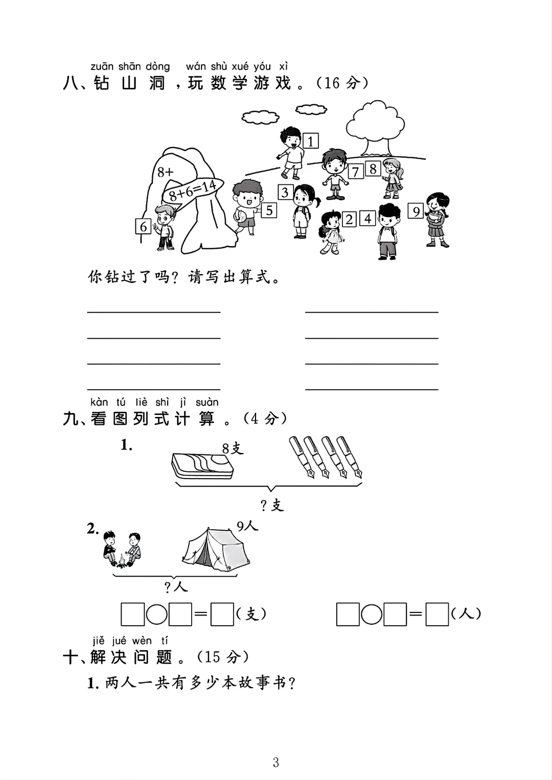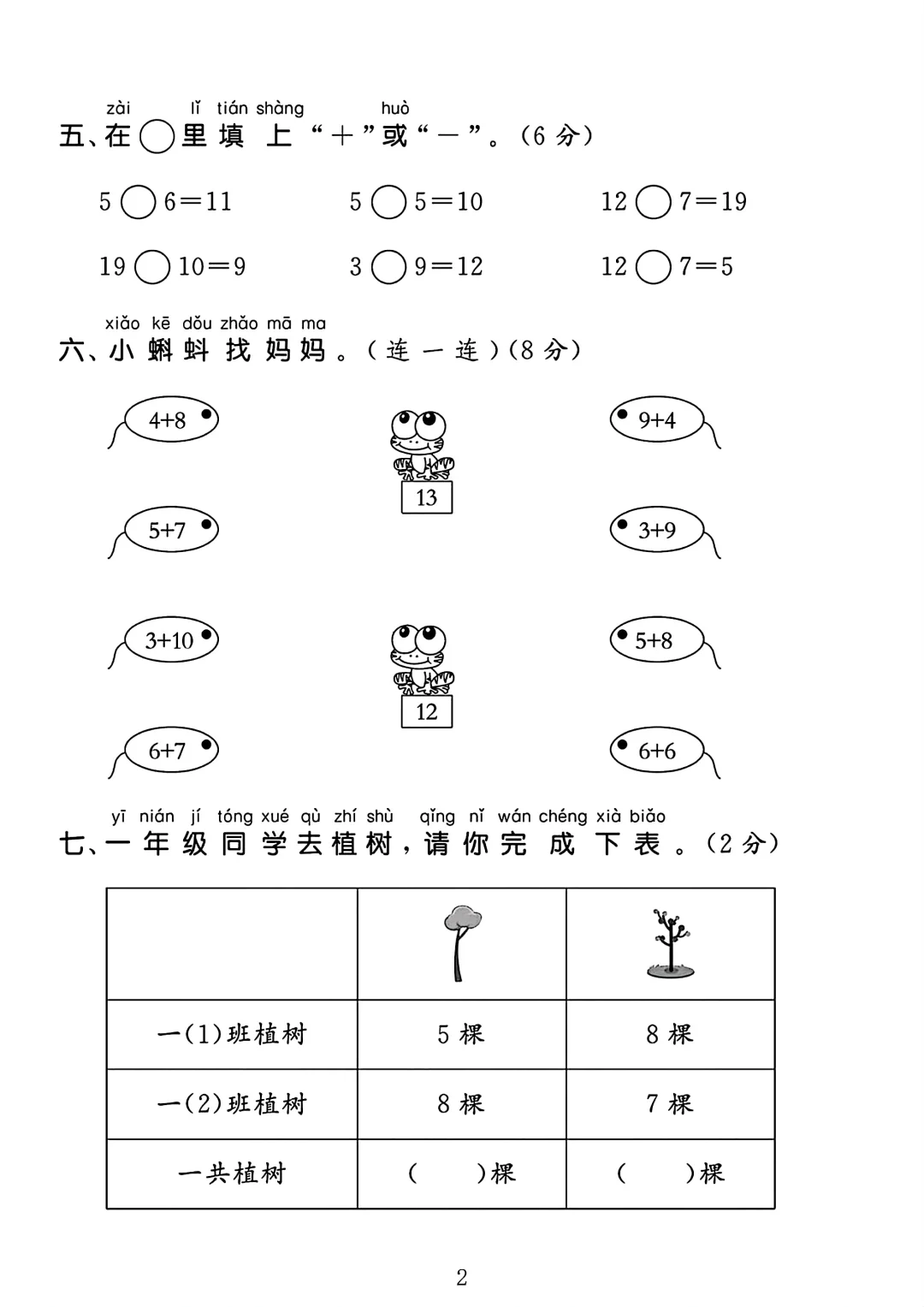 人教版 一年级上册数学 单元测试 第五单元 试卷 电子版可打印