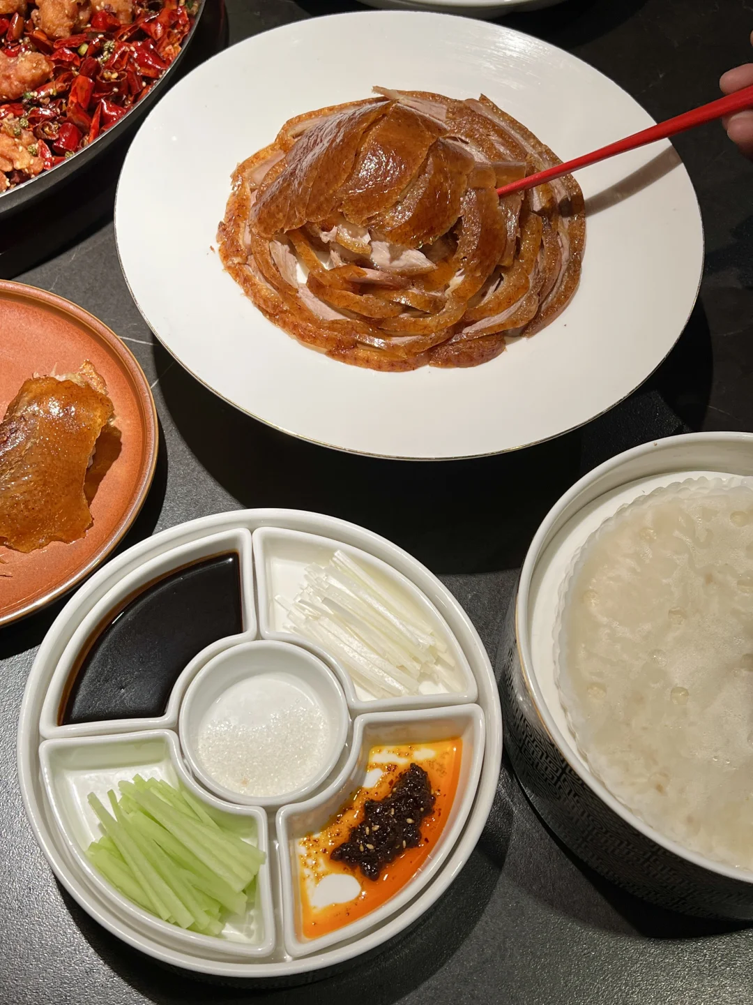 坠爱❤️吃他们家的东坡肘子!端上桌的那一刻口水都要流下来了🤤炖的软糯入味拌饭jue了啊! 现烤现片的烤鸭皮脆肉嫩 和黄瓜🥒、葱丝卷在一起搭配甜面酱嘎嘎好吃 酥牛肉麻婆豆腐、宫保鸡丁、歌乐山辣子鸡🌶️…盲点都好吃不踩雷!