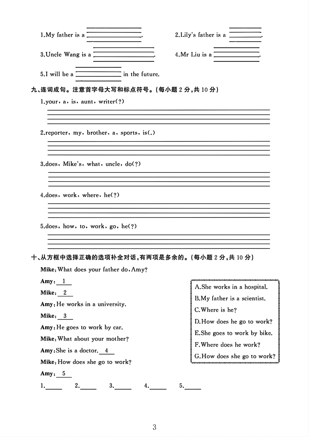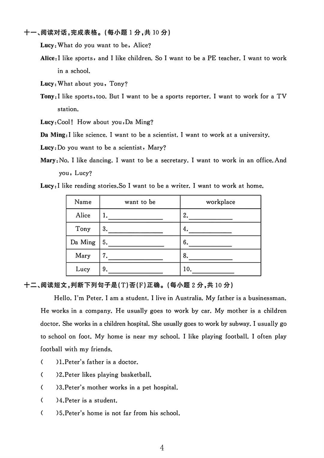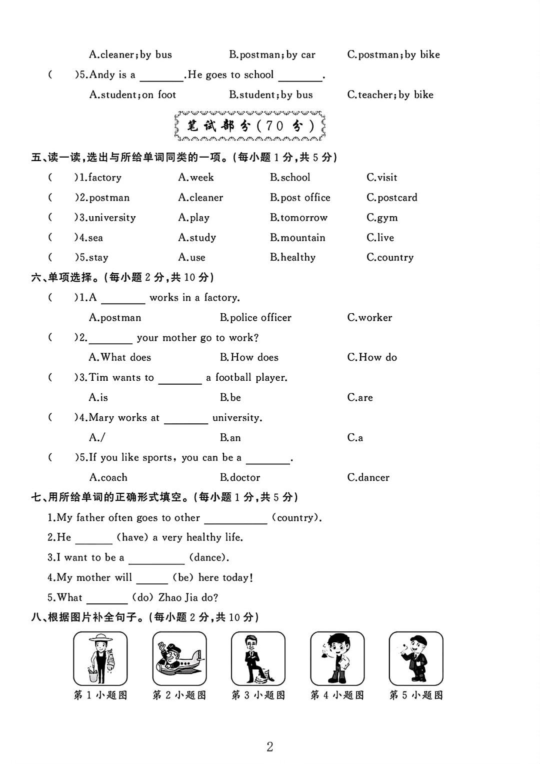 人教版 六年级上册英语 第五单元 试卷 电子版可打印 单元测试