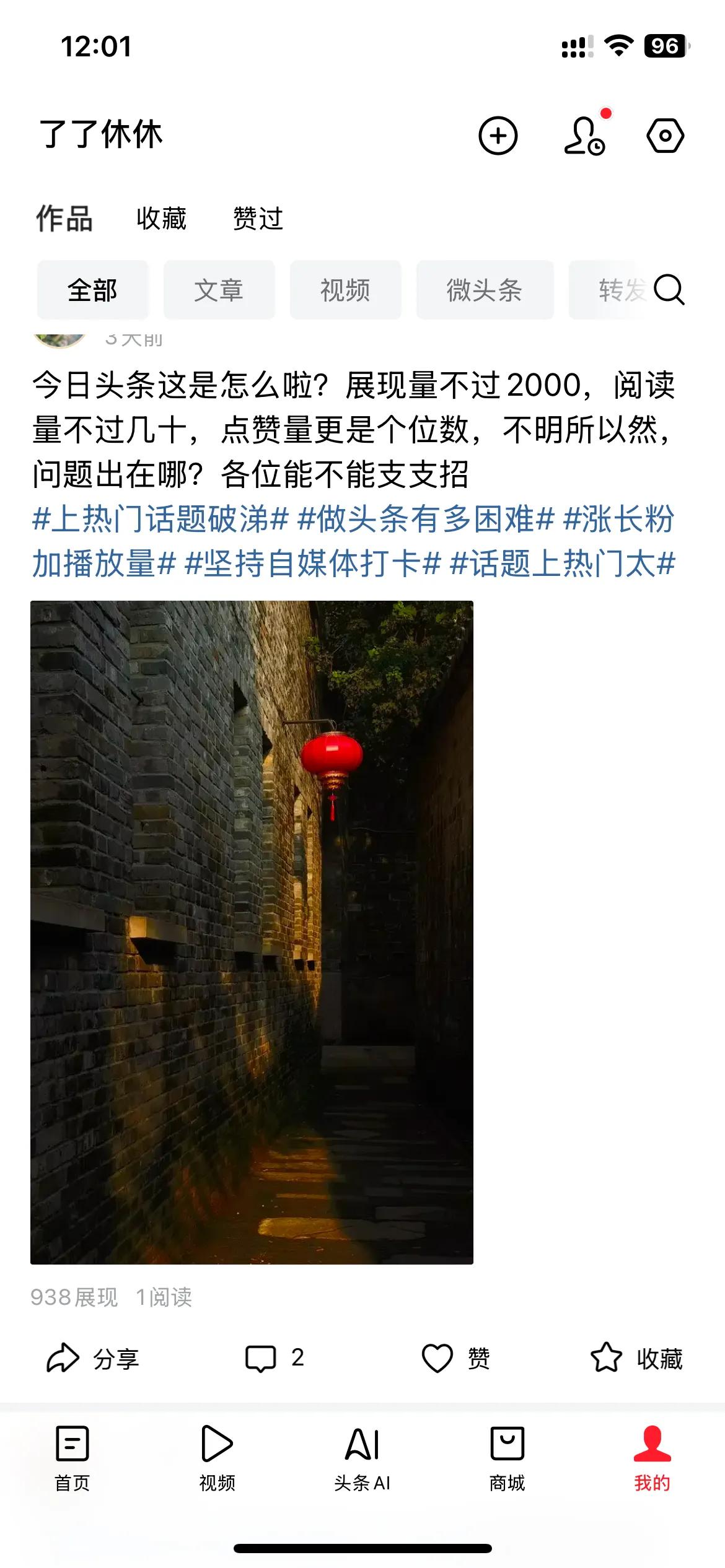 有哪位大神知道今日头条这样快速提高曝光量,增加展现量以及阅读量,点赞也是个位数,