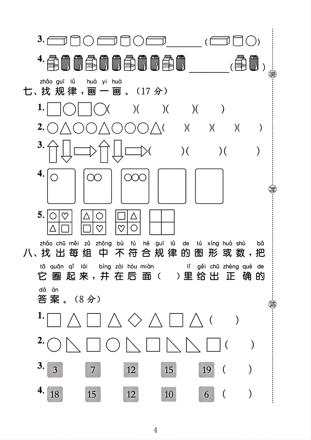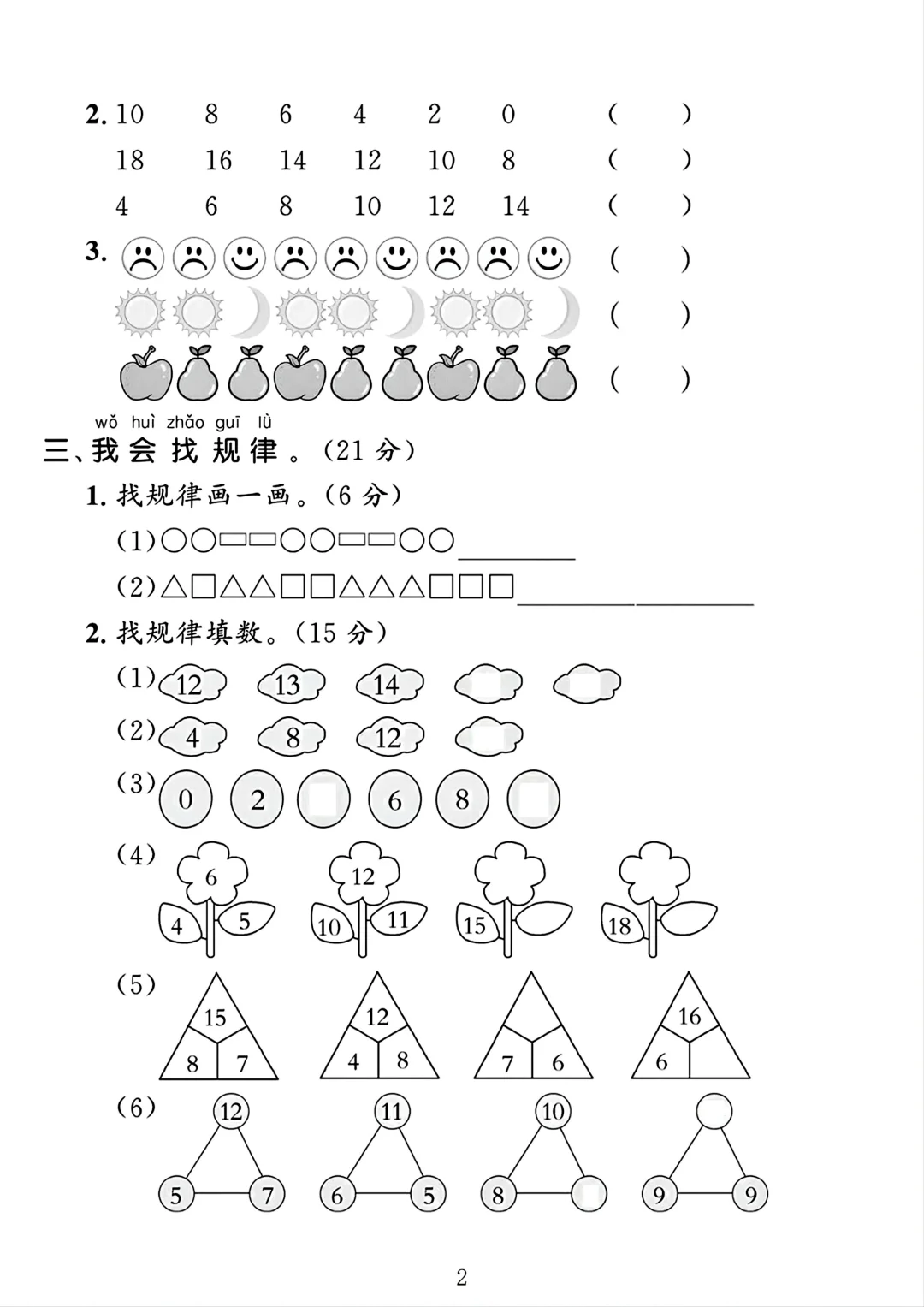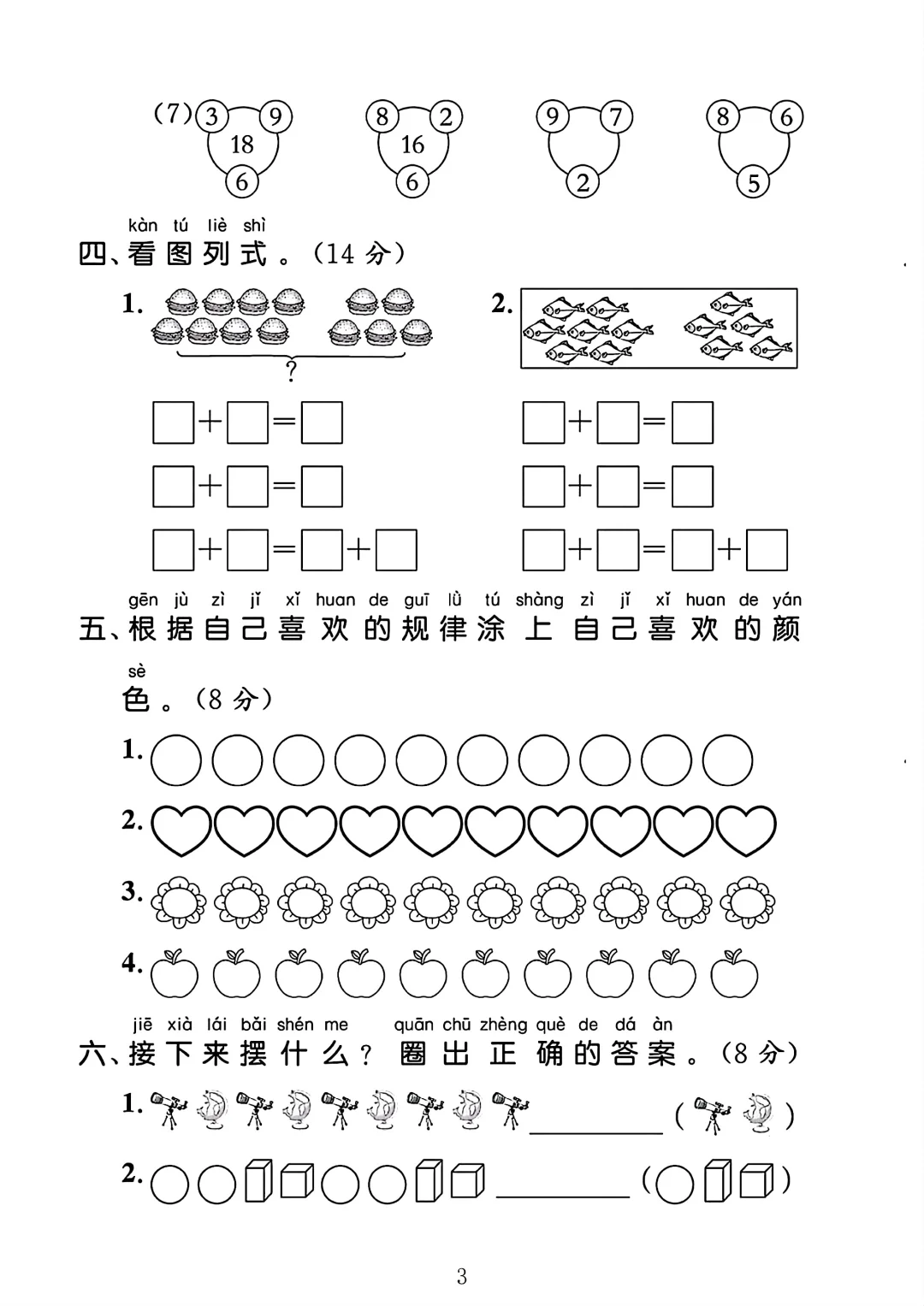 冀教版 一年级上册数学 第五单元 试卷 单元测试 电子版可打印