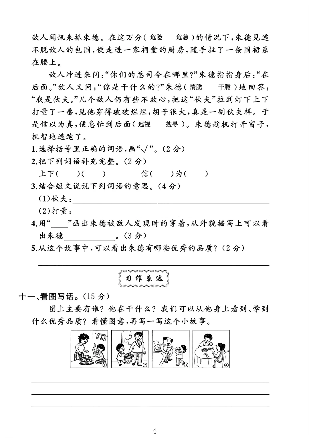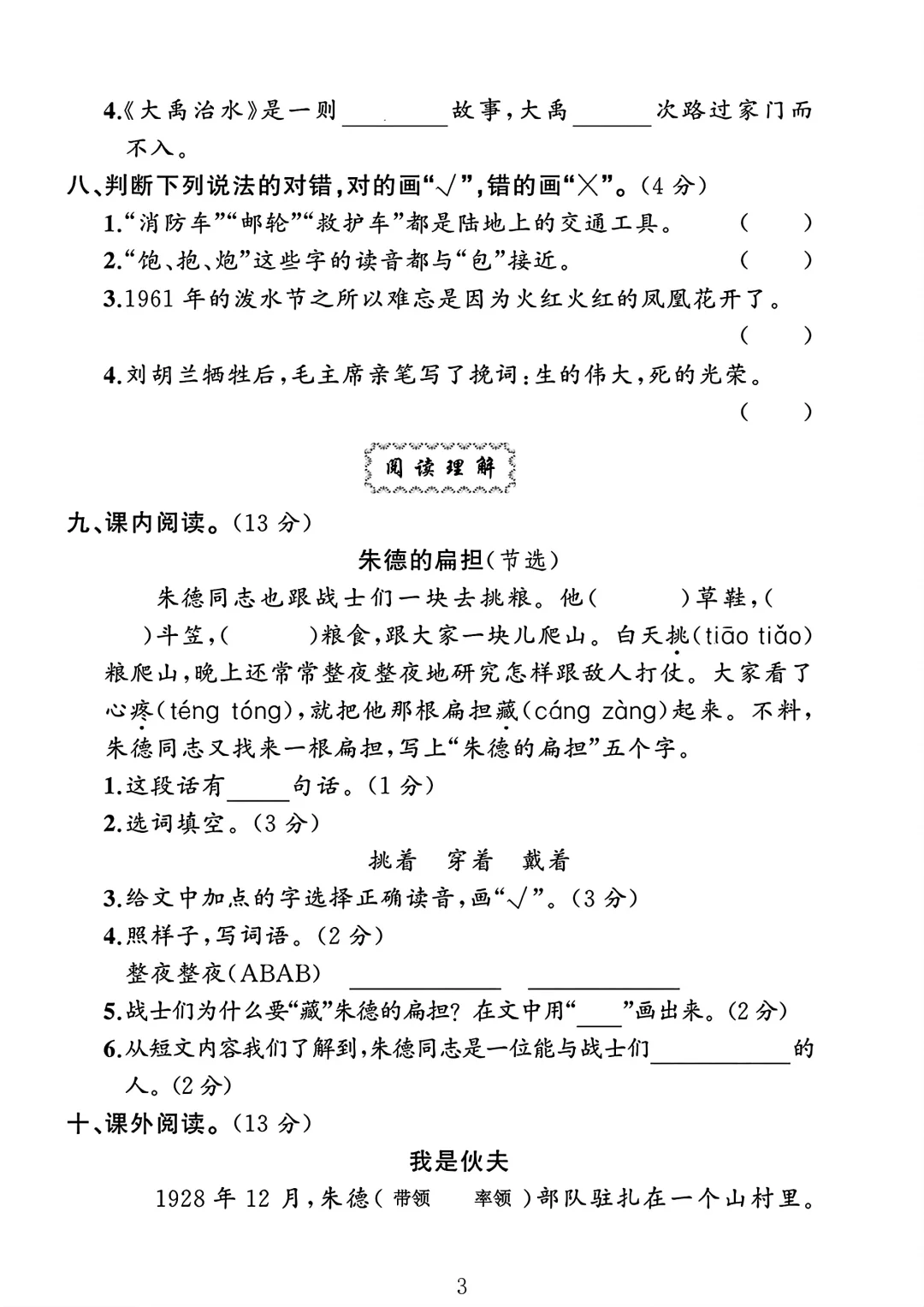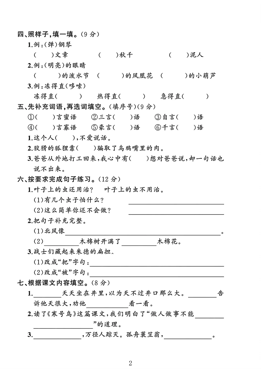人教版 二年级上册语文 月考 第二次月考 单元测试 电子版可打印