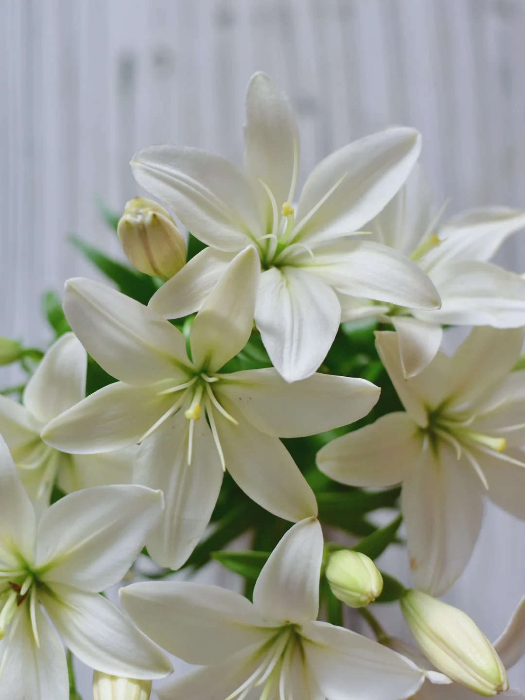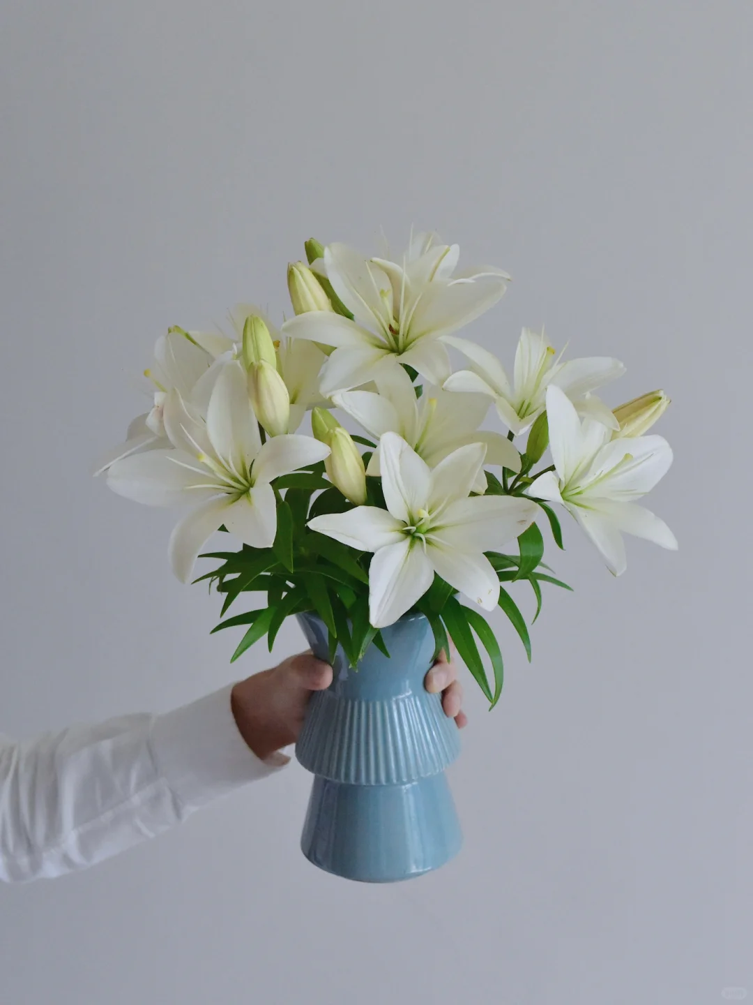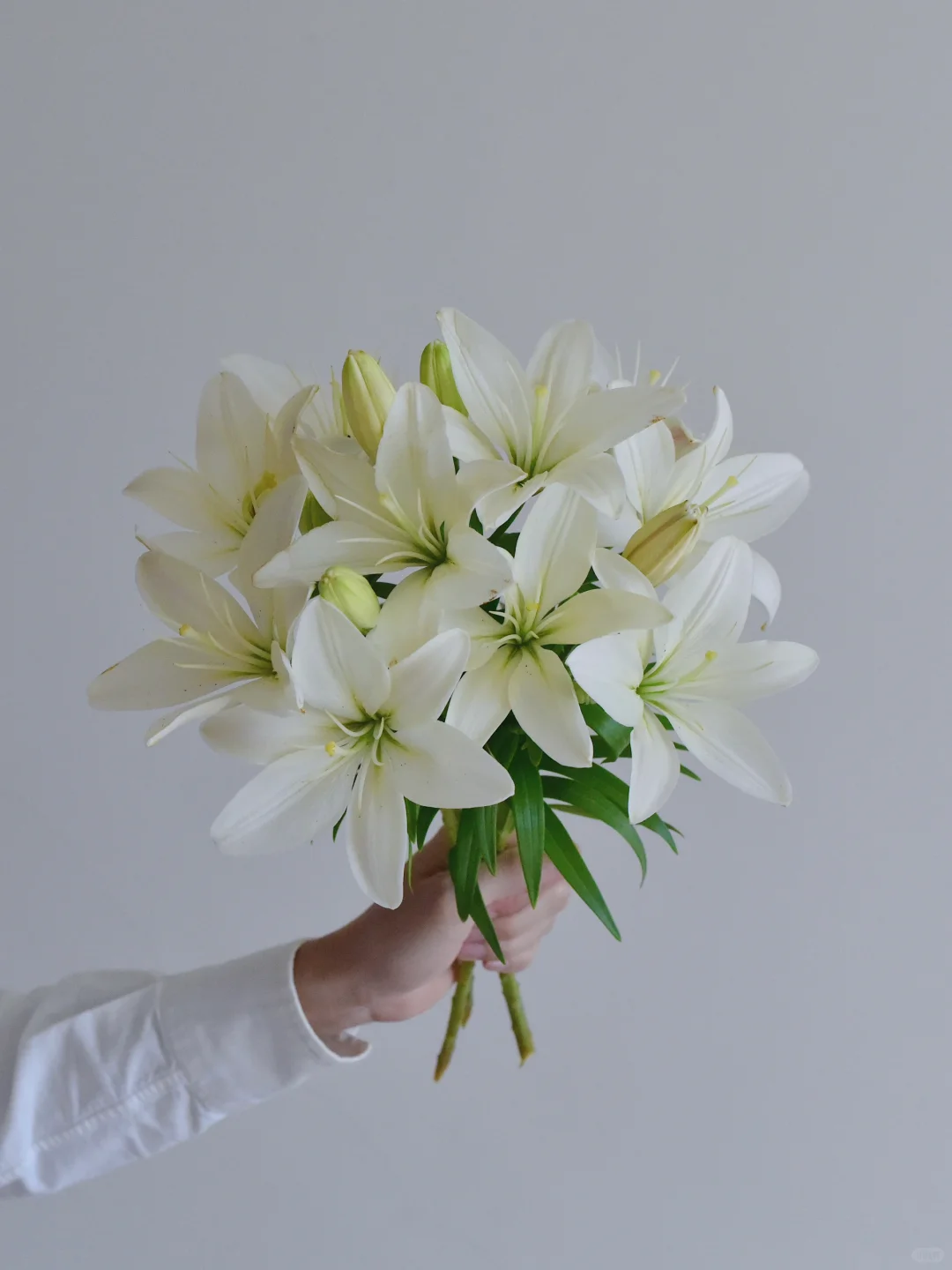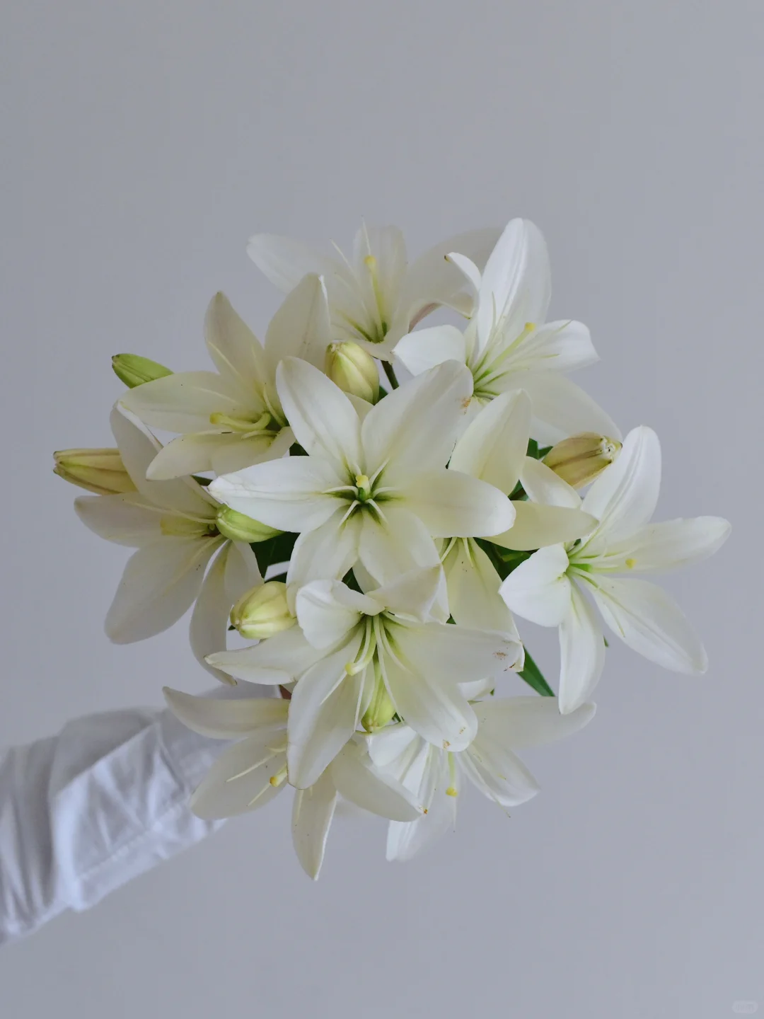 洁白无暇,温润如玉,一款质感绝佳的百合,白色带点绿芯的点缀,清新又美丽。