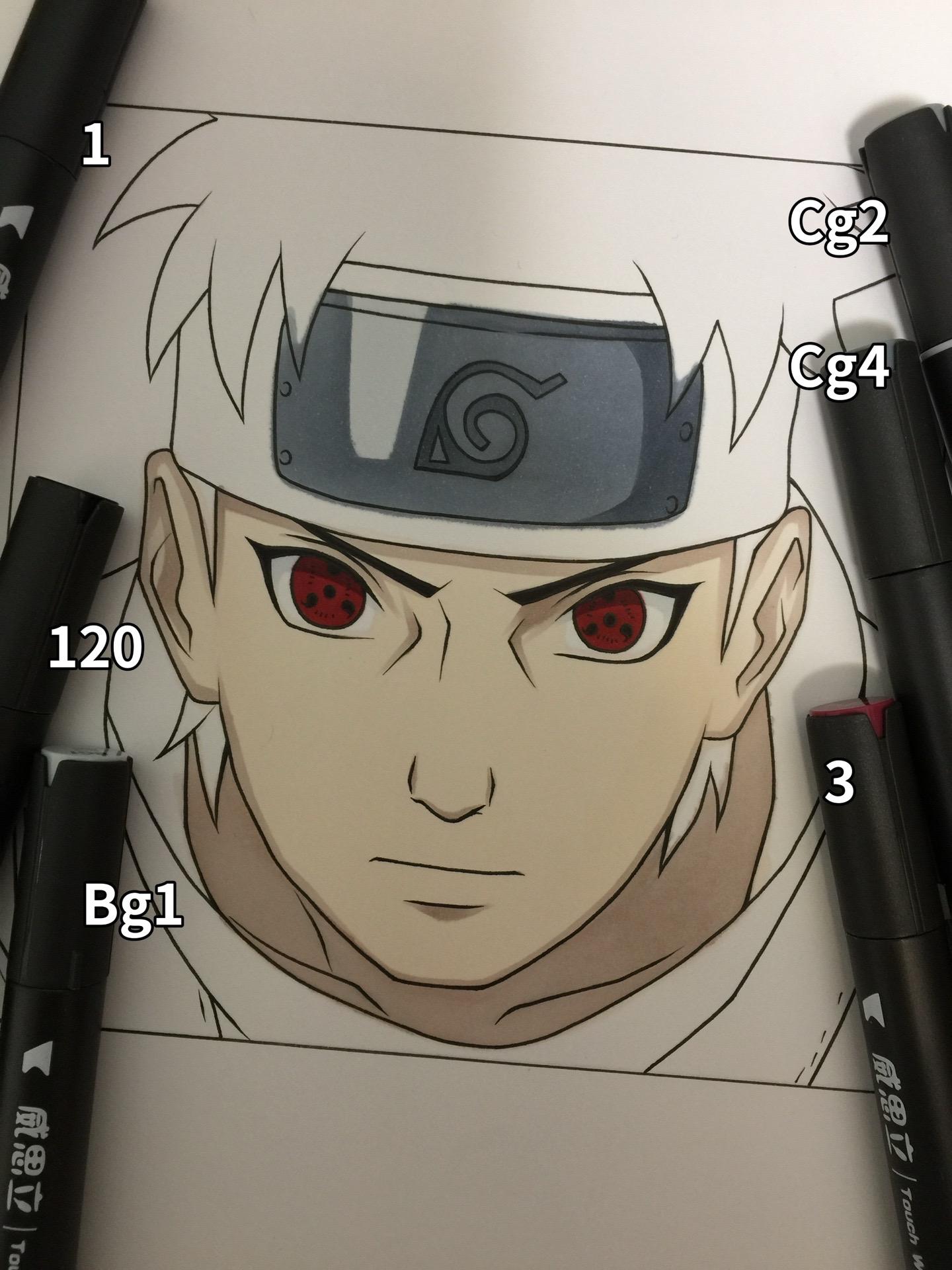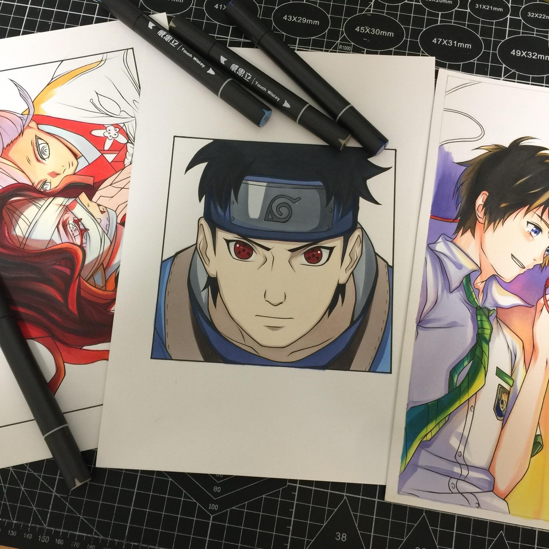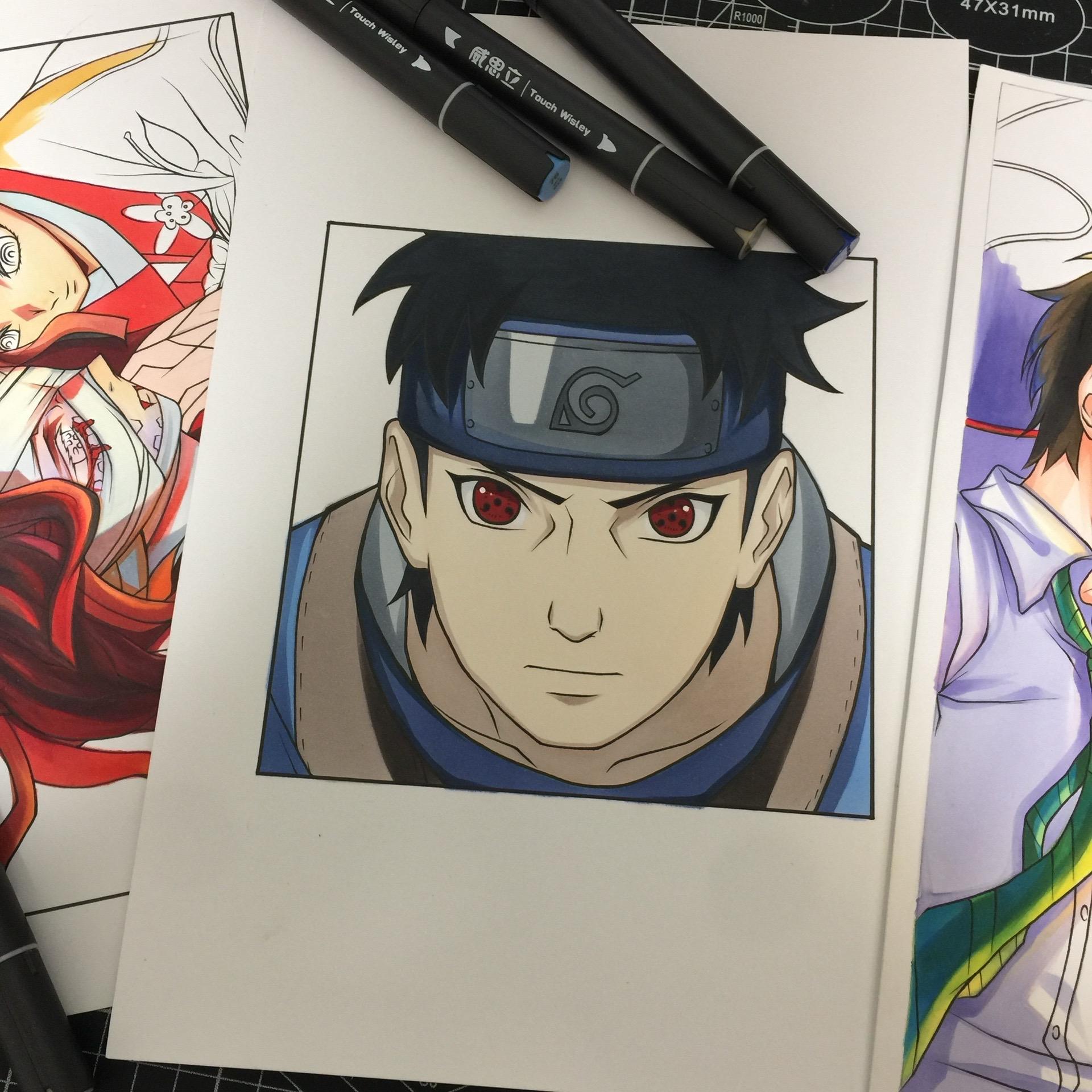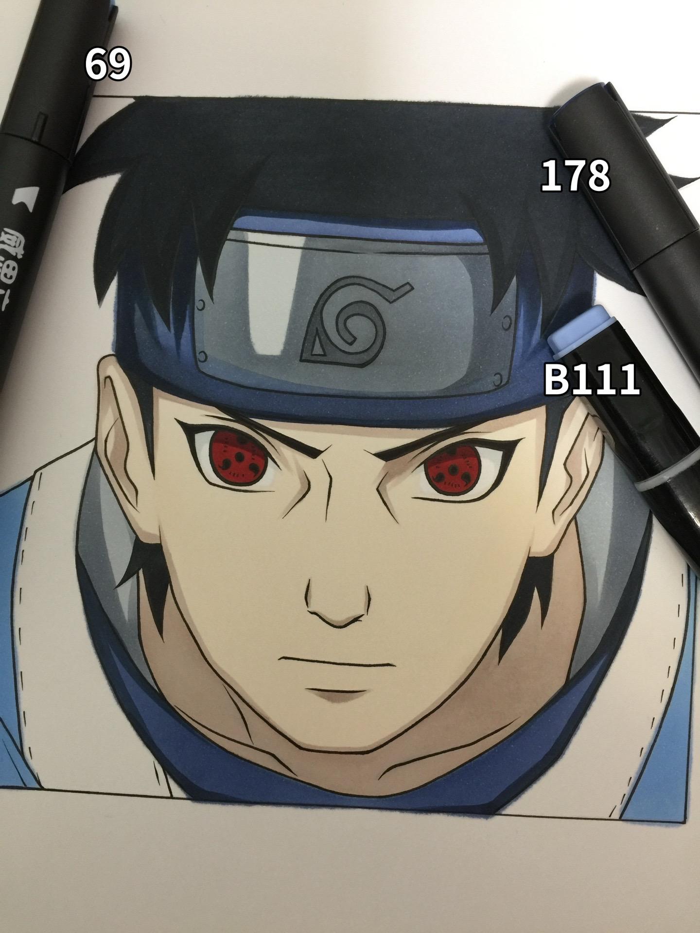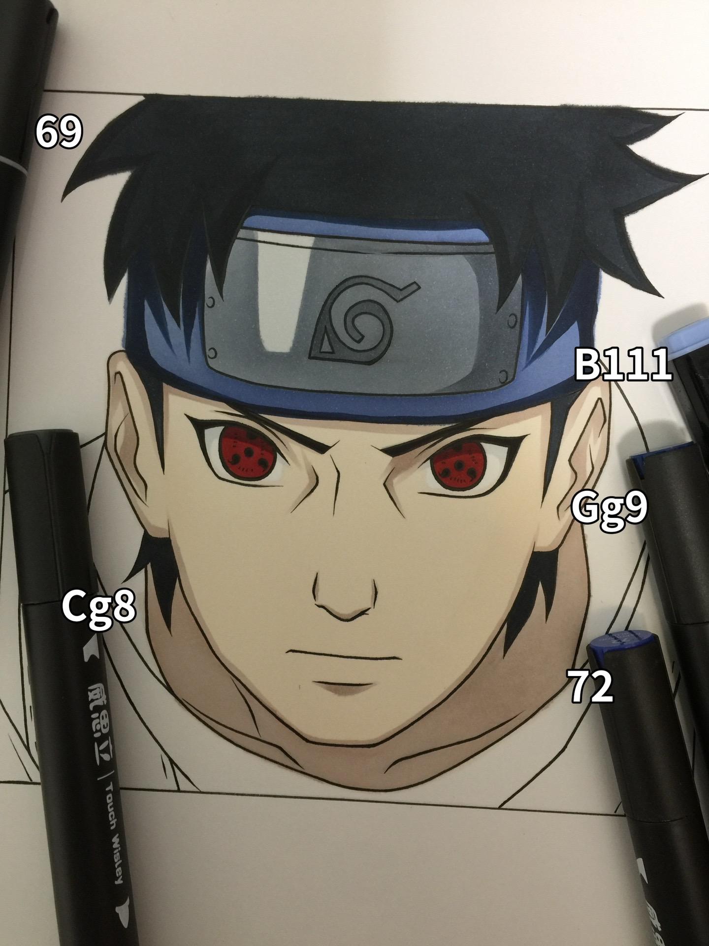 宇智波止水. 手绘 宇智波止水 画画 绘画过程图 火影忍者手绘 马克笔:威思立二代