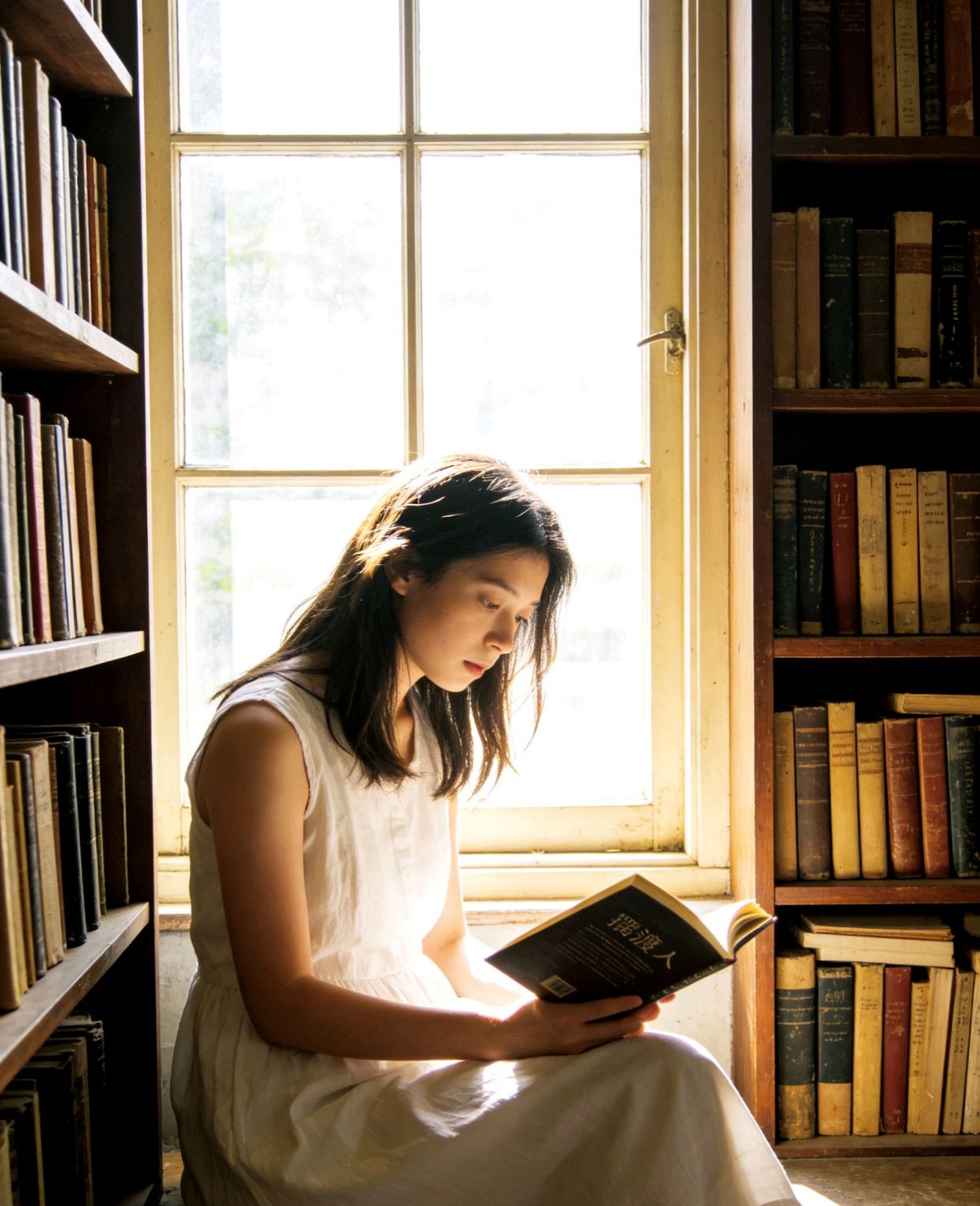 她进门没有四处乱看,径直走到诗歌区,抽出那本张嘉佳的《摆渡人》,然后走到靠窗的老位置坐下,阳光落在她的侧脸,连头发丝都泛着温柔的光。