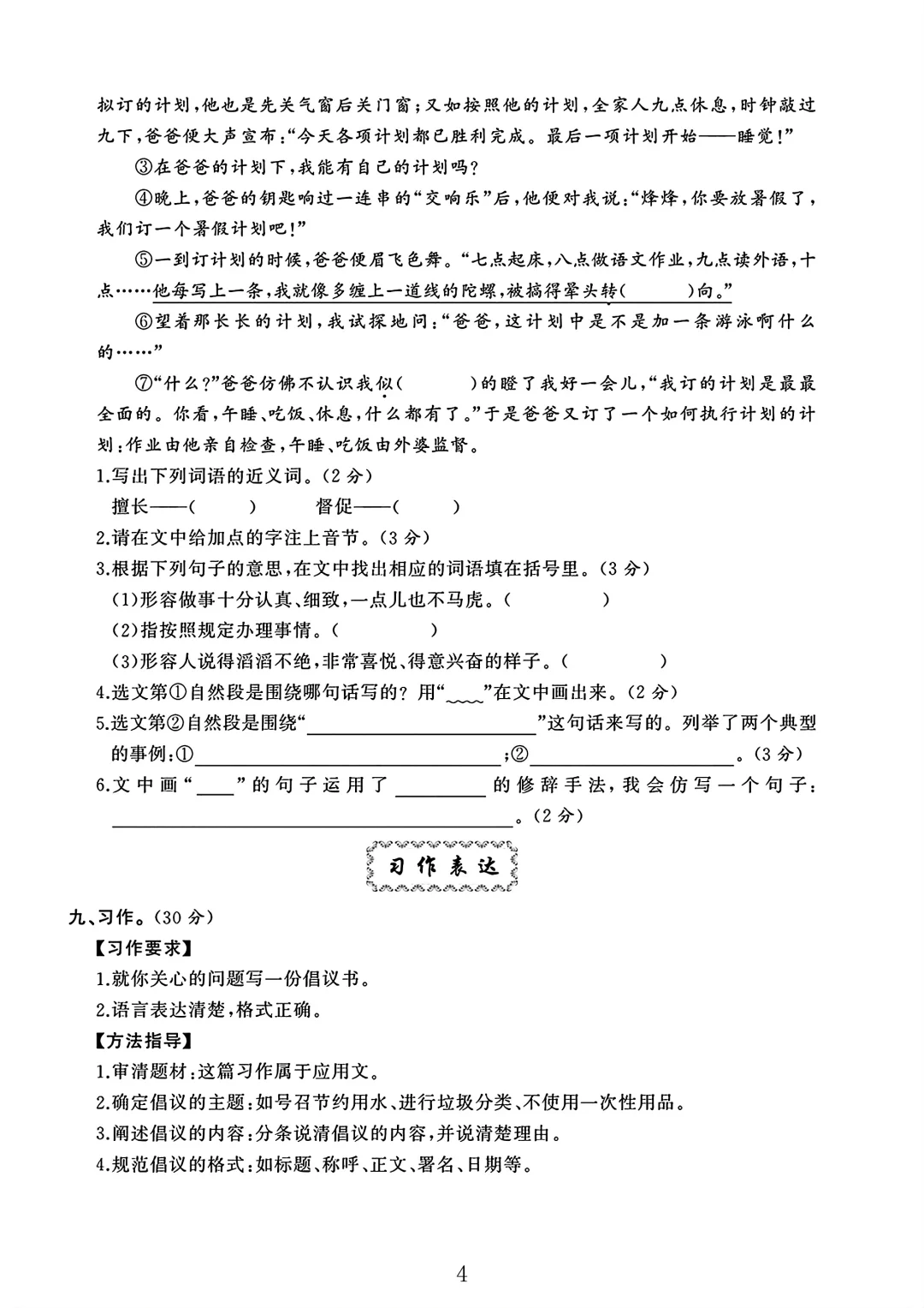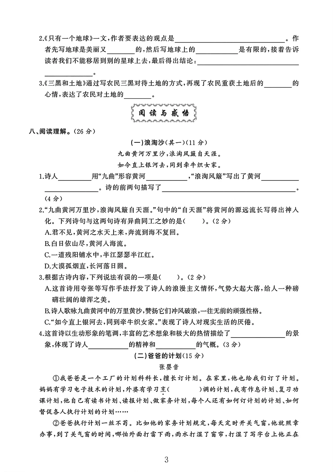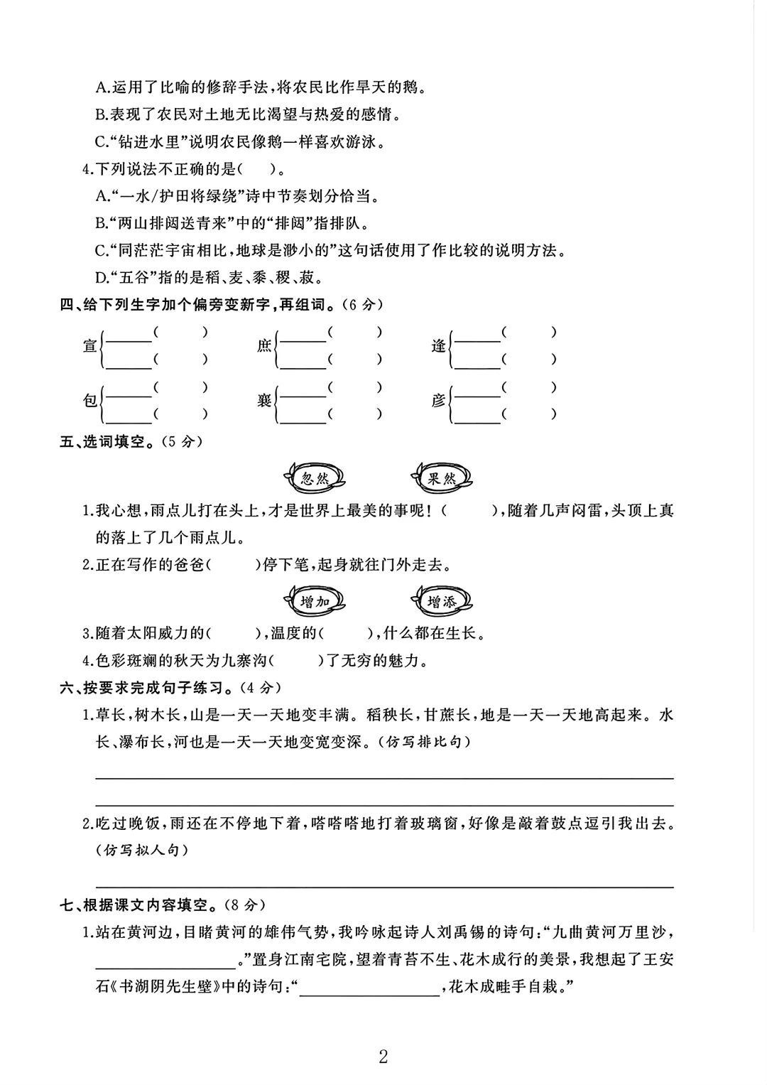 人教版 六年级上册语文 月考 第二次月考 单元测试 电子版可打印