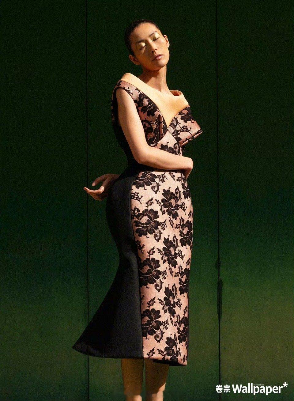 在深秋的稀疏暖阳中,刘雯与这座建筑被共同定格下永恒的瞬间。
