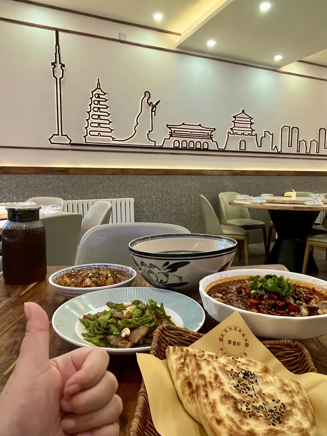 这才是儿时记忆里的陕菜的味儿! 辣椒炒卤肉带月牙饼:肉肉很大片,是卤过的,肥肉吃起来一点儿也不腻!配上软软的青椒,夹月牙饼吃,真正香么! 兴平辣子油泼鱼:上面是满满的一层辣子油,红彤彤的,看着就很诱人!鱼片儿爽滑入味,里面的配菜炒鸡丰富!配白米饭就很忒色! 老陕疙瘩汤:番茄口儿的,里面青菜碎、鸡蛋花、面疙瘩……很丰富!下雨天来上这么一碗儿,暖暖的,很贴心~
