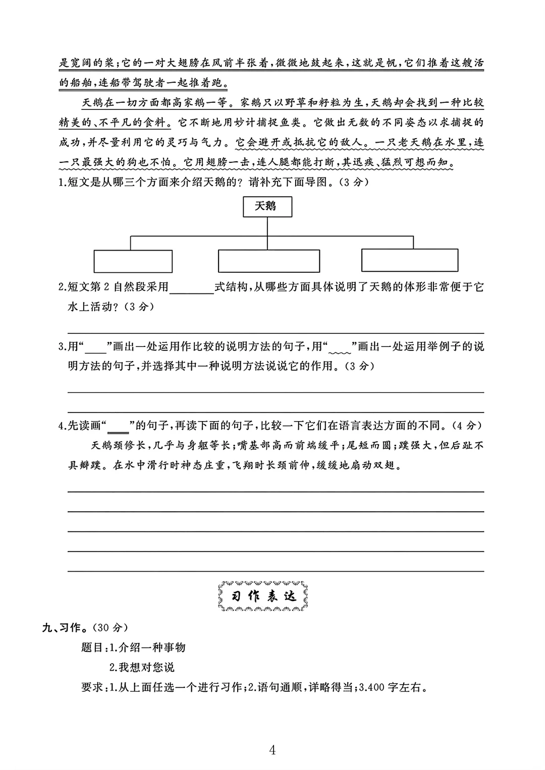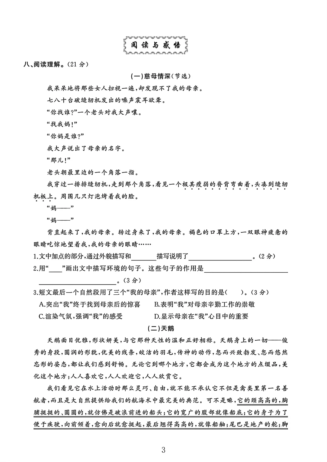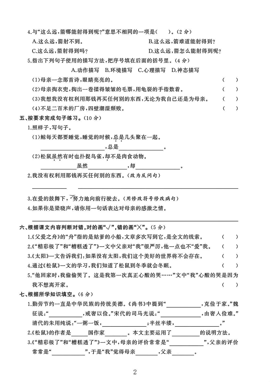 人教版 五年级上册语文 月考 第二次月考 单元测试 电子版可打印