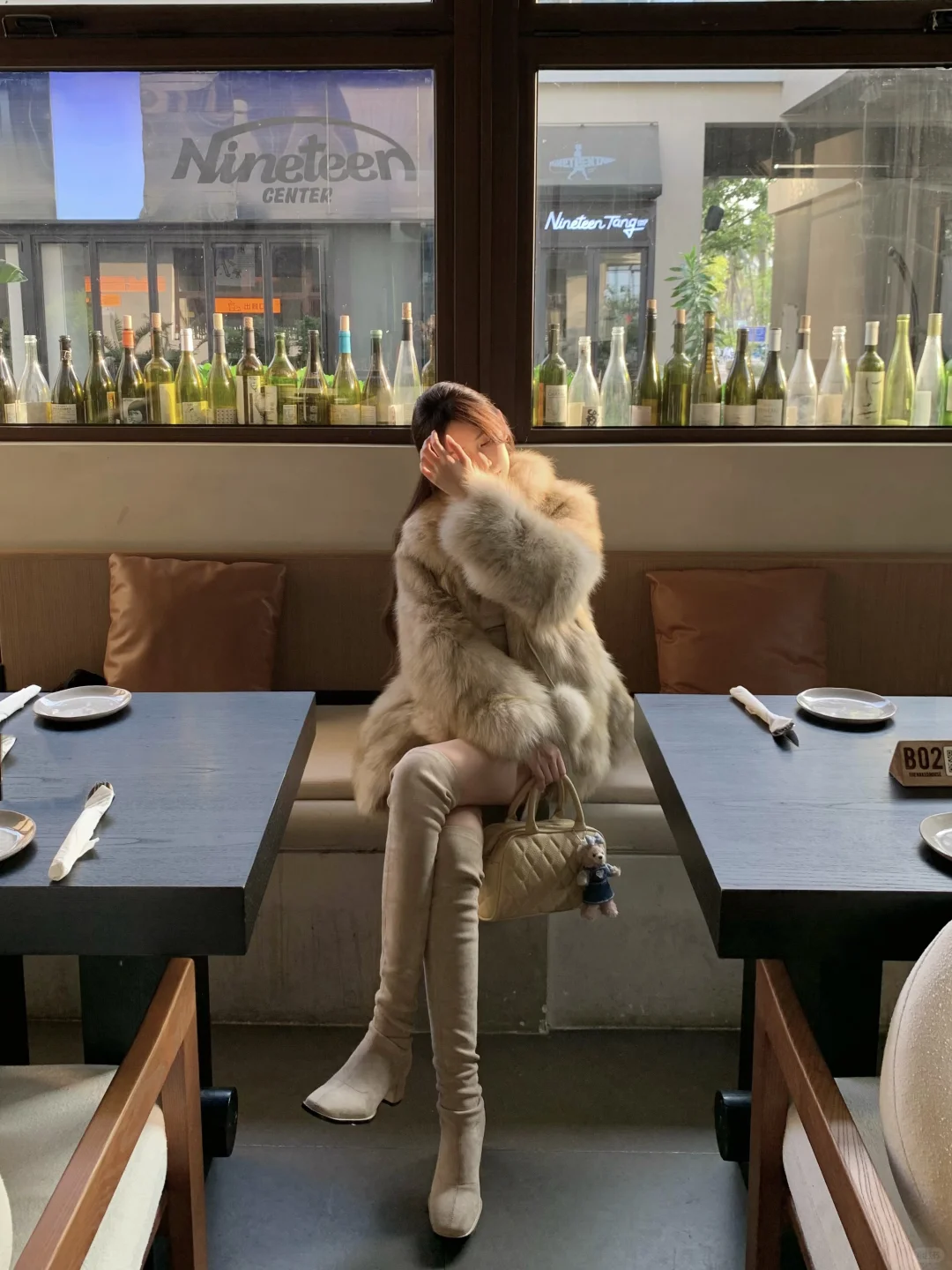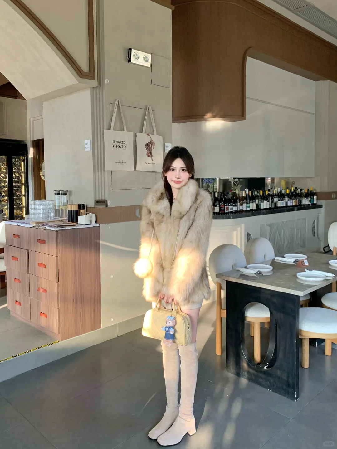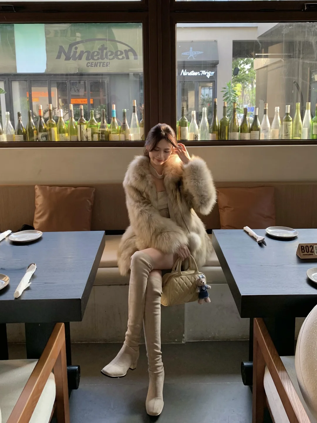韩系穿搭 慵懒感穿搭韩女拍照 皮草穿搭 毛茸茸软乎乎