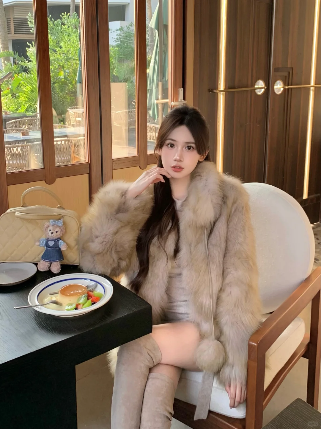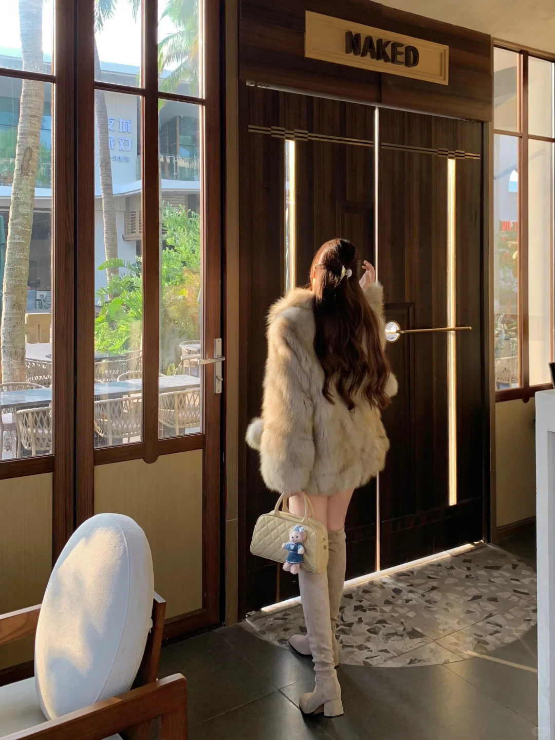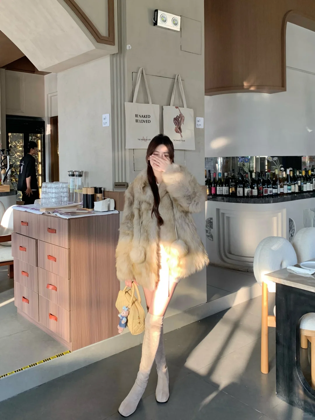 韩系穿搭 慵懒感穿搭韩女拍照 皮草穿搭 毛茸茸软乎乎