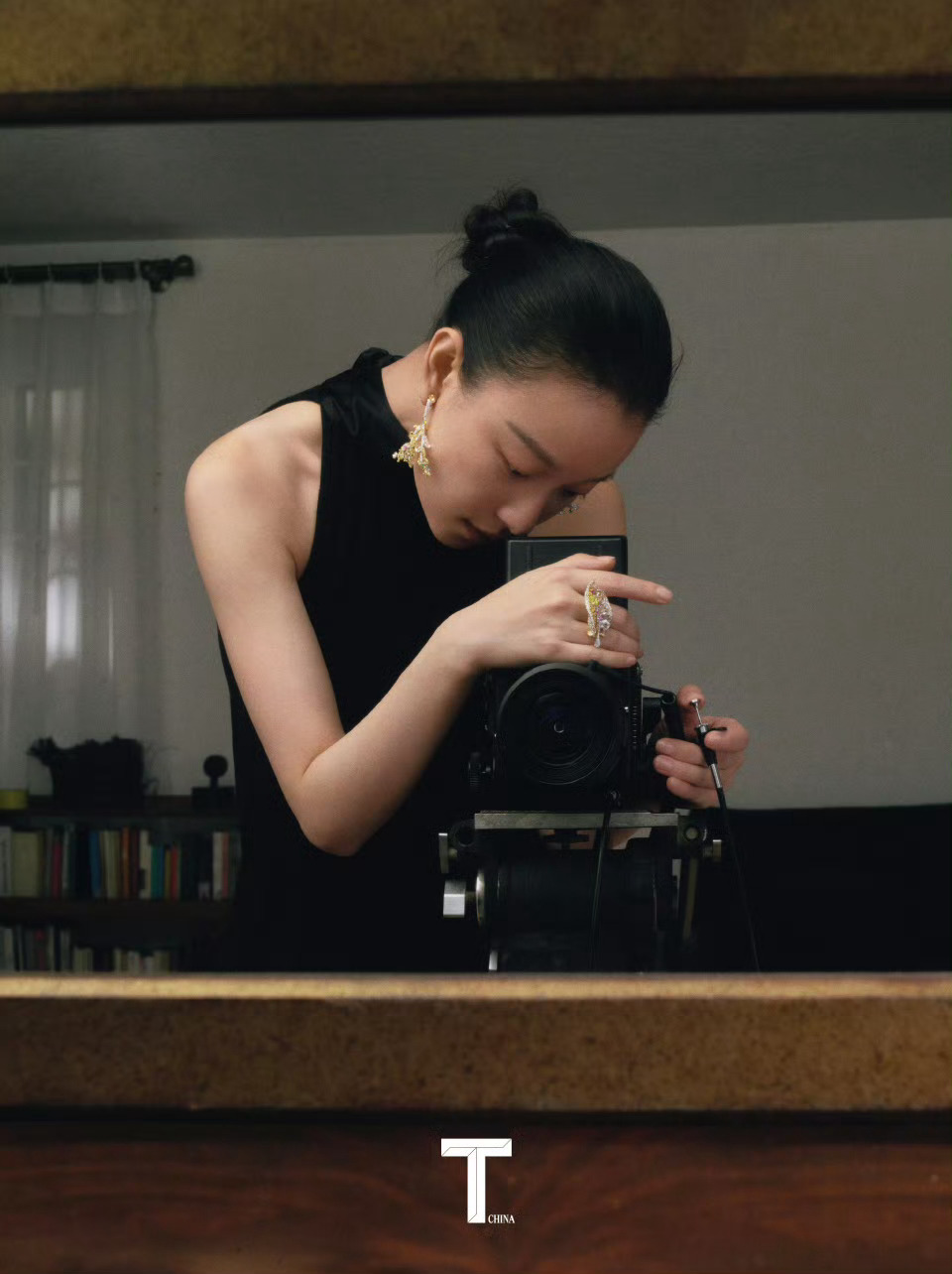 倪妮拍封面用坏了两根快门线 倪妮给自己拍了组封面,让大摄影师许闯当助理,表面很