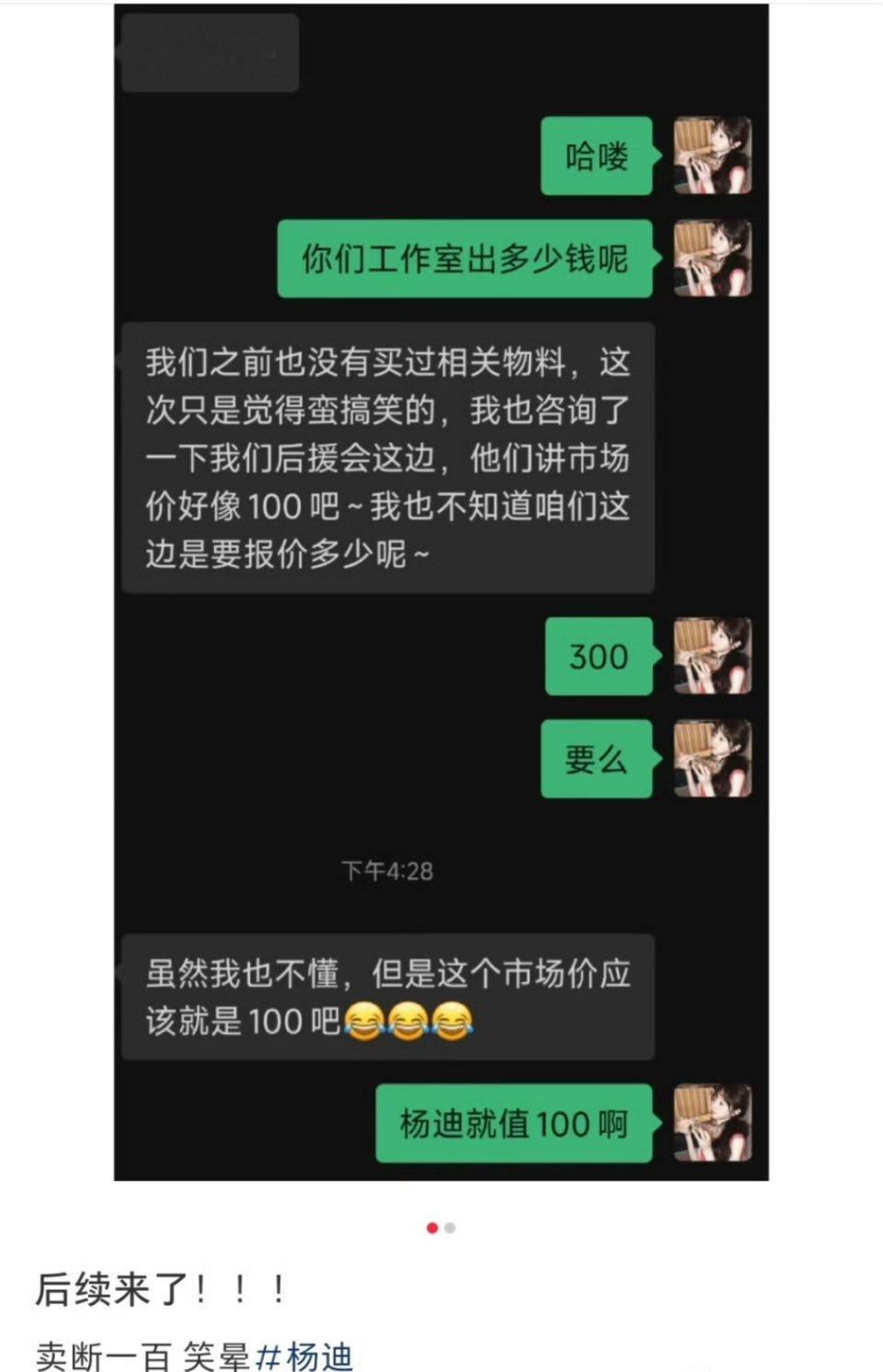 杨迪就值100啊 哈哈哈哈杨迪怎么连工作人员都这么搞笑,花100买断杨迪的物料,