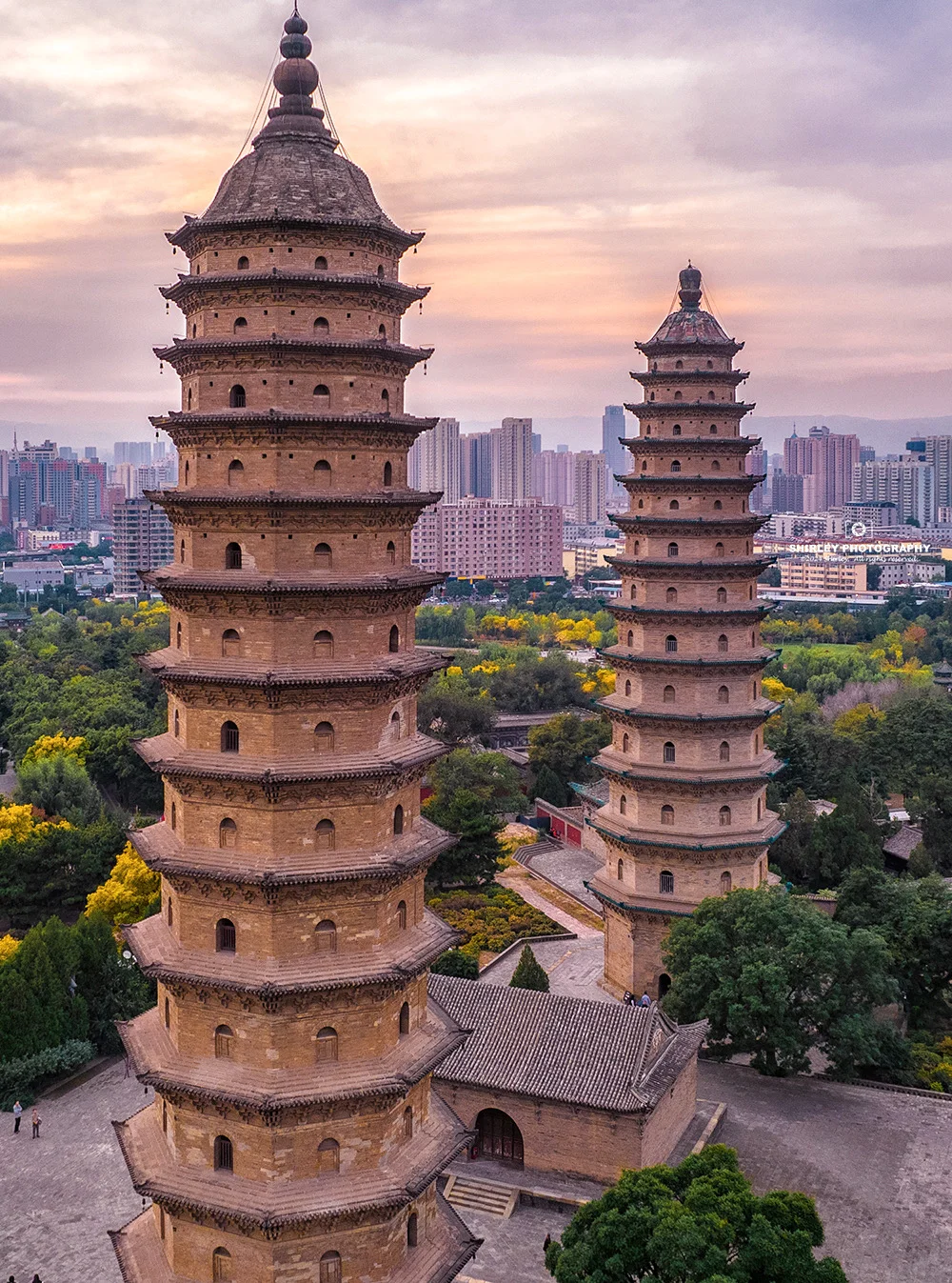 永祚寺双塔不在游客的必去清单上,可能很多人连名字都没听过。它不仅是古晋阳八景之一,更是太原的头号地标建筑。不仅大街小巷都能看到双塔的符号,就连太原的市徽也是双塔。