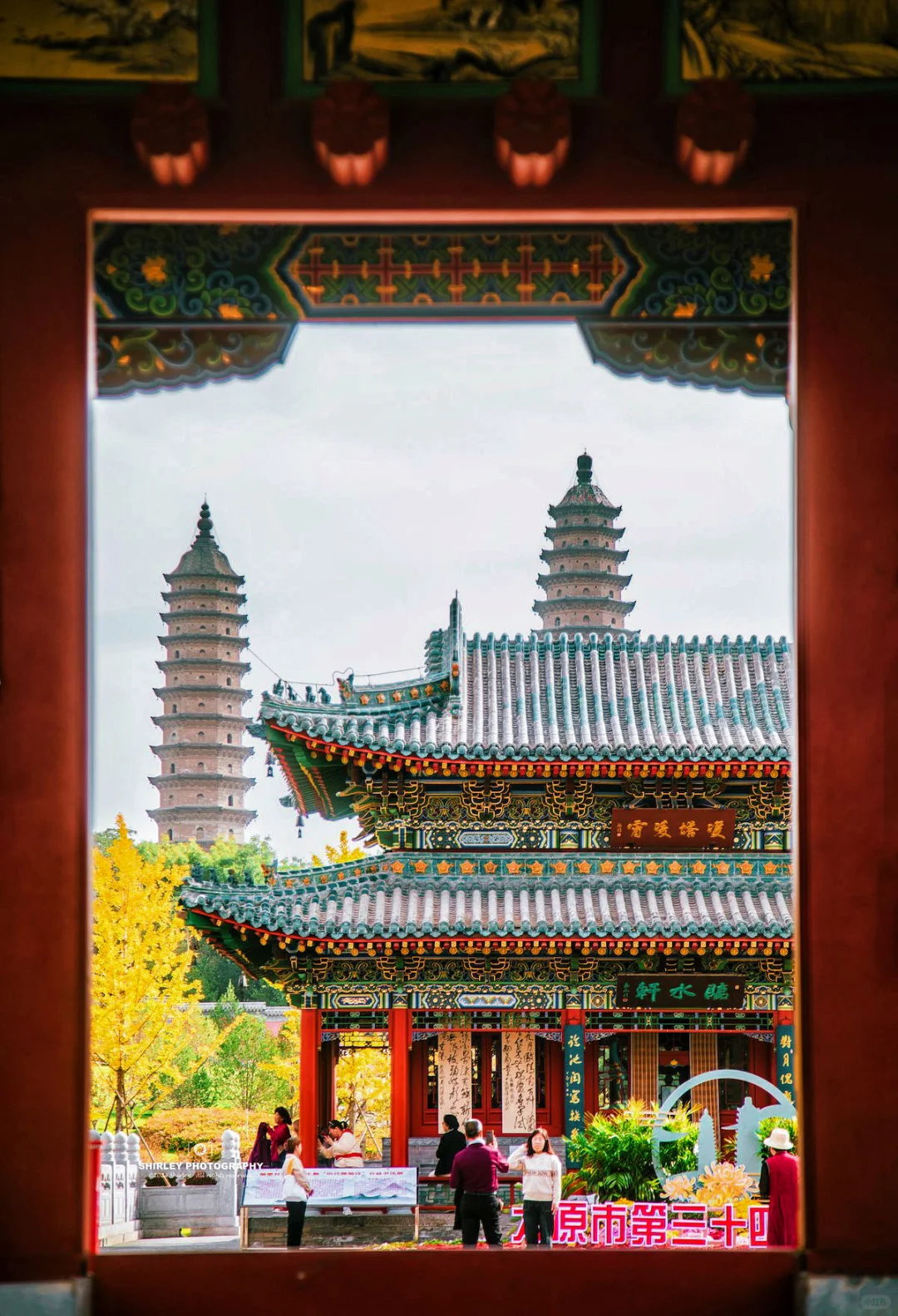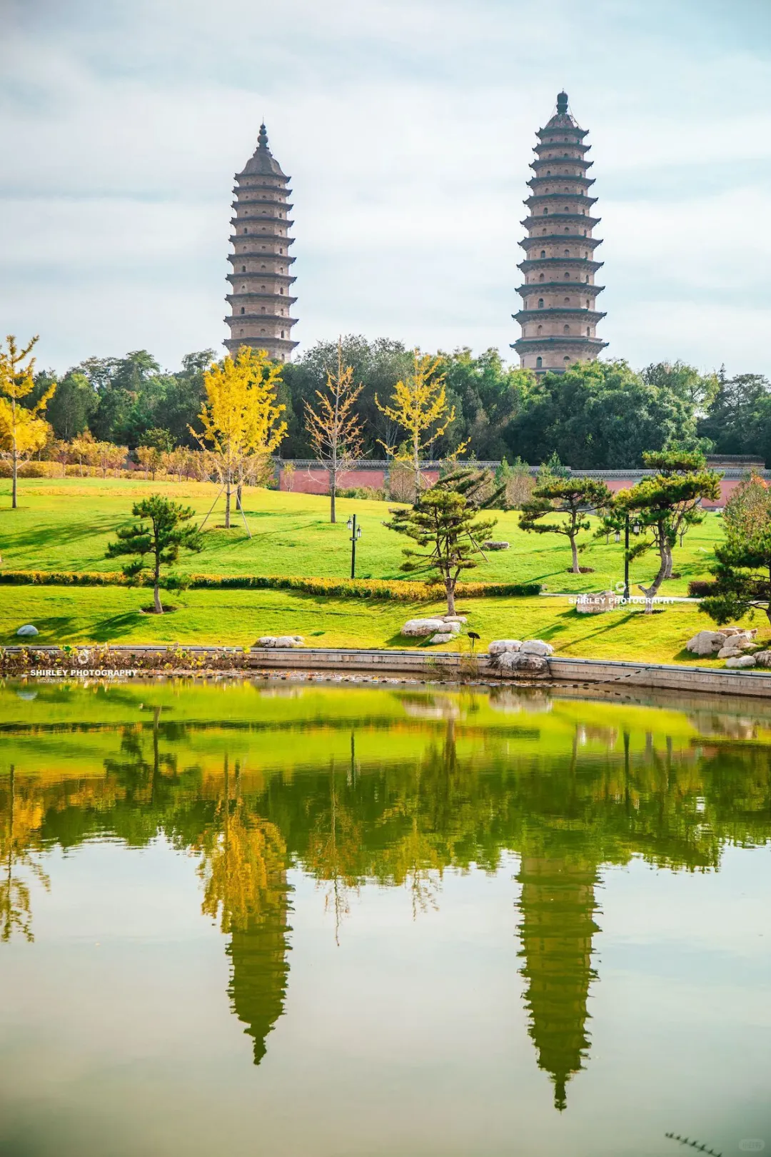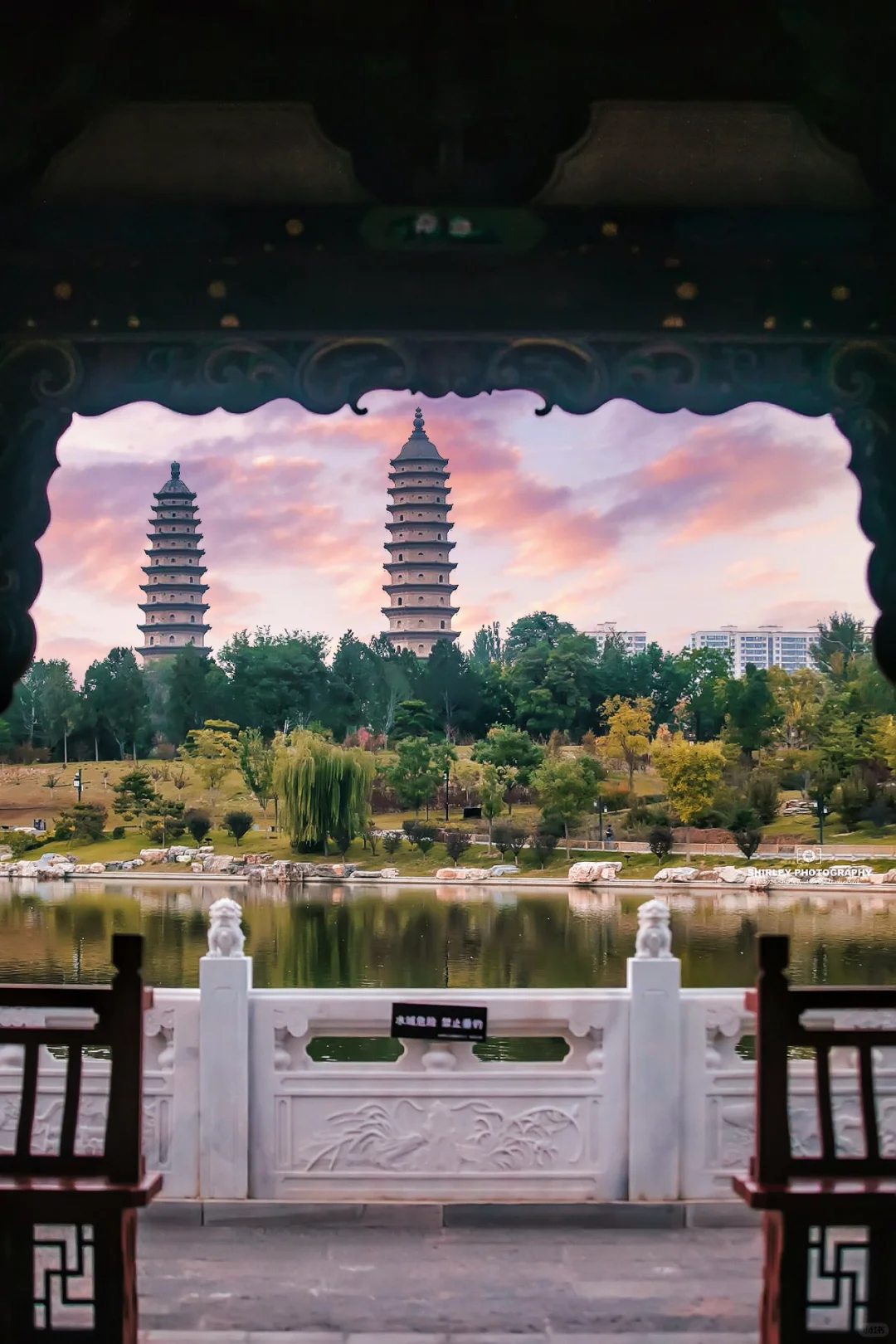 古建所在的博物馆区,被后建的双塔公园环绕其中。而双塔公园本身就是一座风景绝美的公园,很多角落都可以遥望双塔。整体风格被既有北方的大气,又有江南的灵气。