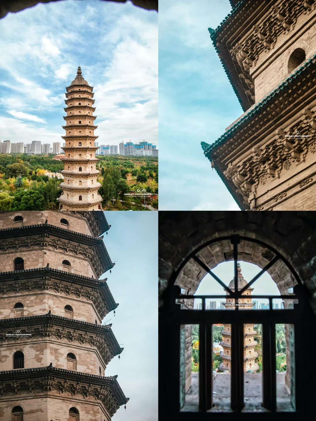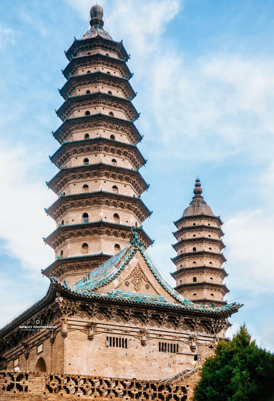 ▫️文峰塔古朴大方,宣文塔工艺考究,有“看木塔到应县,看砖塔到太原”之说,是我国的双塔之最。