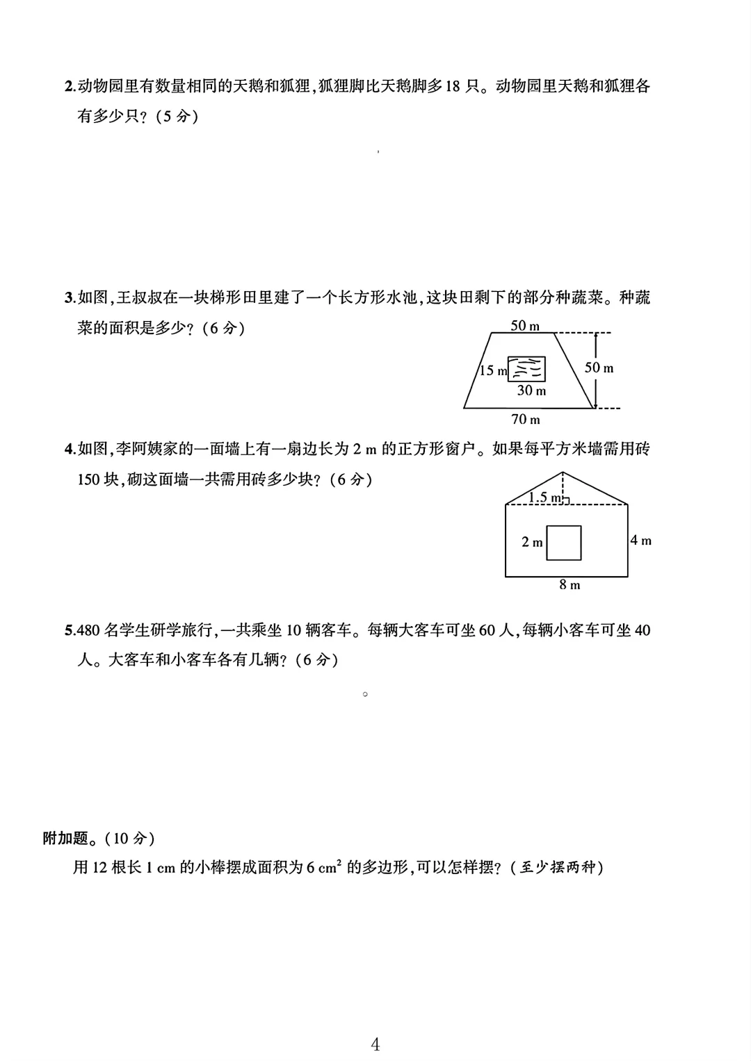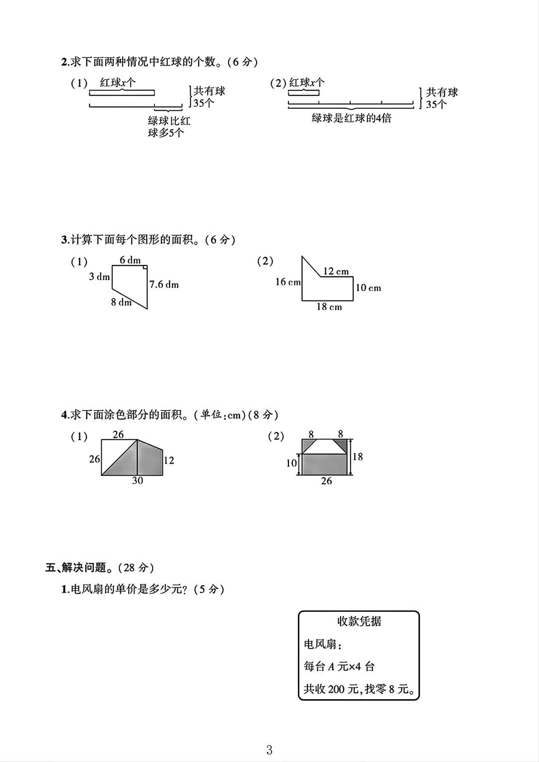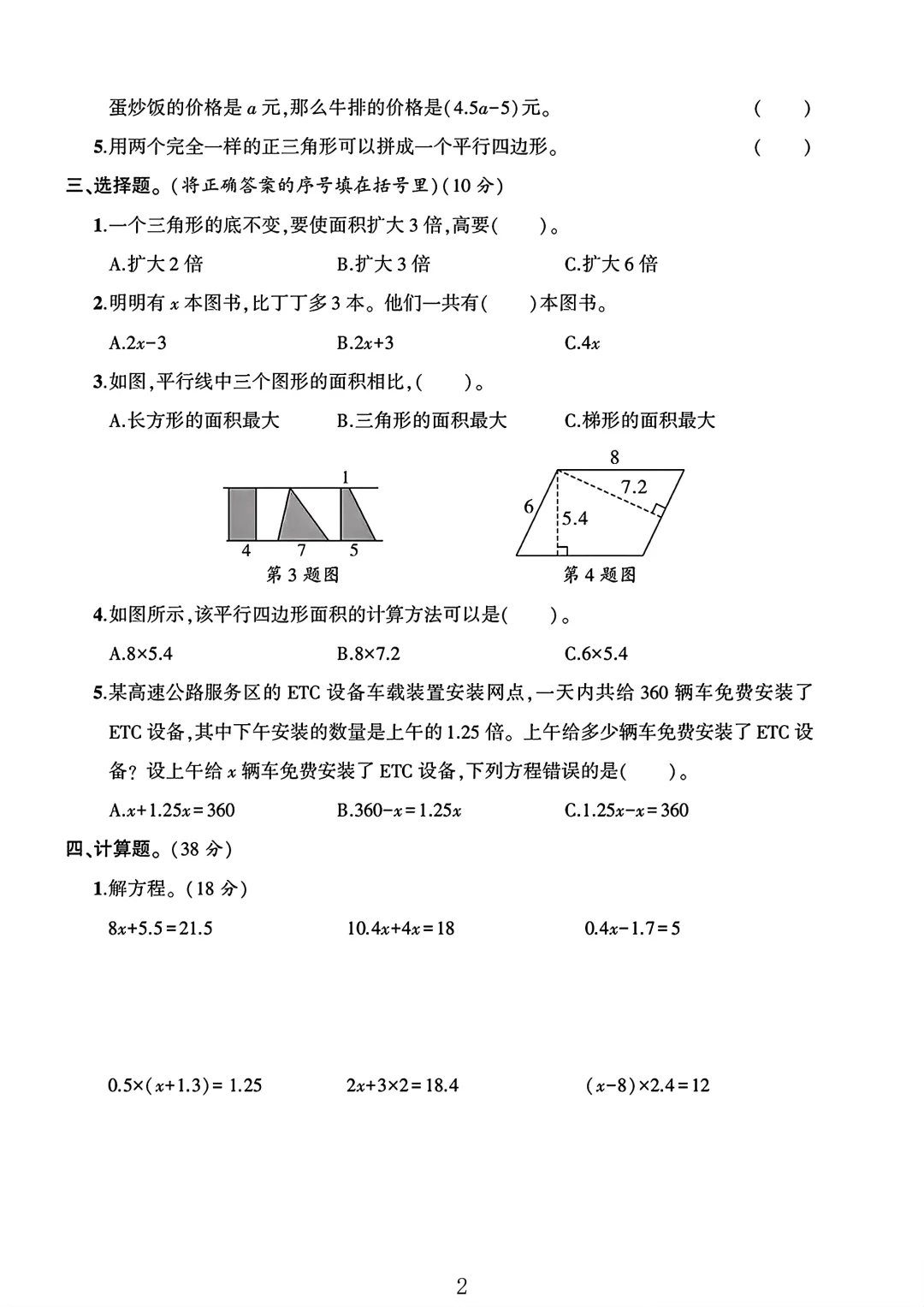 人教版 五年级上册数学 月考 第二次月考 电子版可打印 单元测试 试卷