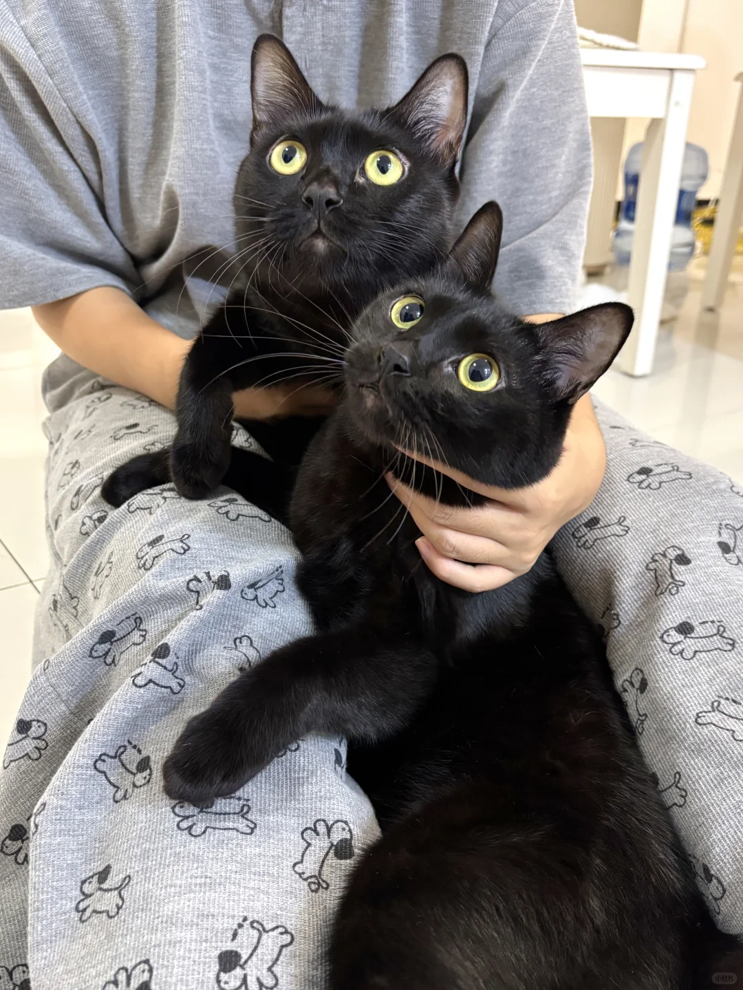 大黑小黑两个多月来到了我的家里,食量巨大,用爪子抓住我的衣服在我身上攀爬,在各个家具间上蹿下跳。他们过度的粘人活泼,还总是大声喵喵叫,吵得我头痛。我不知道世界上还有这样的猫。