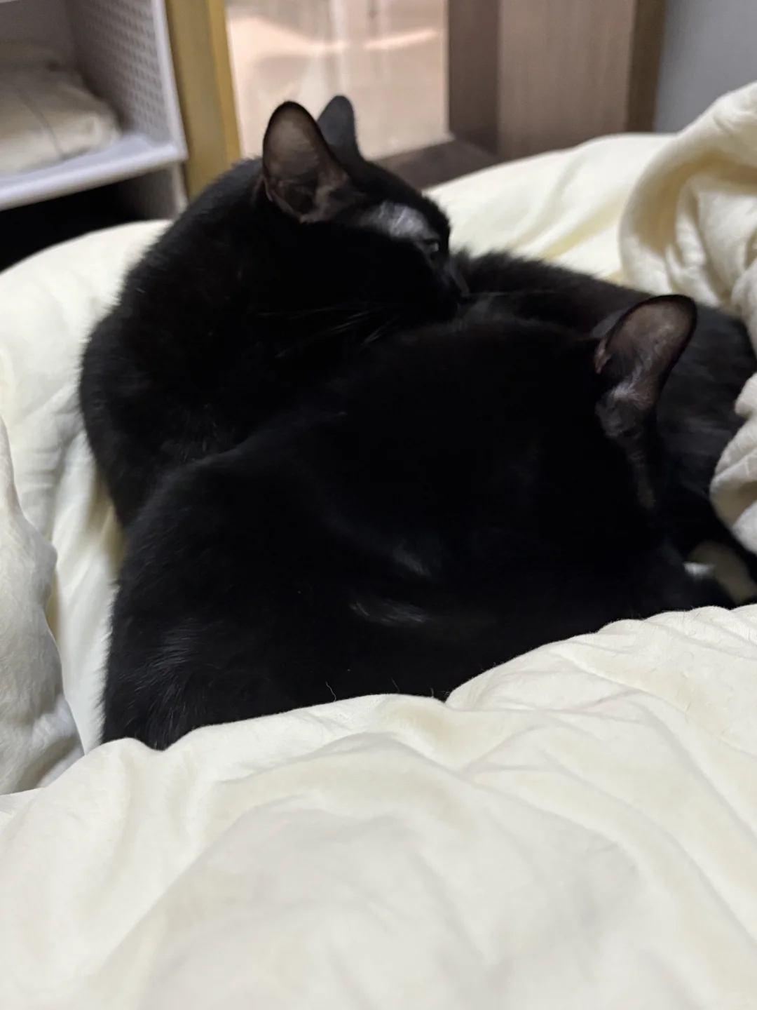 现在,大黑小黑已经两岁多了。他们还是那么调皮,喜欢到处开柜子刨东西;还是那么粘人,抓紧一切机会黏在人身上;还是那么吵闹,得不到人的注意就一直喵喵大叫。即使过了幼猫期,食量还是比一般的猫大很多。