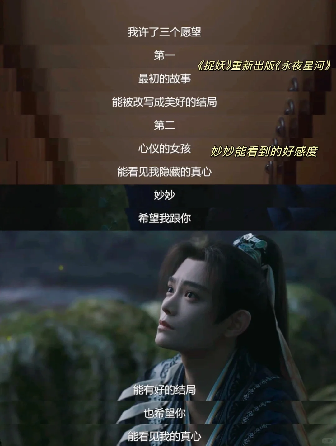 浮舟说自己的愿望是“最初的故事能有个美好的结局”,所以就把自己写的第一本书改了内容重新出版就叫做永夜星河; 第二个愿望“希望心仪的女孩能看见自己隐藏的真心”,妙妙就可以随时随地查看到慕声对自己好感度的变化🥲慕声的记忆也是从太仓郡开始逐渐恢复的,因为是爱的人靠近了☺️他的每一本小说都是写给妙妙的,希望妙妙能感受到他文字的温暖和治愈🥹