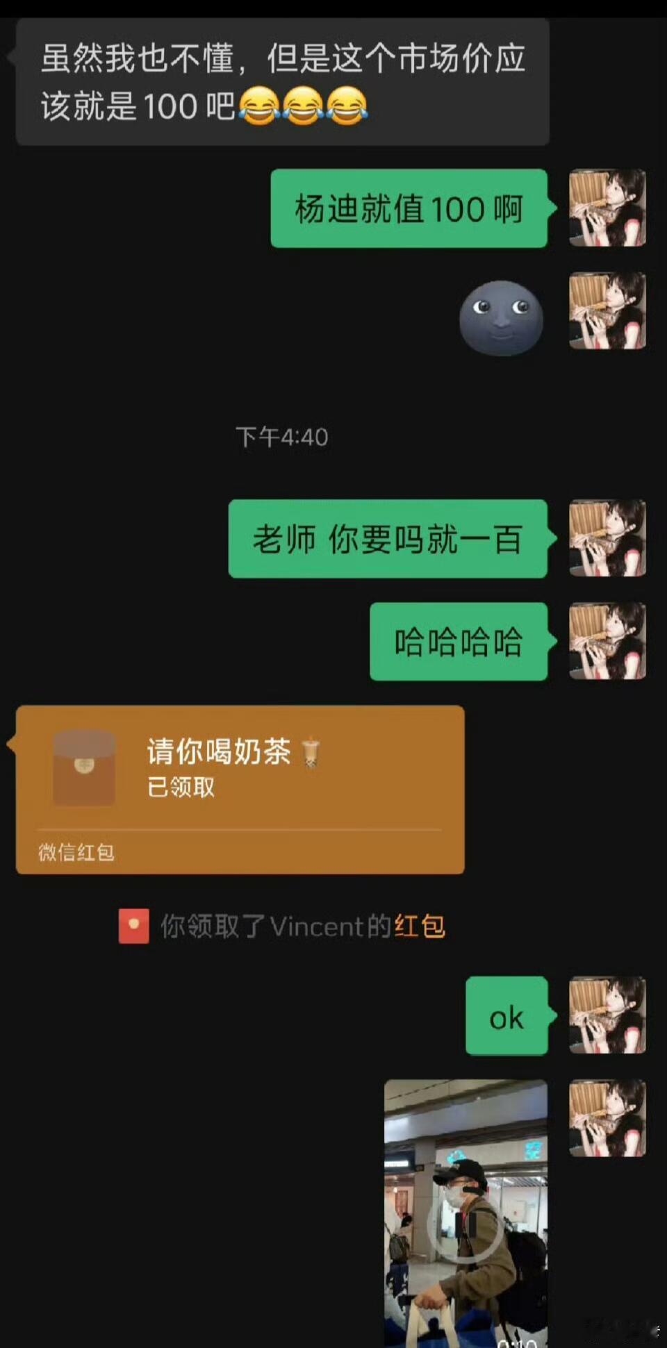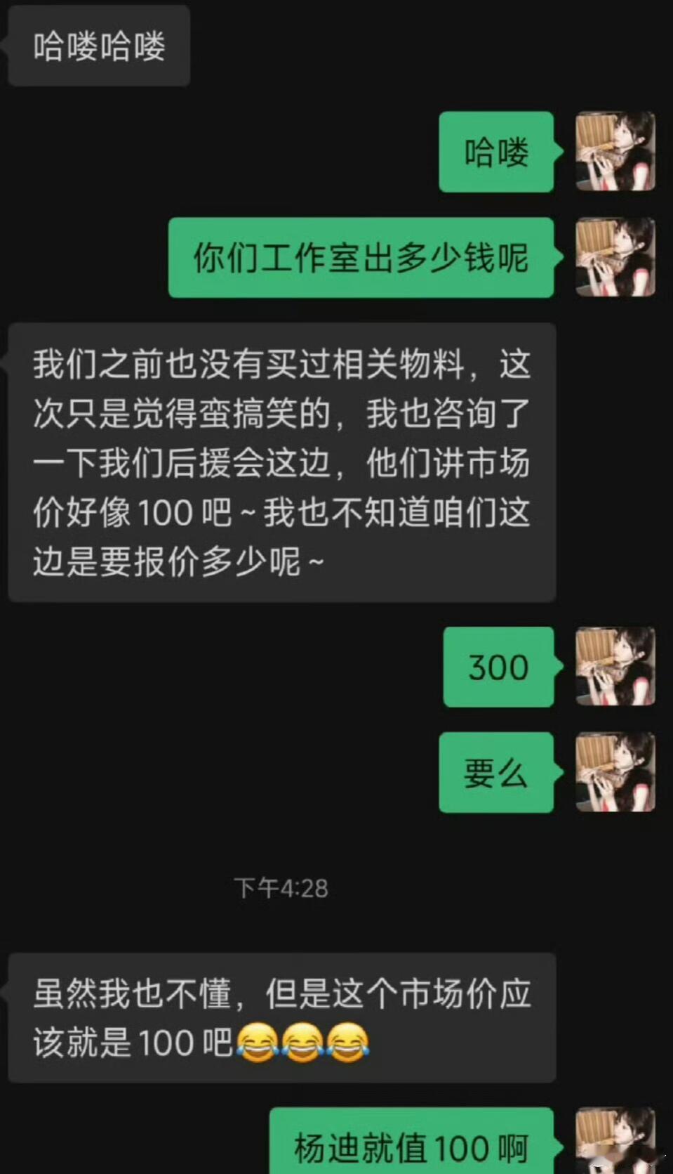原来在经纪人眼中,杨迪的物料图就值100元,多了也不要了哈哈哈哈哈!《杨迪就值一百啊》《老师 你要吗就一百》