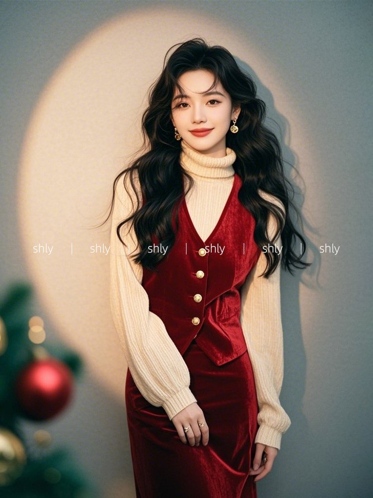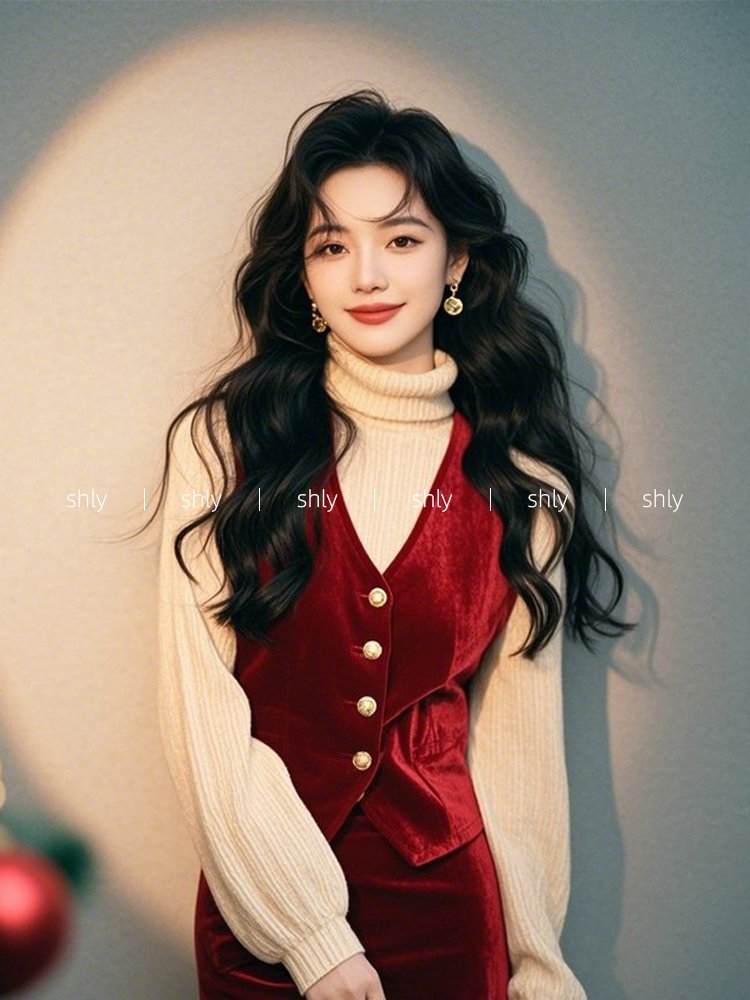冬天配大衣的打底内搭裙子法式长裙红色丝绒连衣裙2024新款女秋冬