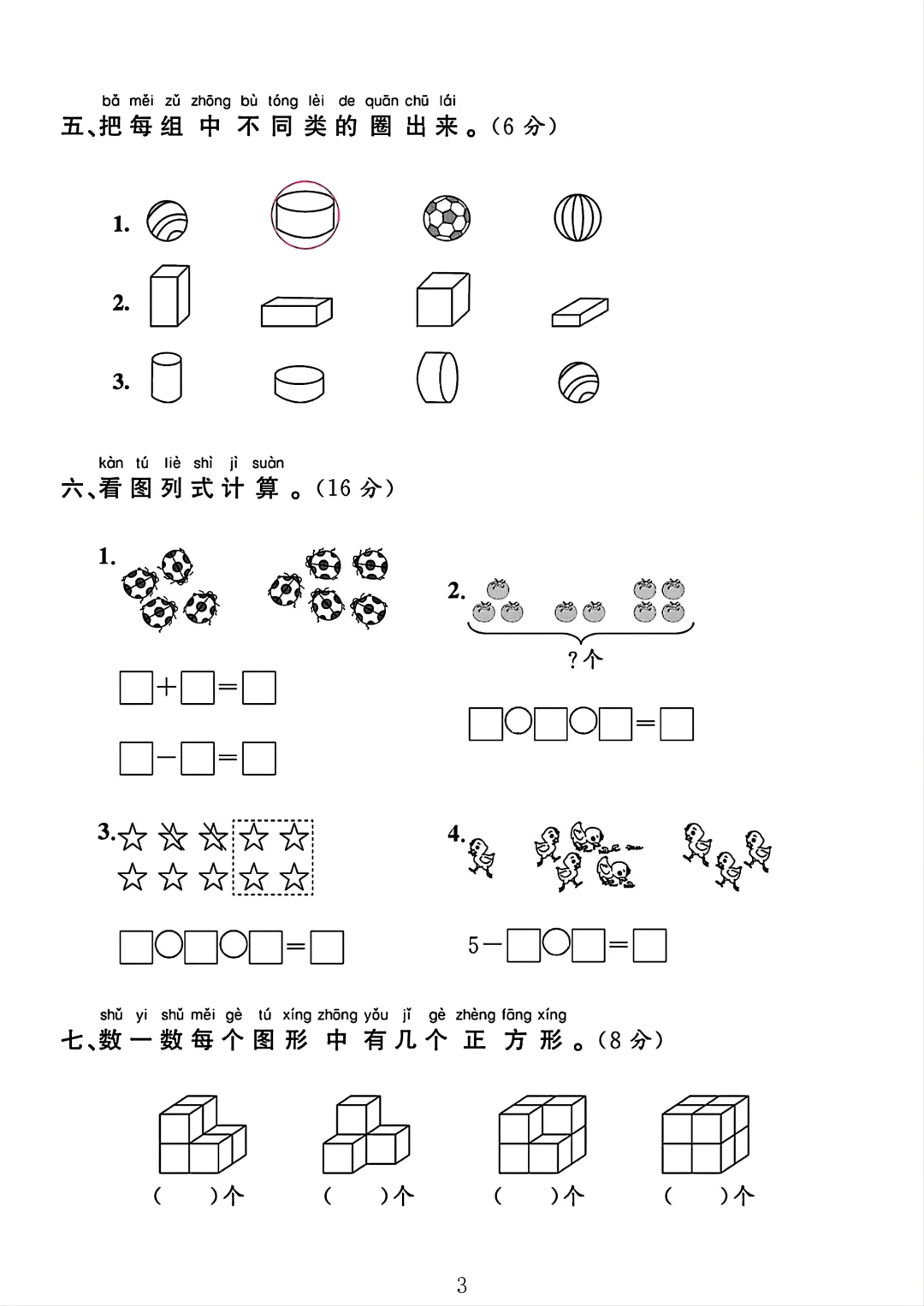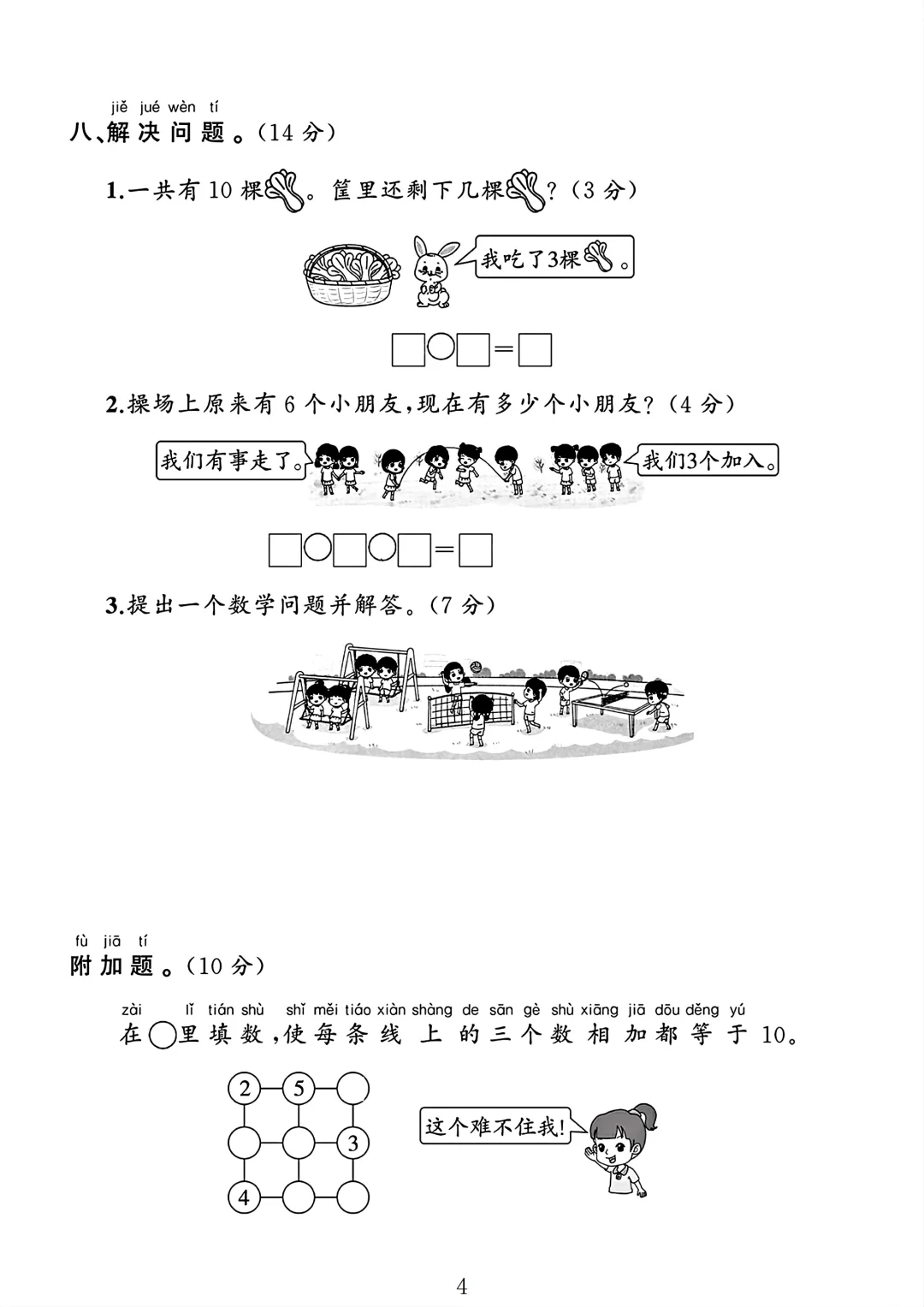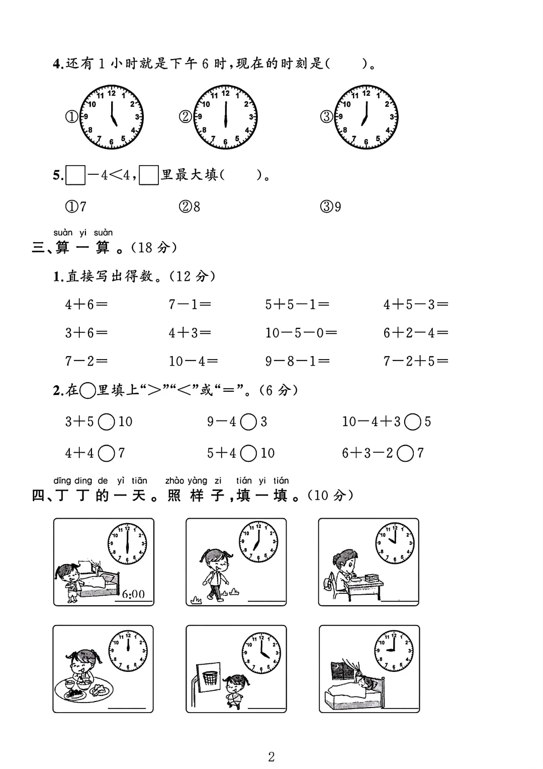 北师大版数学 一年级上册数学 月考 第二次月考 试卷 电子版可打印
