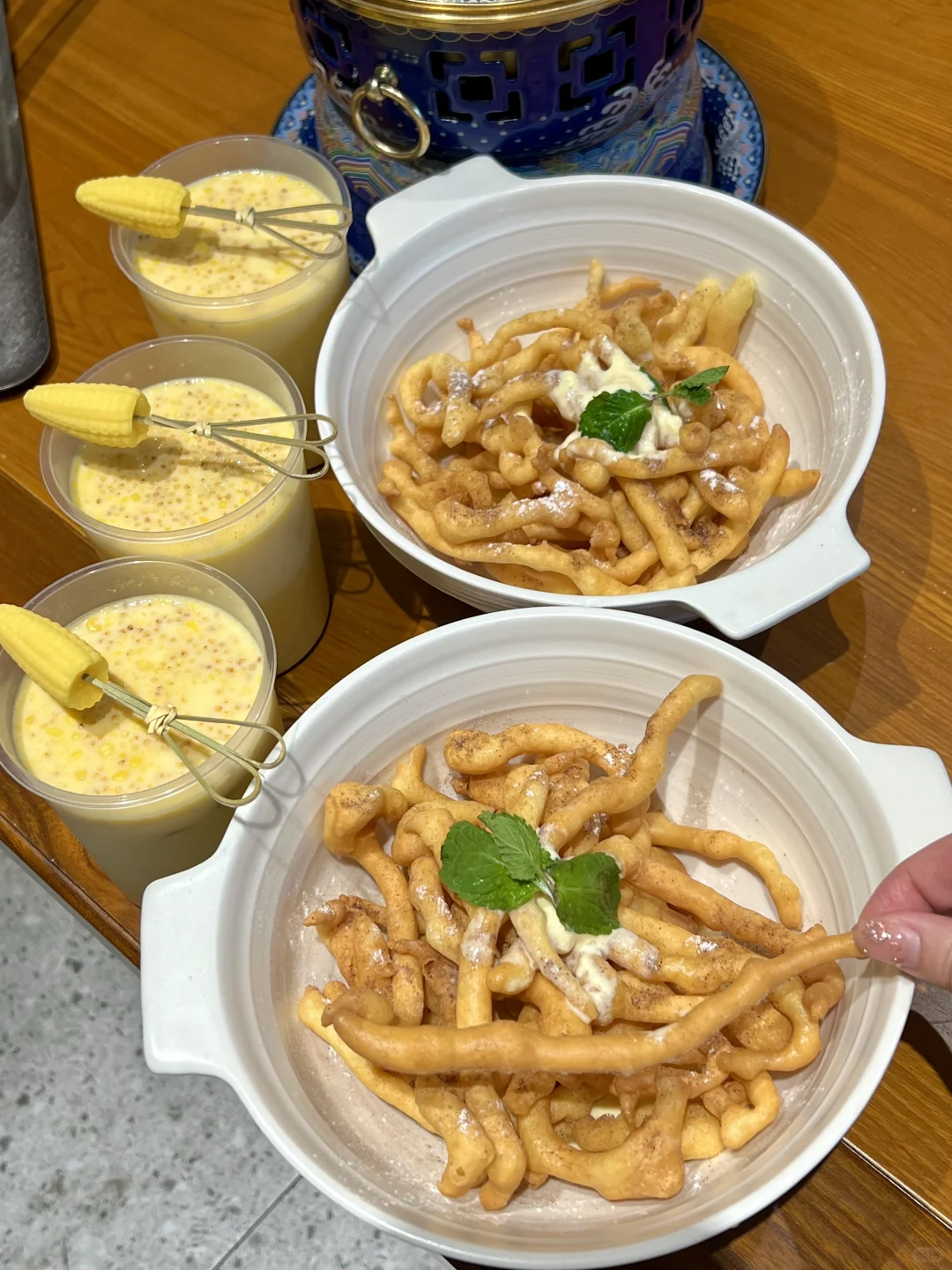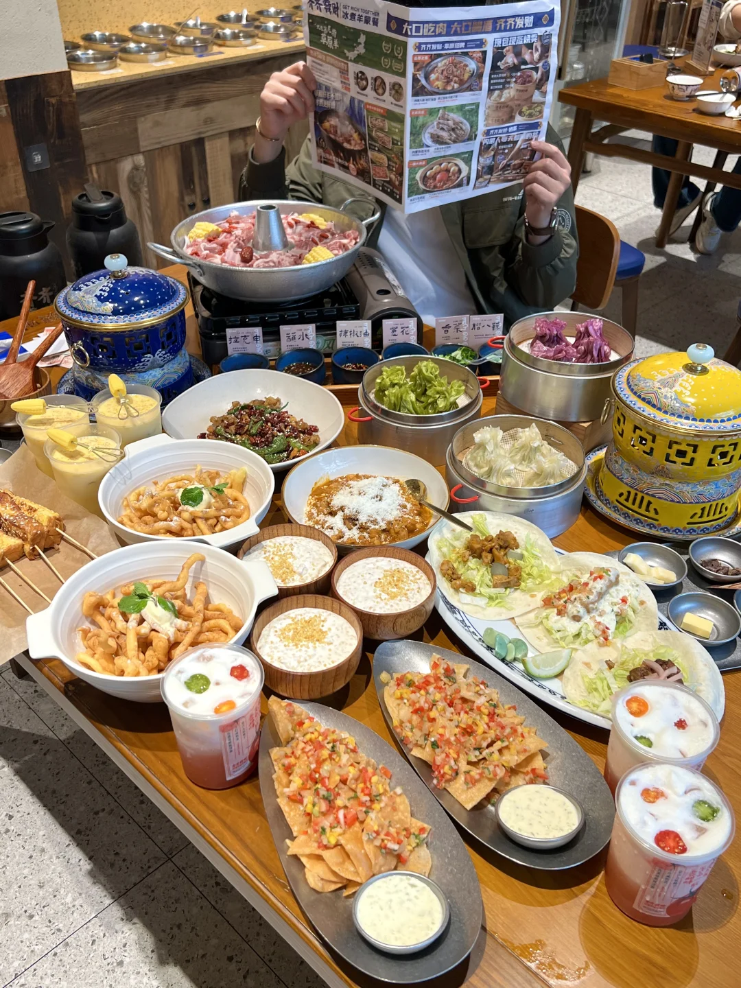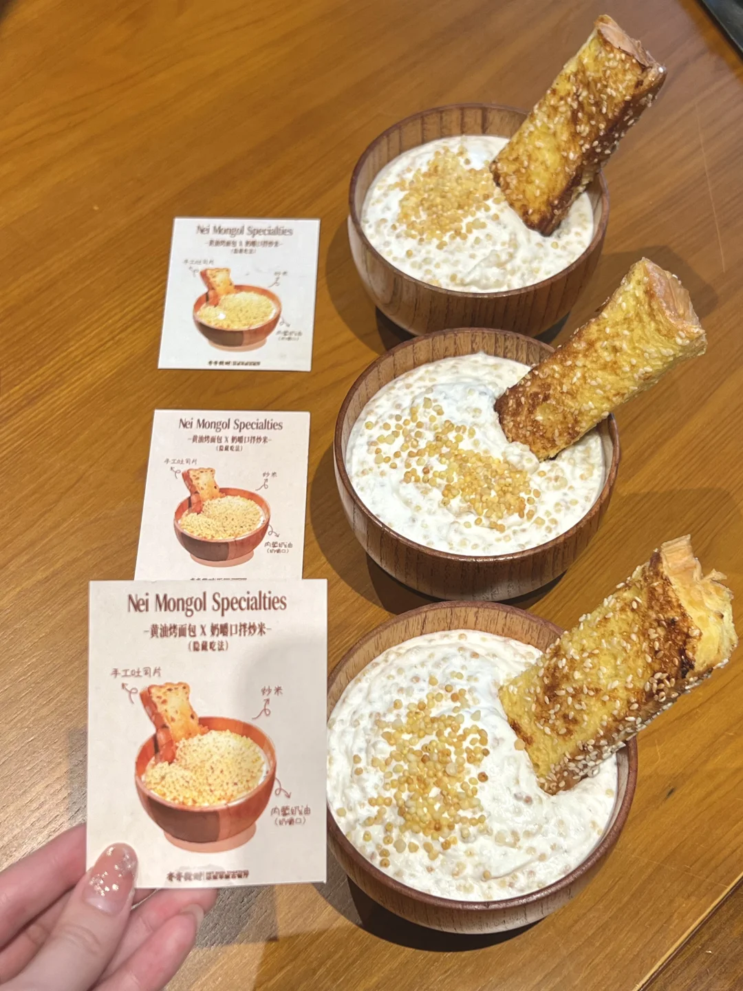 该怎么形容这一口奶嚼口炒米有多好吃😭搭配黄油烤吐司,蘸上满满的炒米!!大口大口的吃奶呼呼的真的好吃。。。 他们家还有好多内蒙特色小吃、甜品,都不错!我们点了冰煮羊肉火锅,好适合冬天吃,和朋友来这里聚会好chill!!