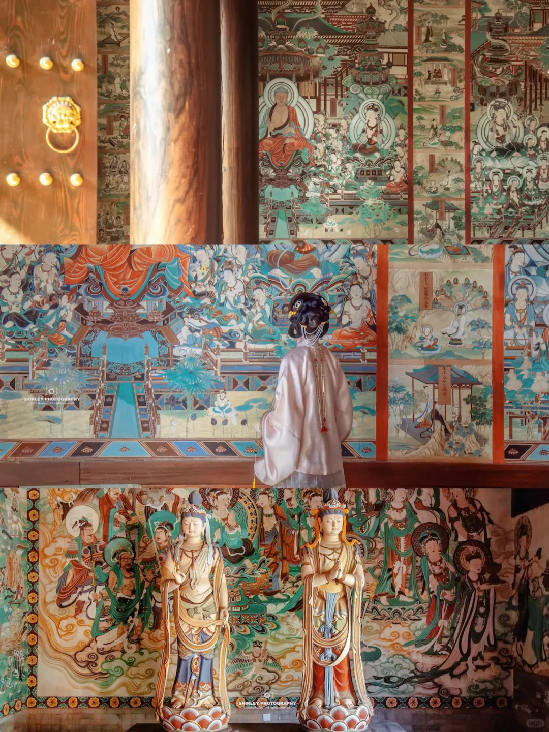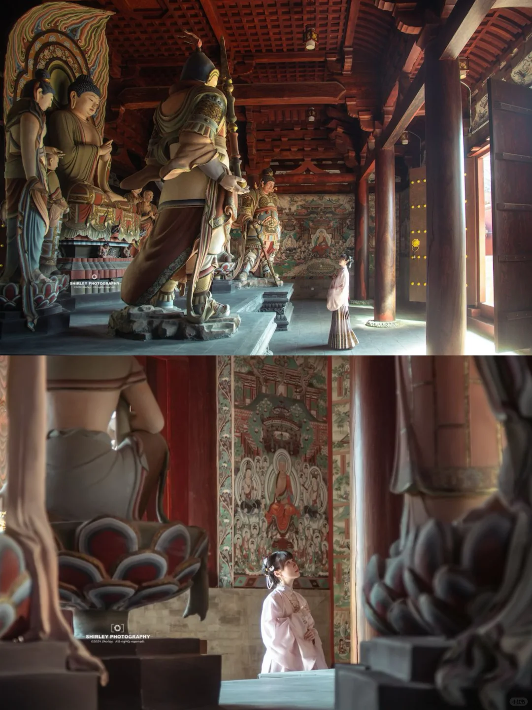 4️⃣普光寺:市保,太原最古老的寺庙,圆通殿为明代遗构,后殿的仿唐建筑与彩塑壁画仿佛再现盛唐,唐风与明风结合得恰到好处