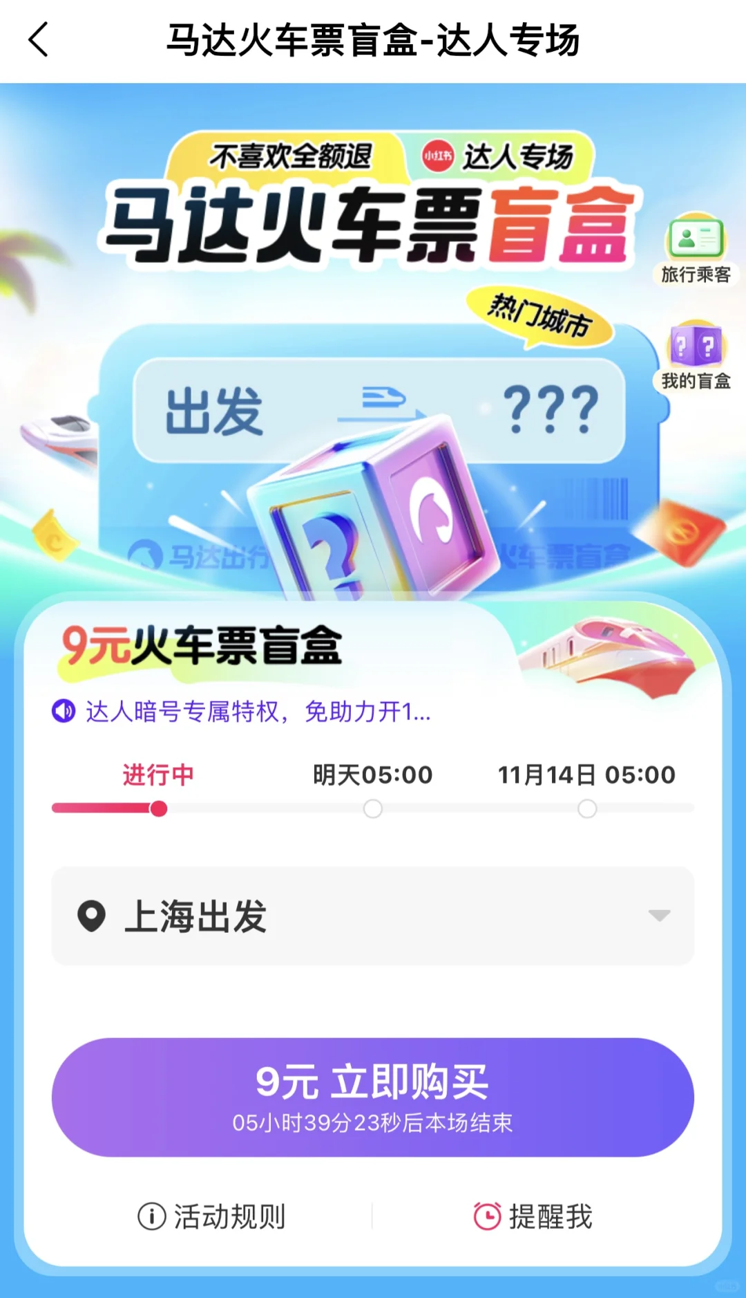 阔别3年,感谢马达出行9r火车票盲盒让我再次来到太原,走了这条收藏许久的路线。原来是大头的交通一下子省了好多~宝子们可以去get一下同款,规则给你们总结好了: