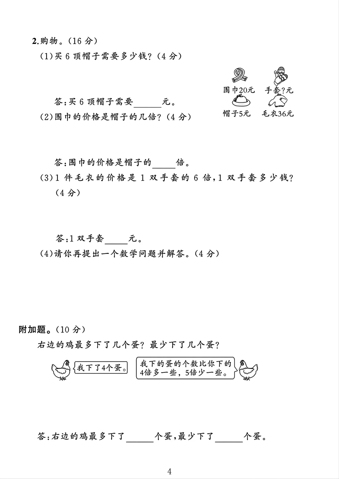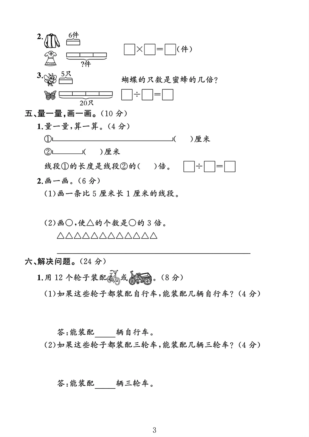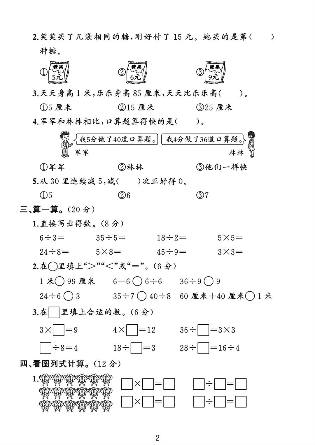 北师大版数学 二年级上册数学 月考 第二次月考 单元测试 电子版可打印