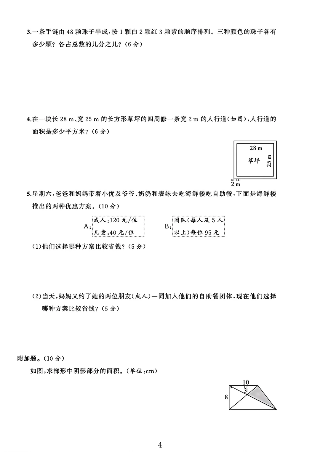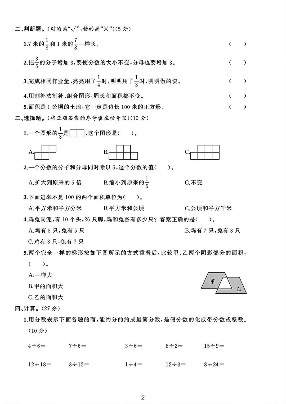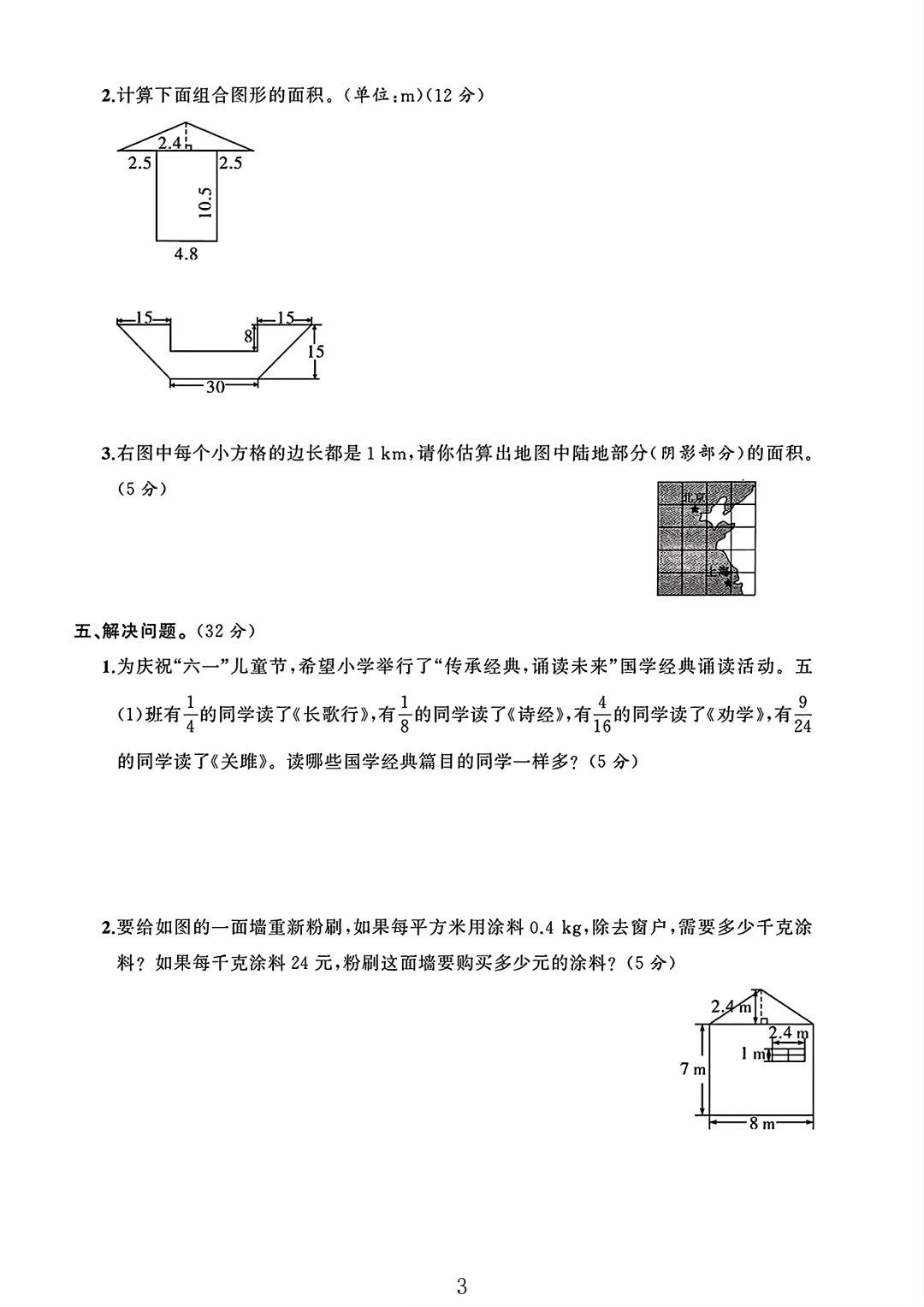 北师大版数学 五年级上册数学 月考 单元测试 电子版可打印