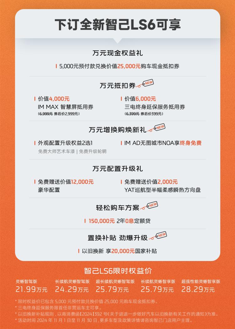 这次的大促活动,有“钜惠购车大礼包”、“车型专属万元券”、“高额现金抵扣”等权益,都是实实在在地在送福利。像全新智己LS6的车主,可以用“车型专属万元券”来购买刚刚上新的“IM MAX智慧屏”,把后排秒变超city的潮玩空间,工作、娱乐两不误。值得一提的是,智己LS6和智己L6有“1111”限时四重购车狂欢礼,现在买到就是赚到。 说到智己LS6和智己L6,它们都是智己汽车的爆款车,现在福利的BUFF叠满,定会迎来销量新高。智己汽车在10月份的销量已经达到10001辆,市场表现可圈可点,大家觉得它在11月会卖多少辆呢?