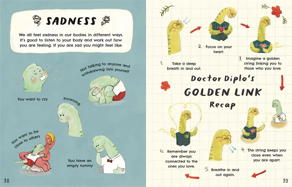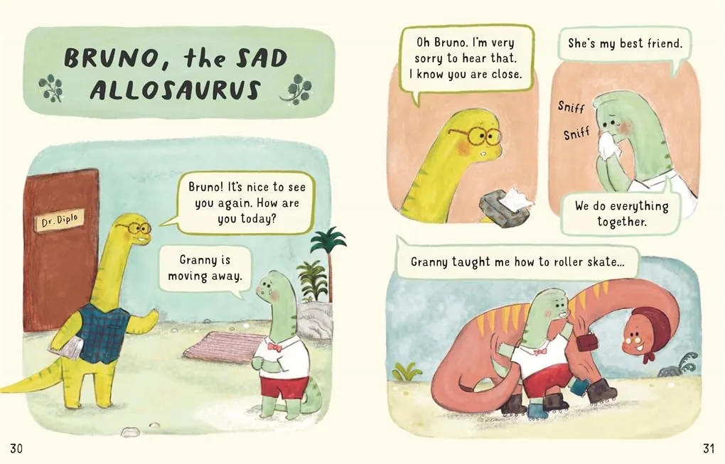Diplo迪普洛医生是侏罗纪王国最受欢迎的治疗师,他将介绍10位侏罗纪朋友,有愤怒的恐龙Steggie史蒂吉、害怕的恐龙Rex 雷克斯、悲伤的恐龙Bruno布鲁诺、快乐恐龙Minka敏卡、孤独的恐龙Poppy波比、害羞的恐龙Percy 波西、兴奋的恐龙Terrie特里、不知所措的恐龙Trev特雷夫、觉得无聊的恐龙Iggy伊吉,和满足的恐龙Nino 尼诺。