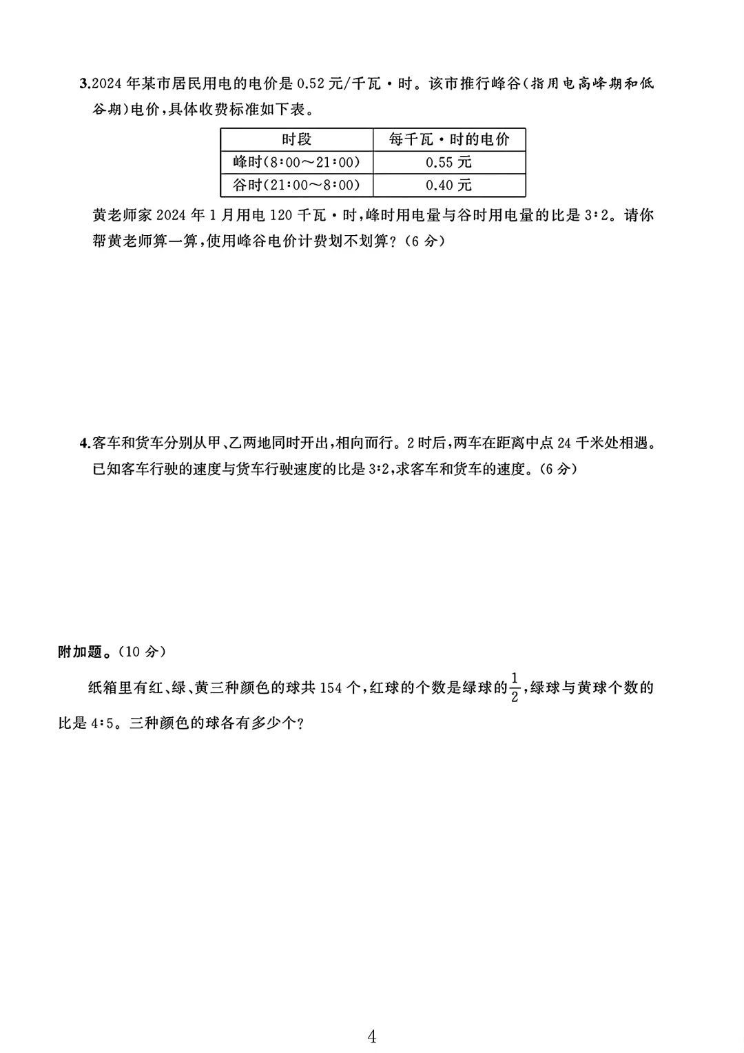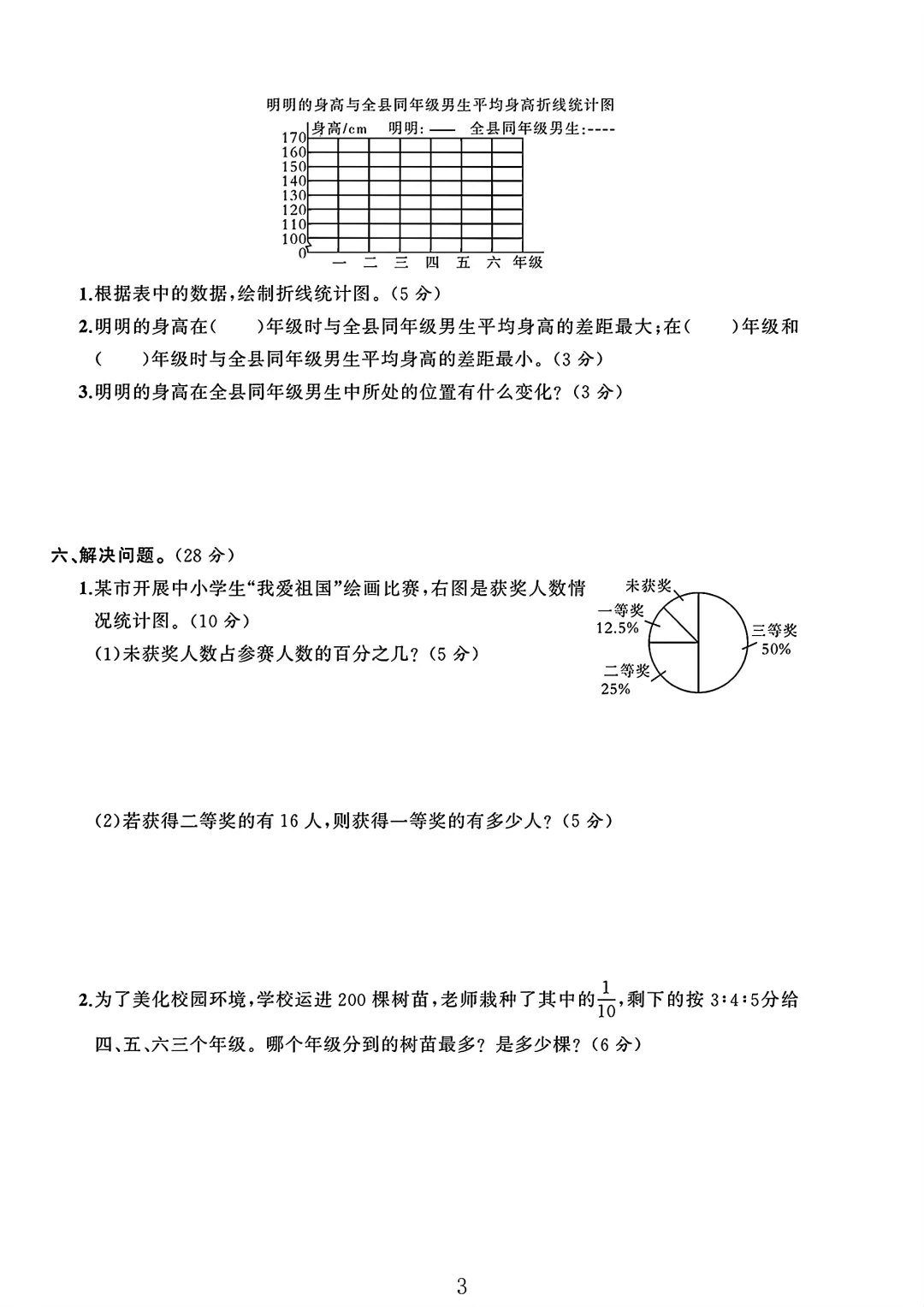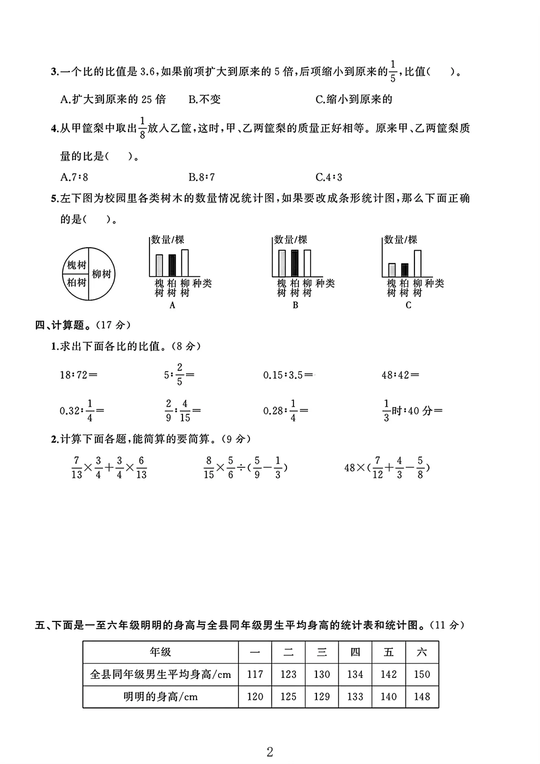 北师大版数学 六年级上册数学 月考 第二次月考 电子版可打印