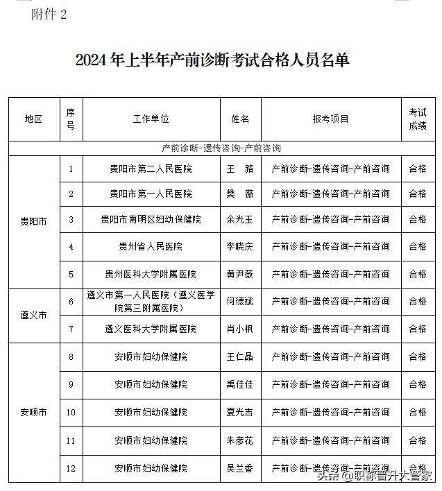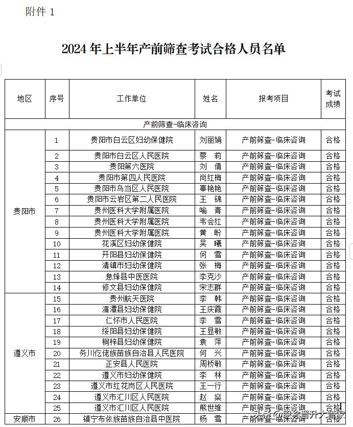 贵州省2024年上半年产前筛查及产前诊断新进人员考核合格名单已发布!快看看有您的