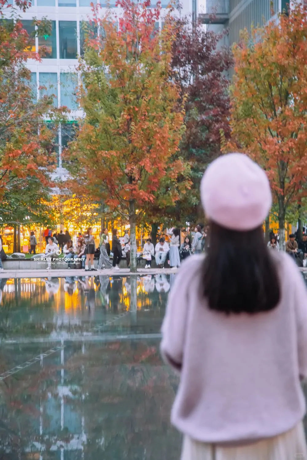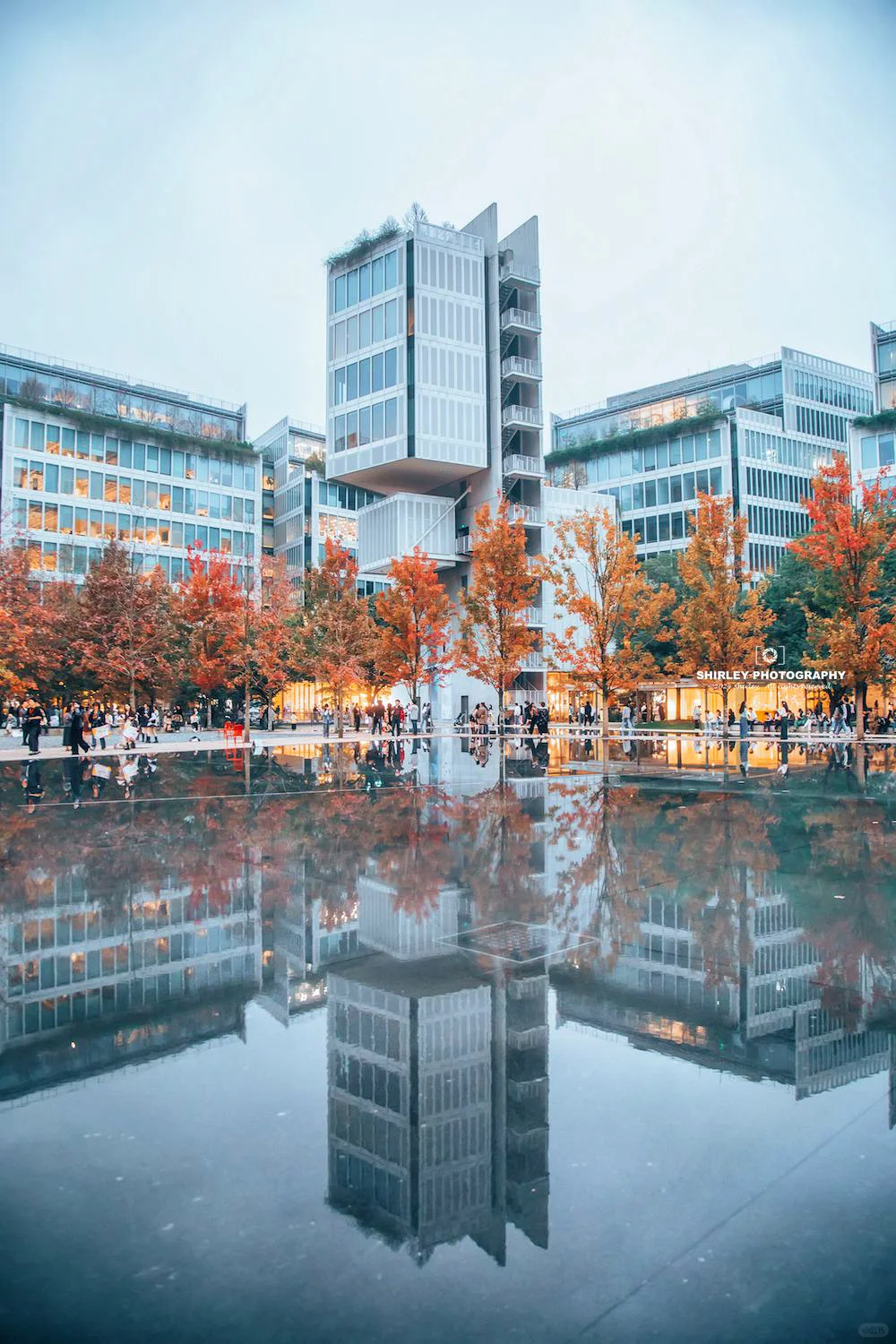 🍂水镜广场,无论是人物还是建筑景观,有水池做倒影画面都加分不少
