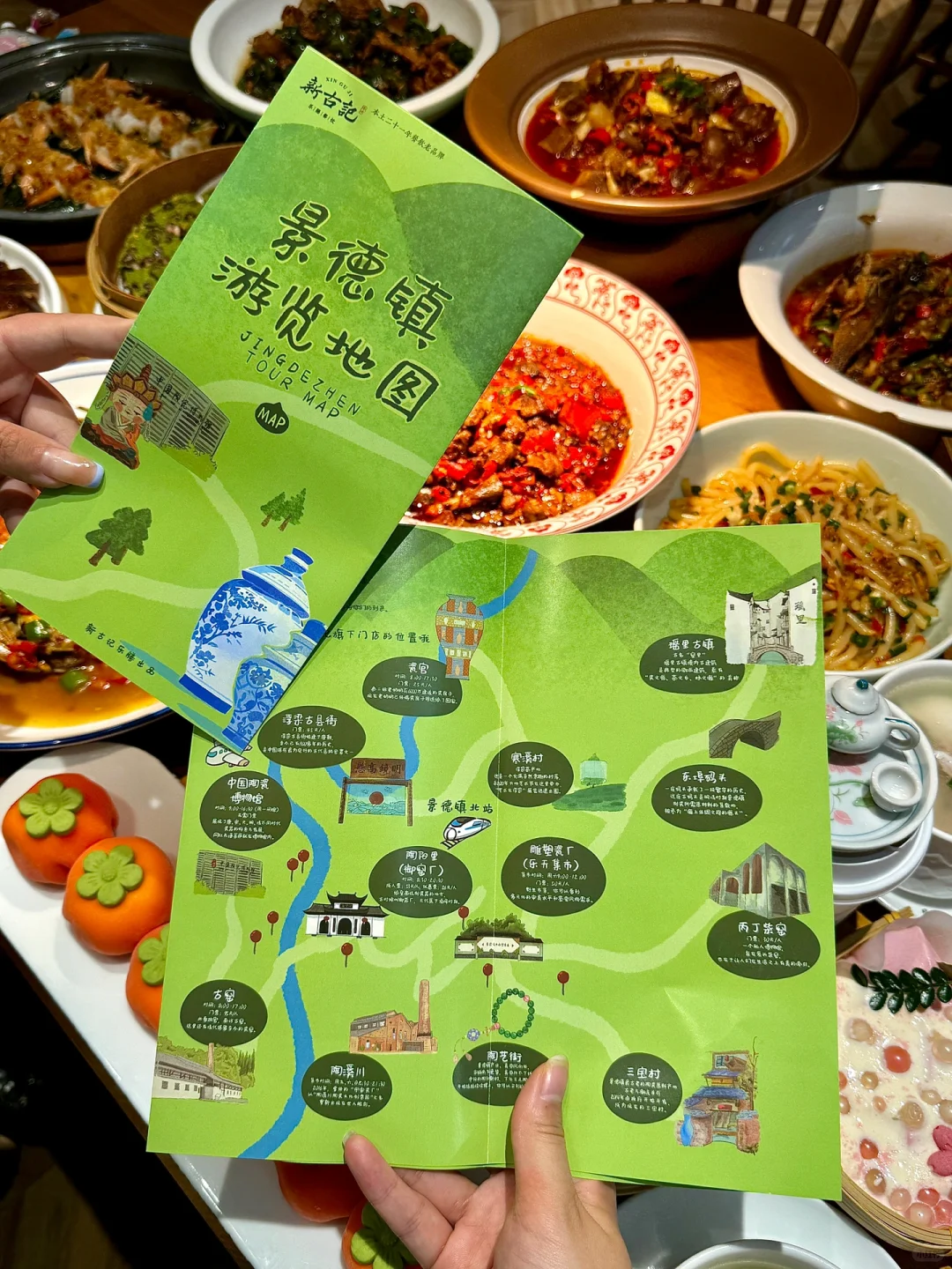 感谢景德镇本地人的推荐!!!! 好吃到坐高铁回家还要再打包一份的程度!!!! 在高铁上一打开就被围观了。。都问我是哪家的! 莲花血鸭:江西十大名菜!招牌bi点!真的便宜大碗又好吃!鸭肉切得很小块,所以很入味! 老景德酱鸭:jujuju好吃!麻鸭做的!肉质一点都不柴! 还有香辣小黄鱼🔥蒜香葱烧虾🦐家烧毛蟹🦀红焖羊肉都很好吃!糯叽叽的柿柿如意包和樱花奶豆腐🌸松小瓷器的奶茶也必须安排上!!! 打卡还能🉐陶瓷手链和景德镇攻略地图!建议人手一份!!各个景点啥的都写的很齐全!好贴心!