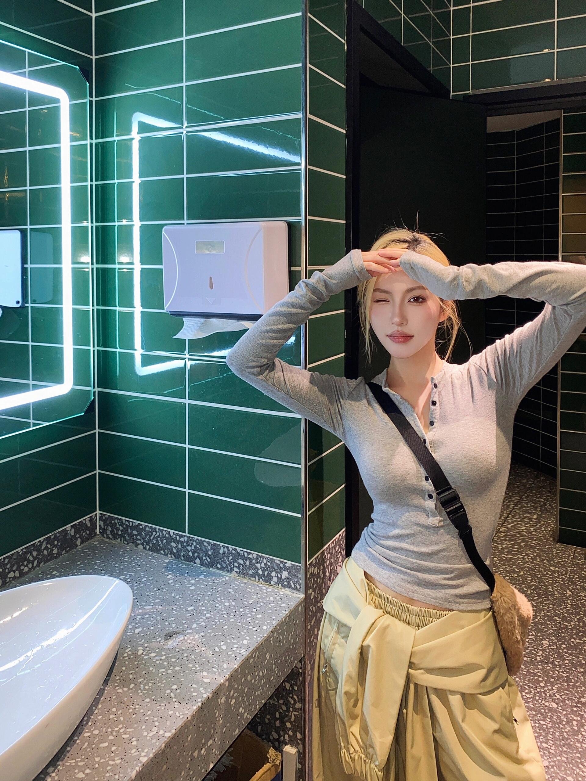 高级感辣妹灰色正肩t恤上衣显瘦内搭打底衫