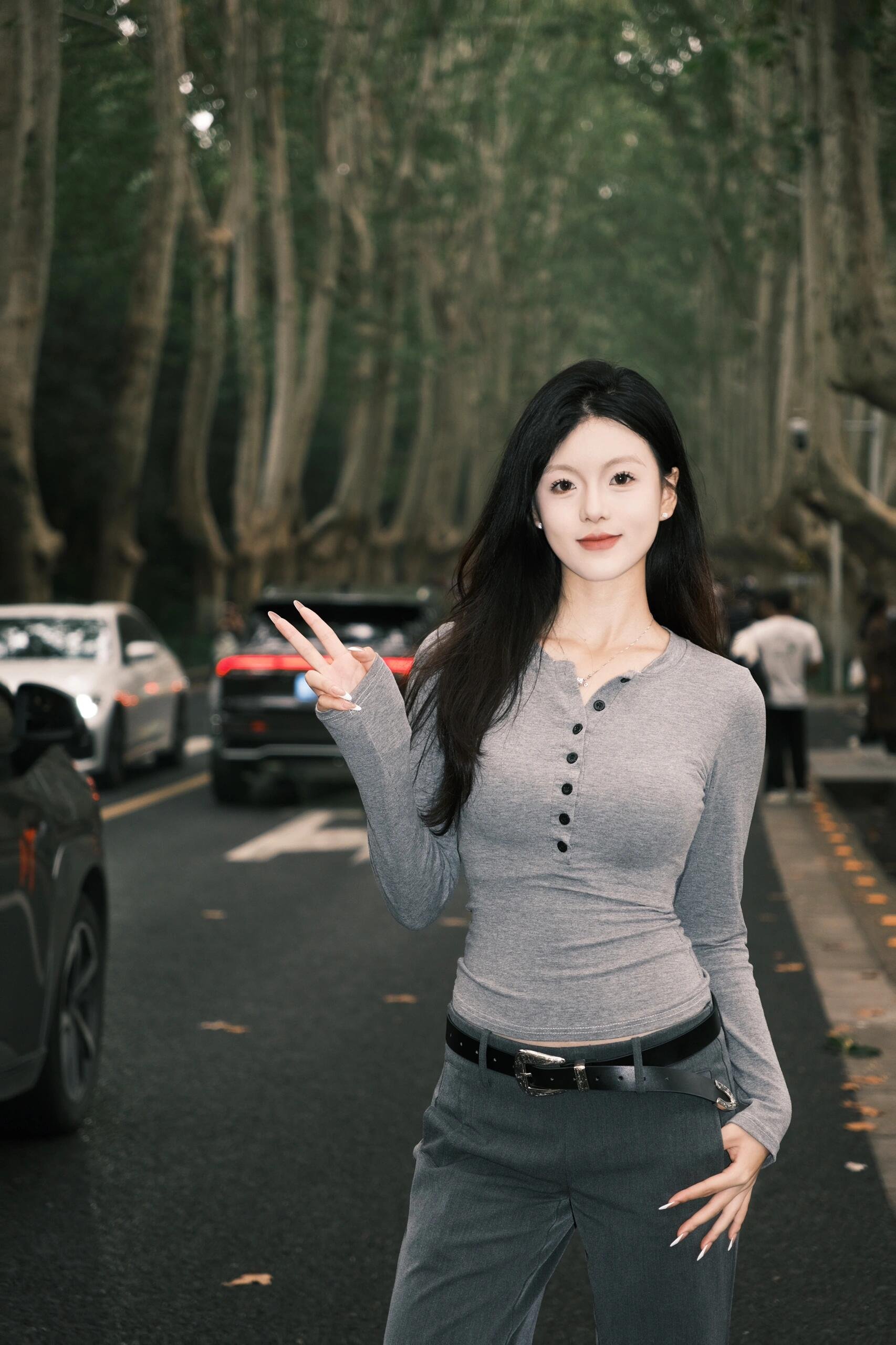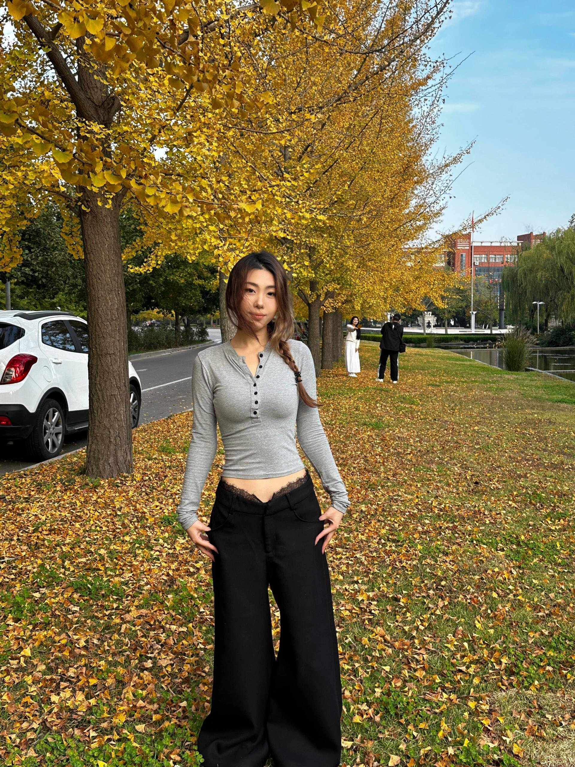2024秋冬季新款高级感辣妹灰色正肩t恤上衣女修身显瘦内搭打底衫