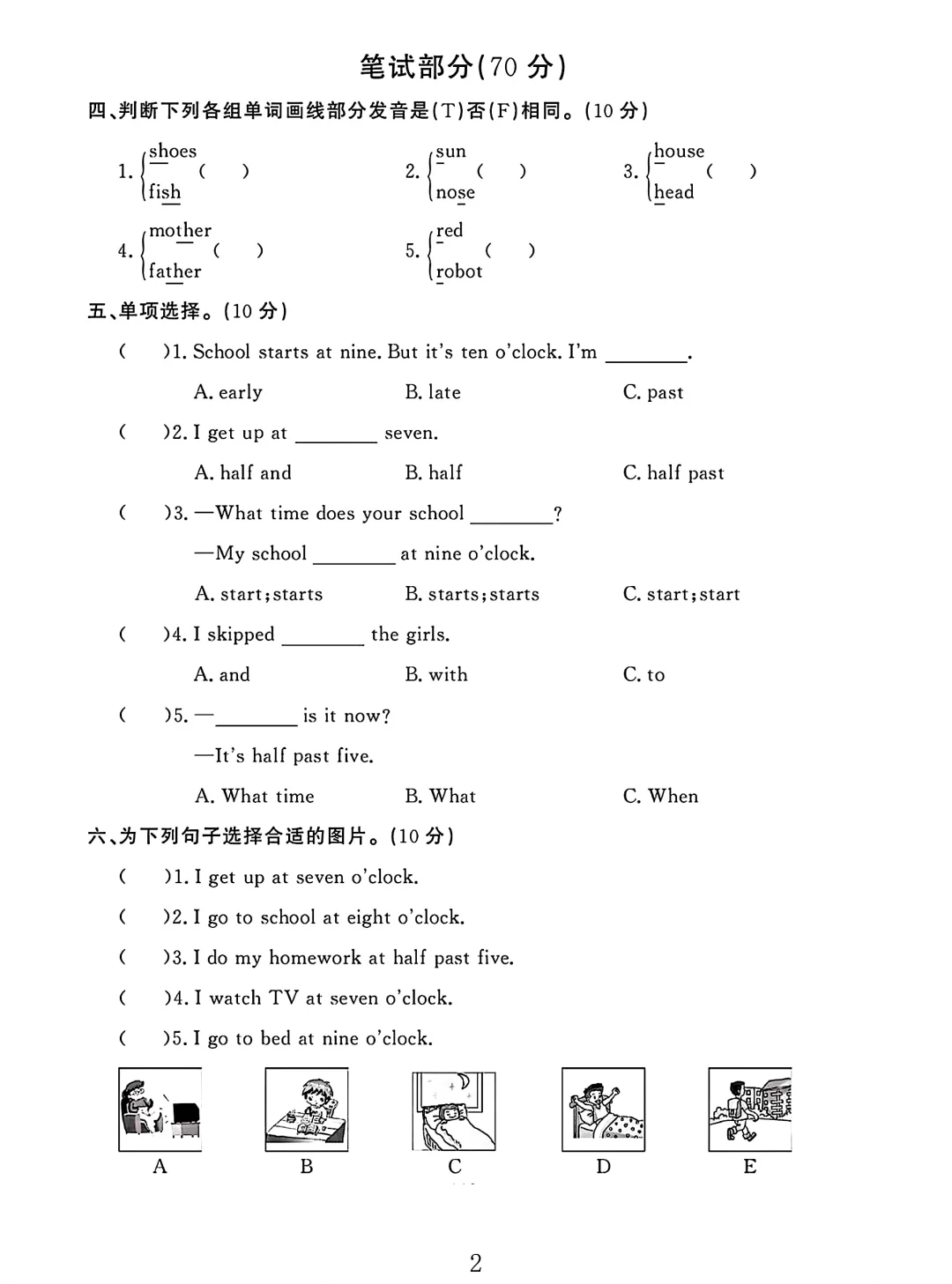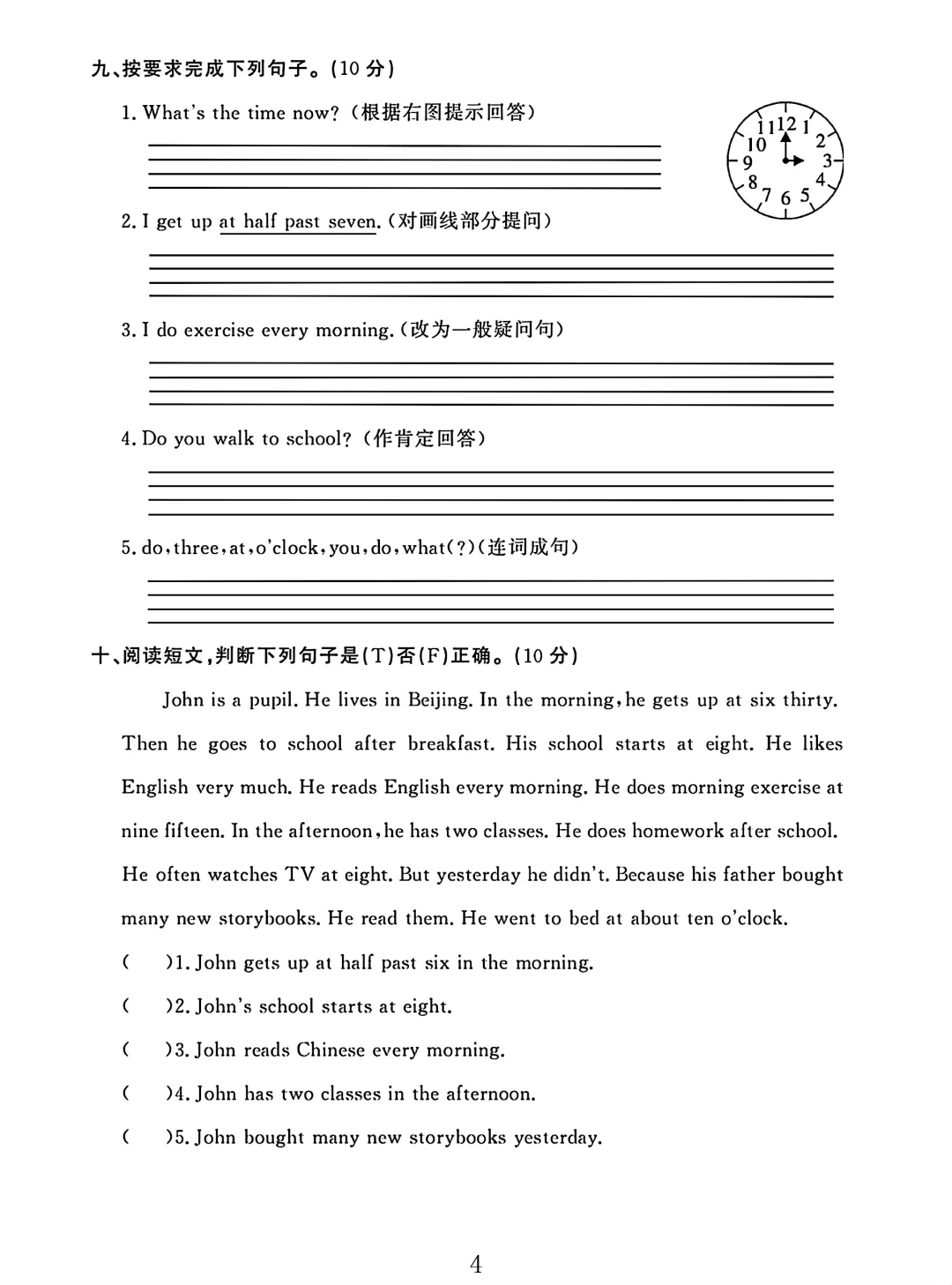 外研版 五年级上册英语 第八单元 试卷 单元测试 电子版可打印