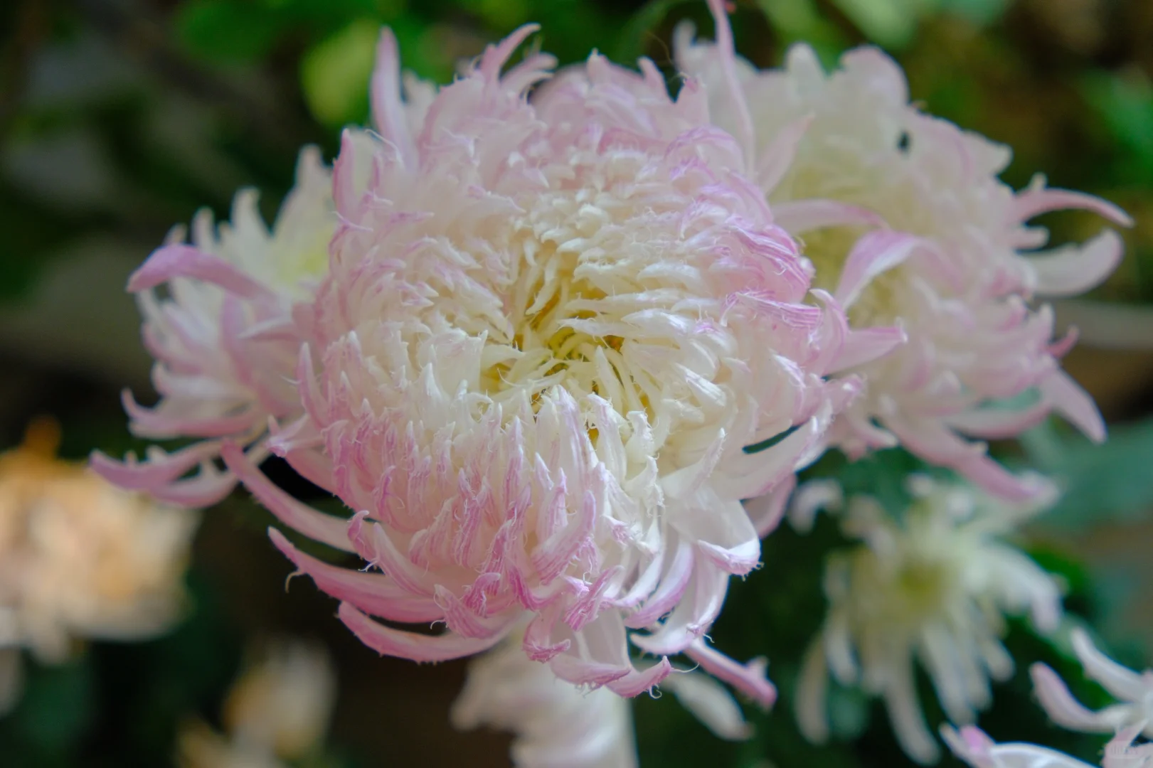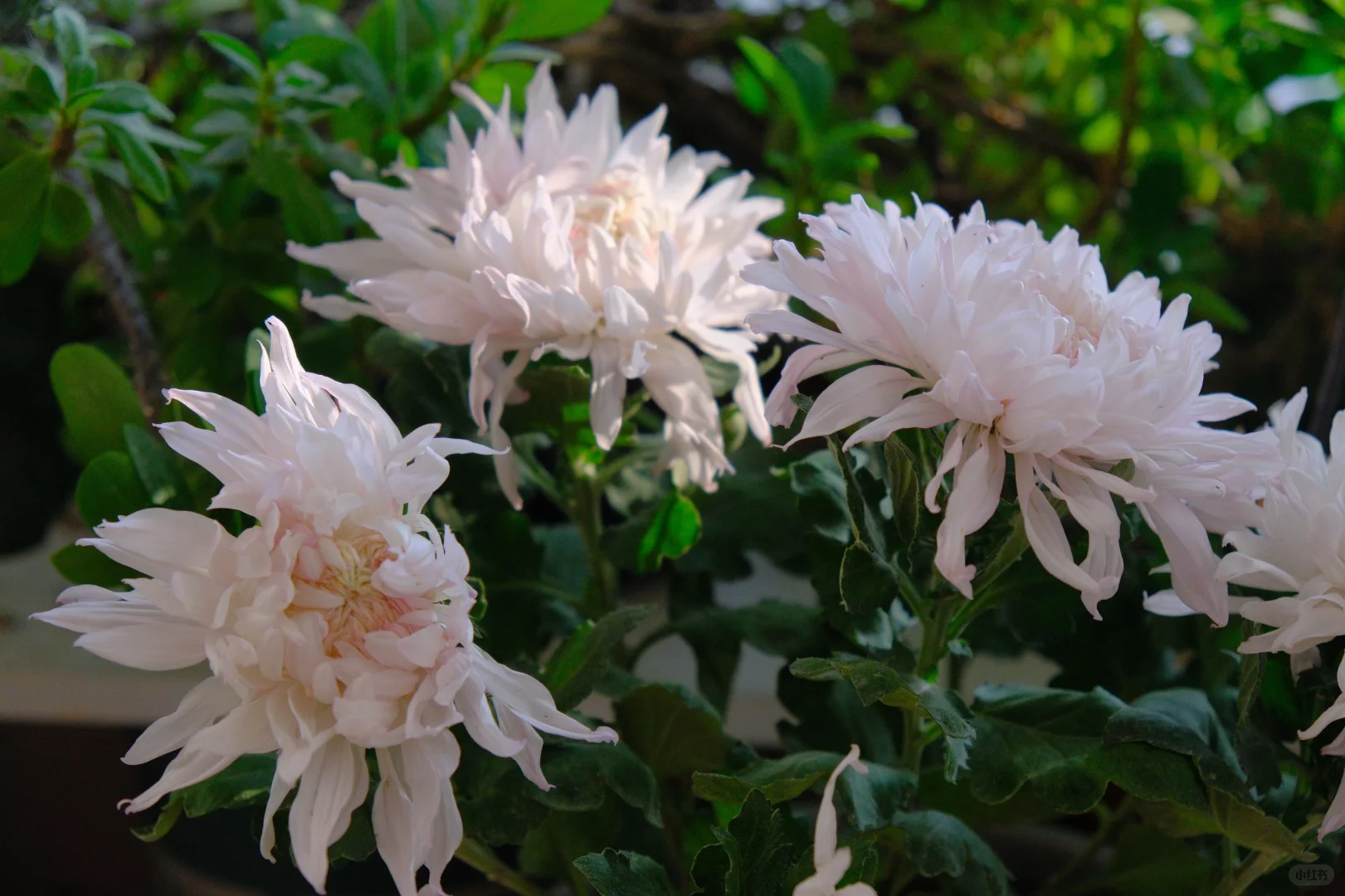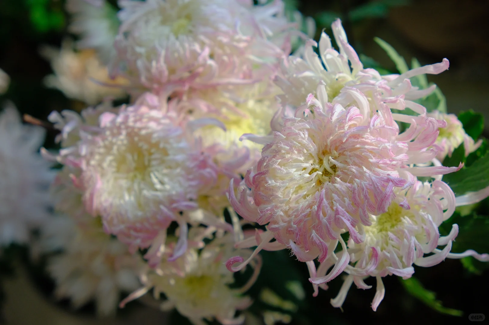 血脉觉醒,今年冬天第一次入了国菊坑。 鹅毛粉黛真的很像披着鹅毛大氅回眸一笑的仙女,仙露蟠桃花型神似牡丹。 还有一朵不知名的黄丝菊,像烟花绽放~ 真美啊……