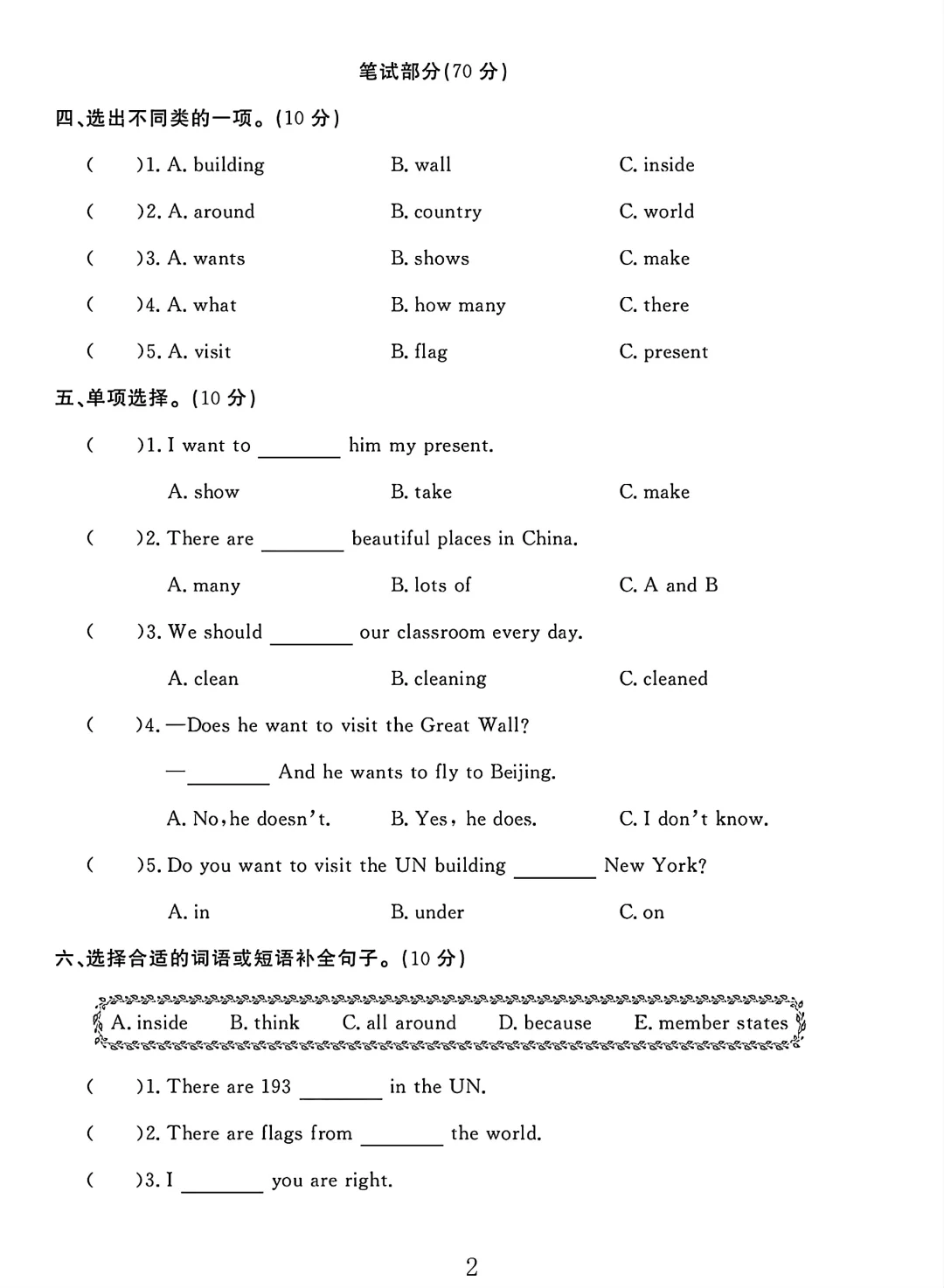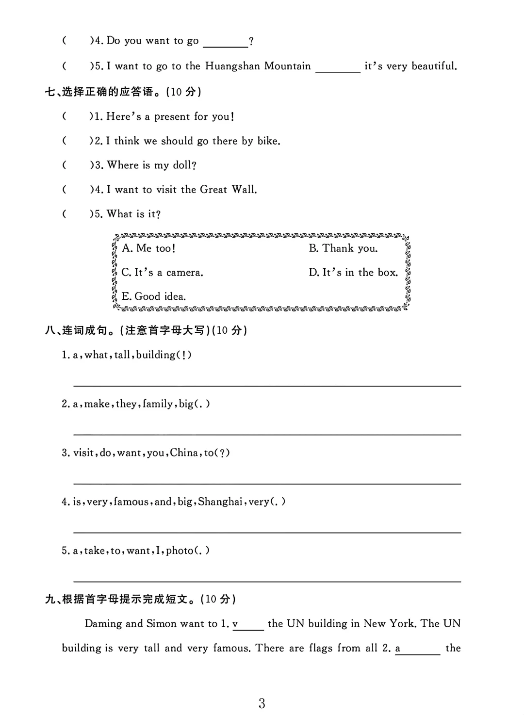 外研版 六年级上册英语 第九单元 单元测试 试卷 电子版可打印