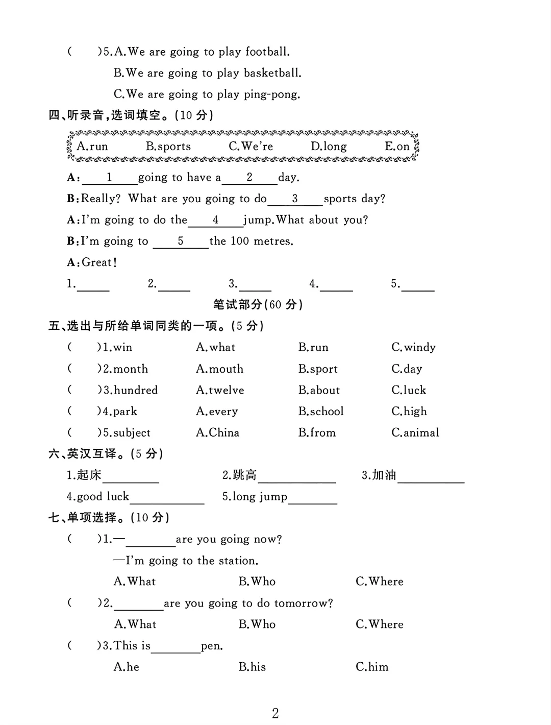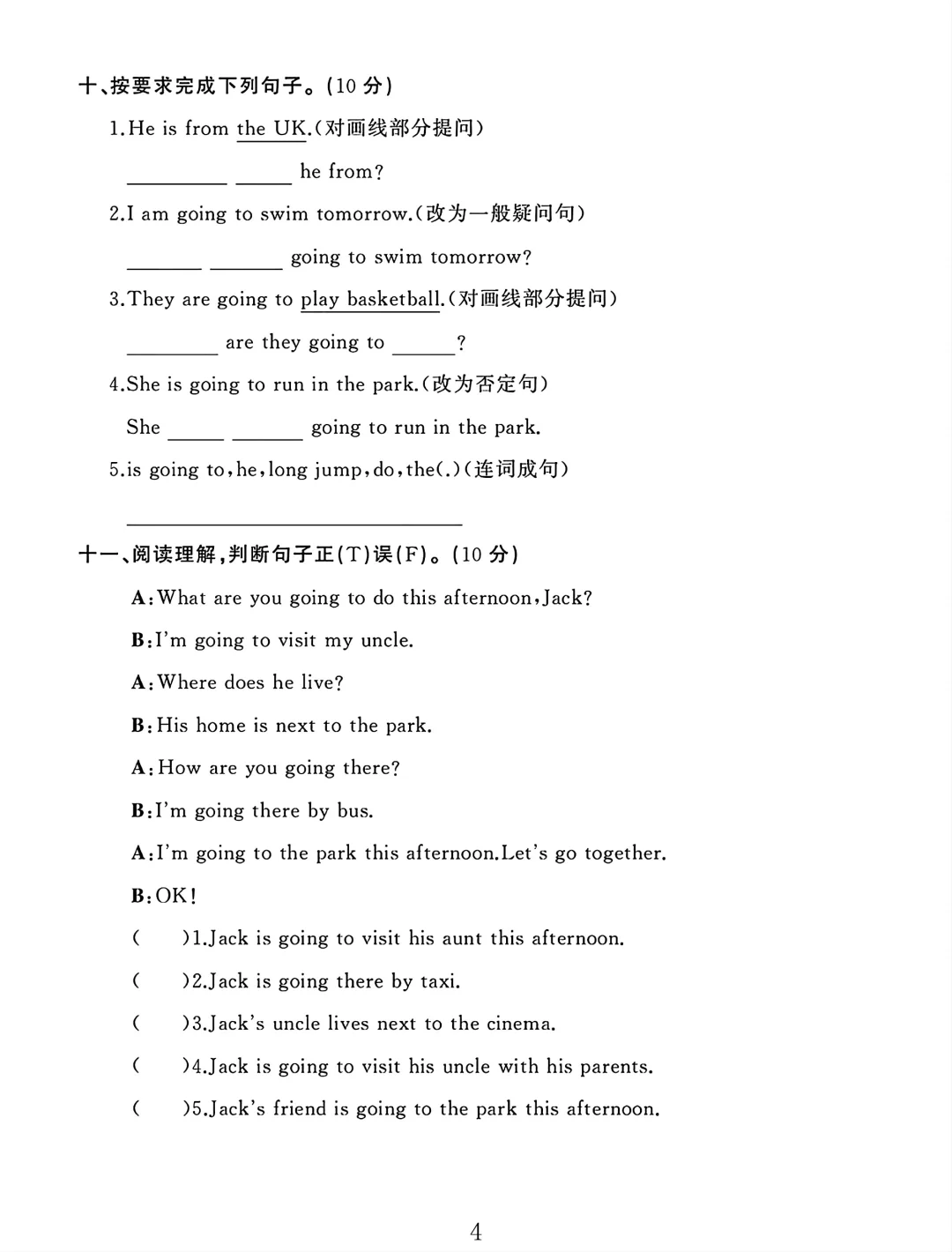 外研版 四年级上册英语 第九单元 试卷 单元测试 电子版可打印